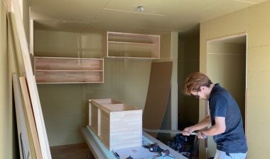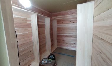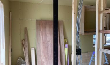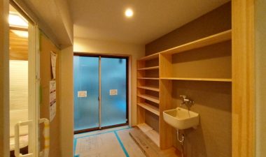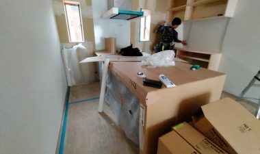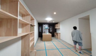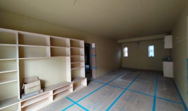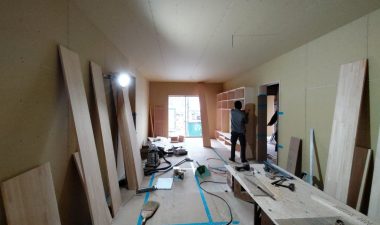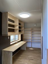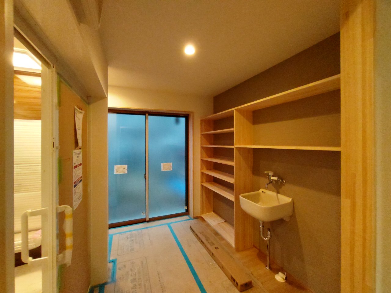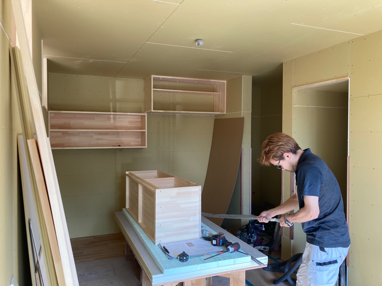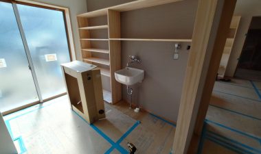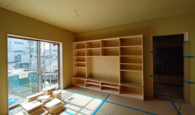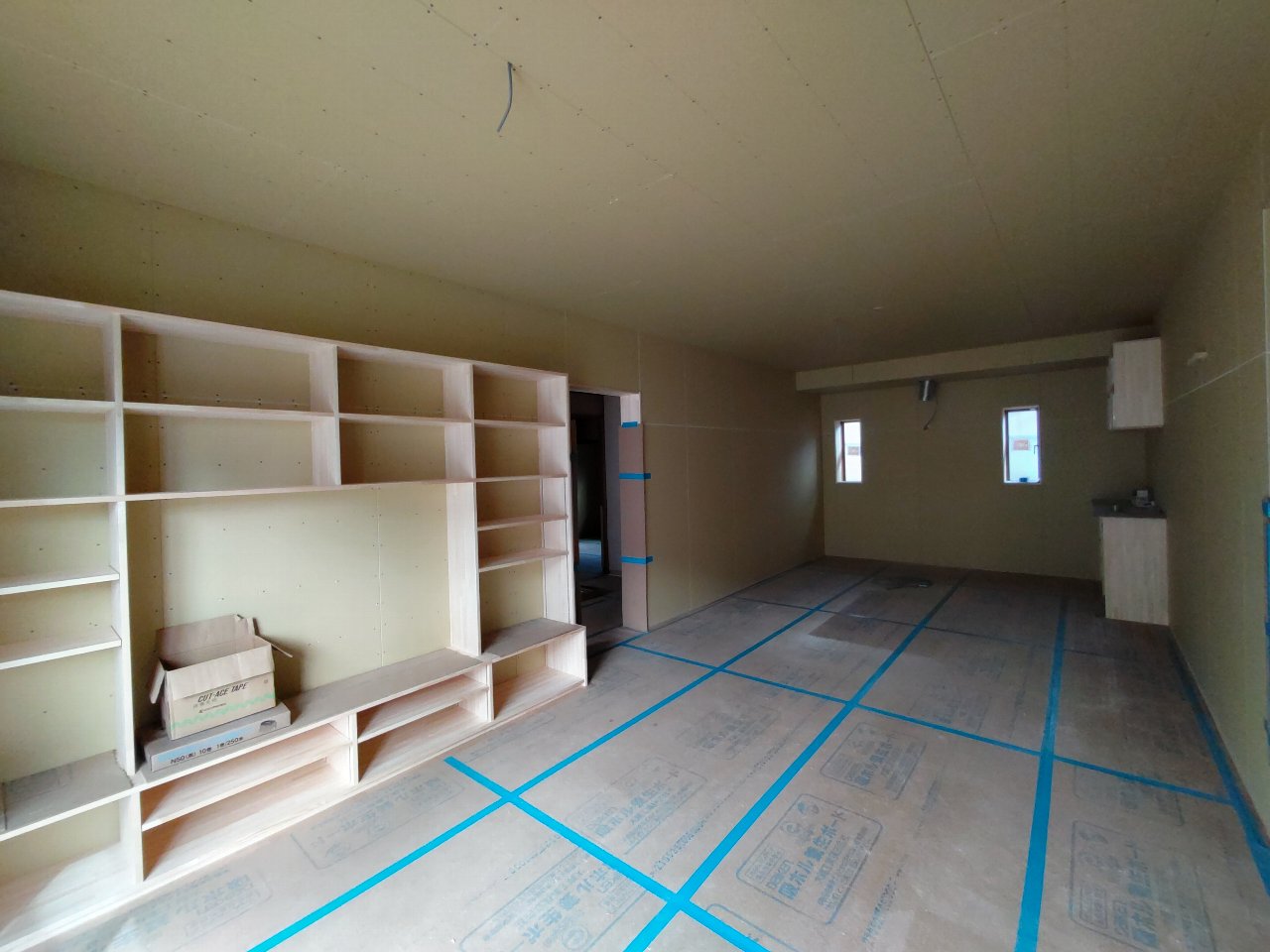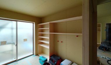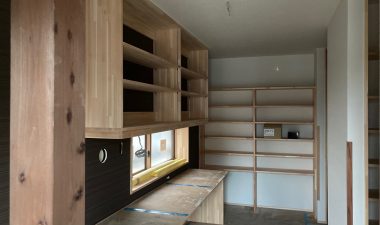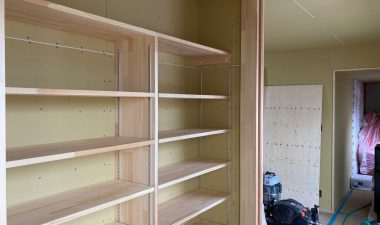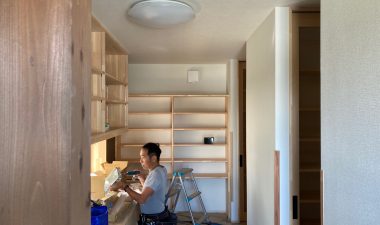 棟梁は各種棚板の組立取付中。だんだんと生活するための内装が整っていきます。