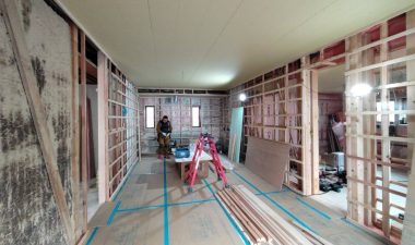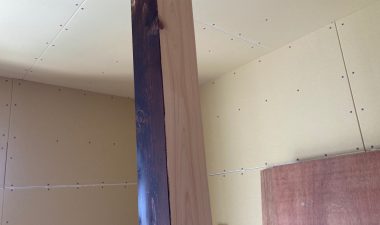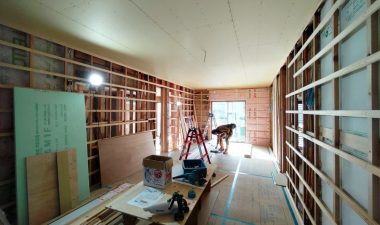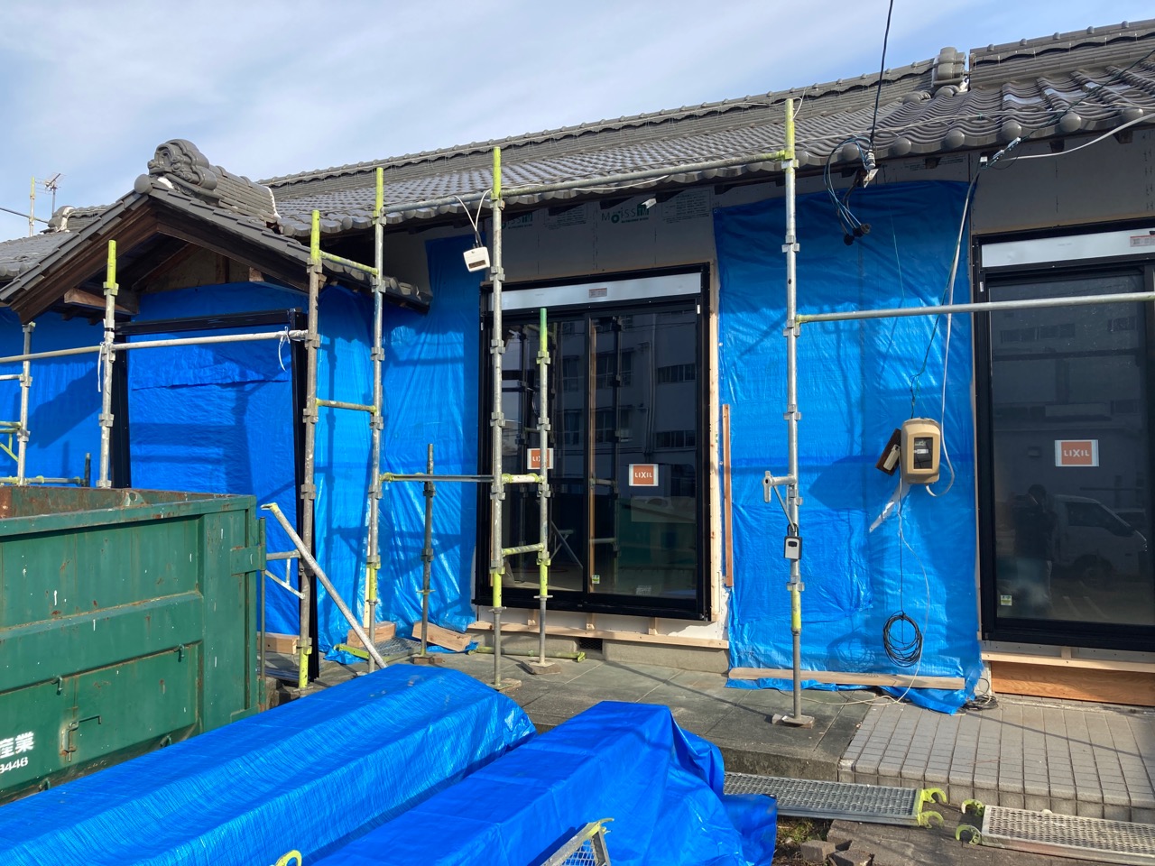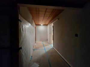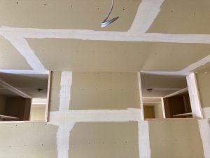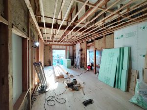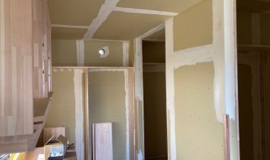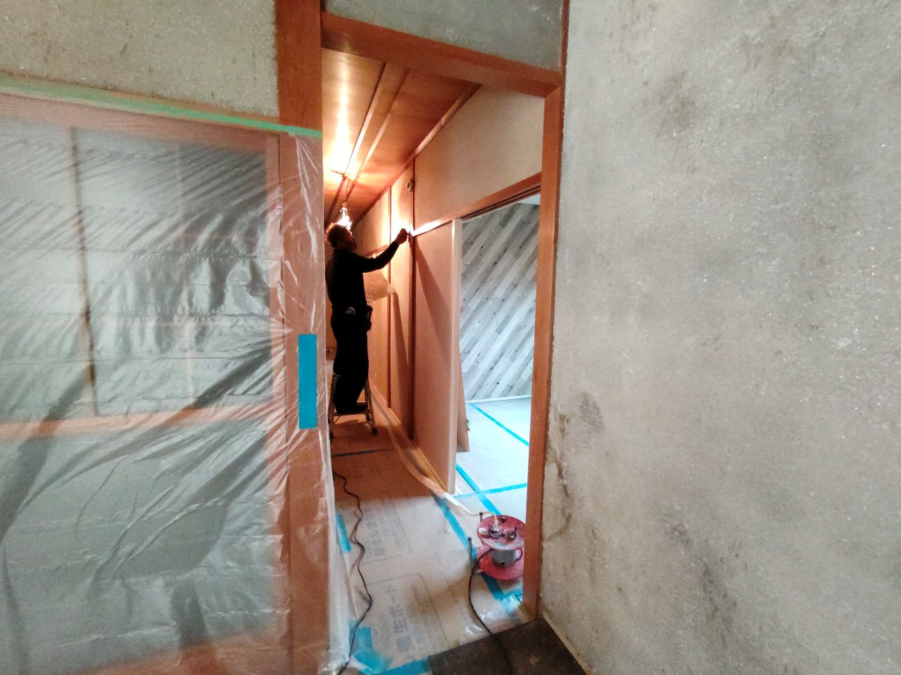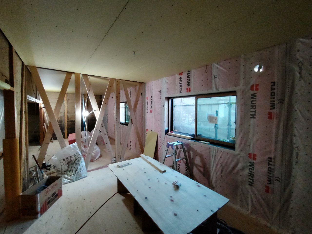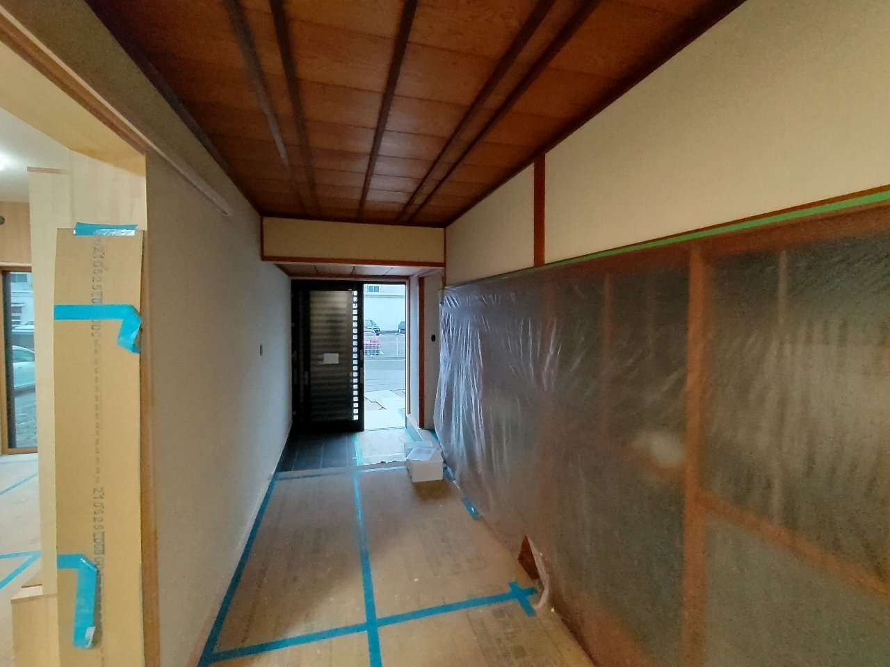 内装下地の上にクロス下地石膏ボードが張られ始めました。この段階まで来ると後の作業は新築工事とだいたい同じとなってきます。やっとこちらの土俵に乗ってきたという感覚です。
