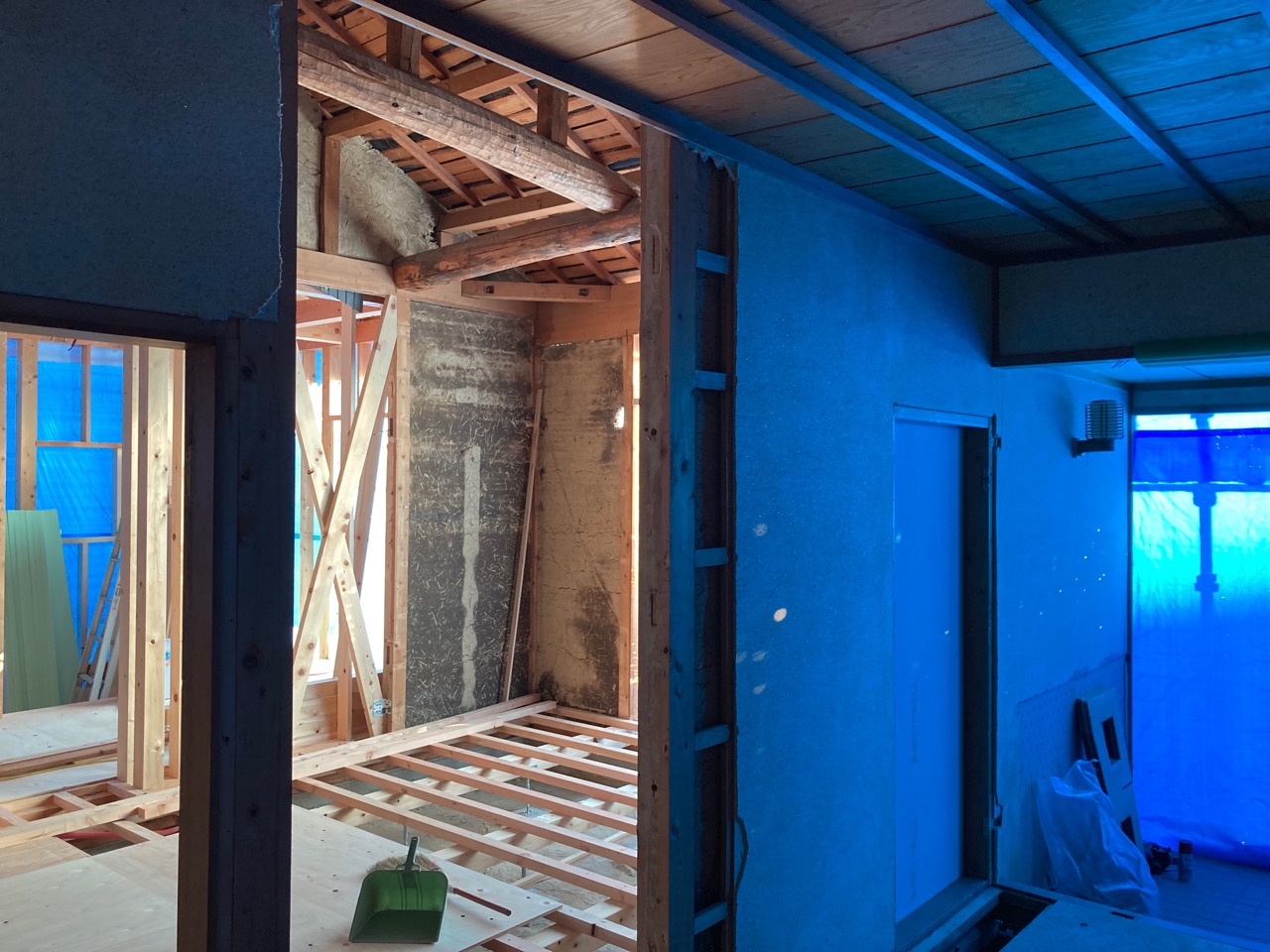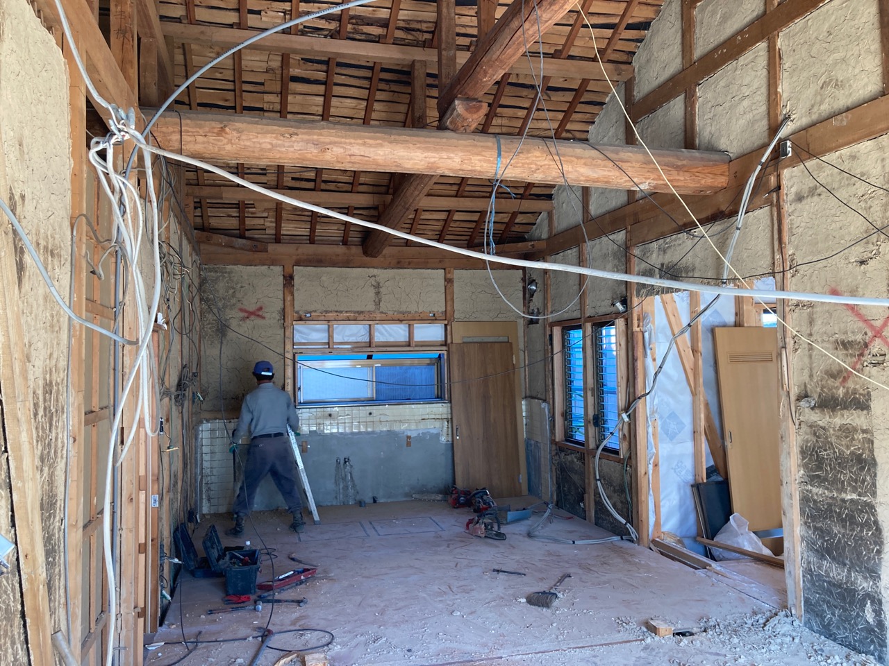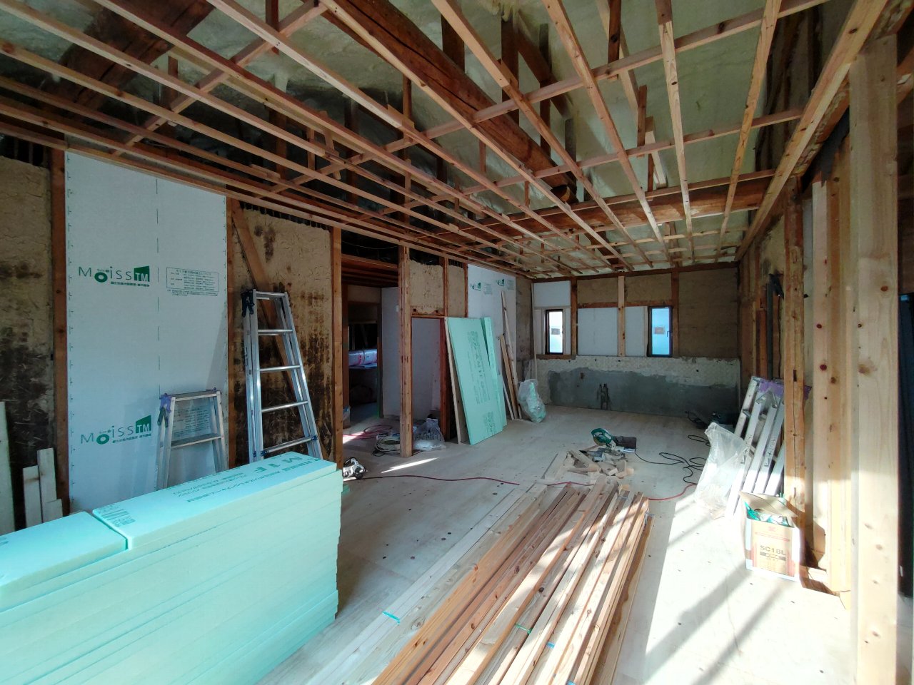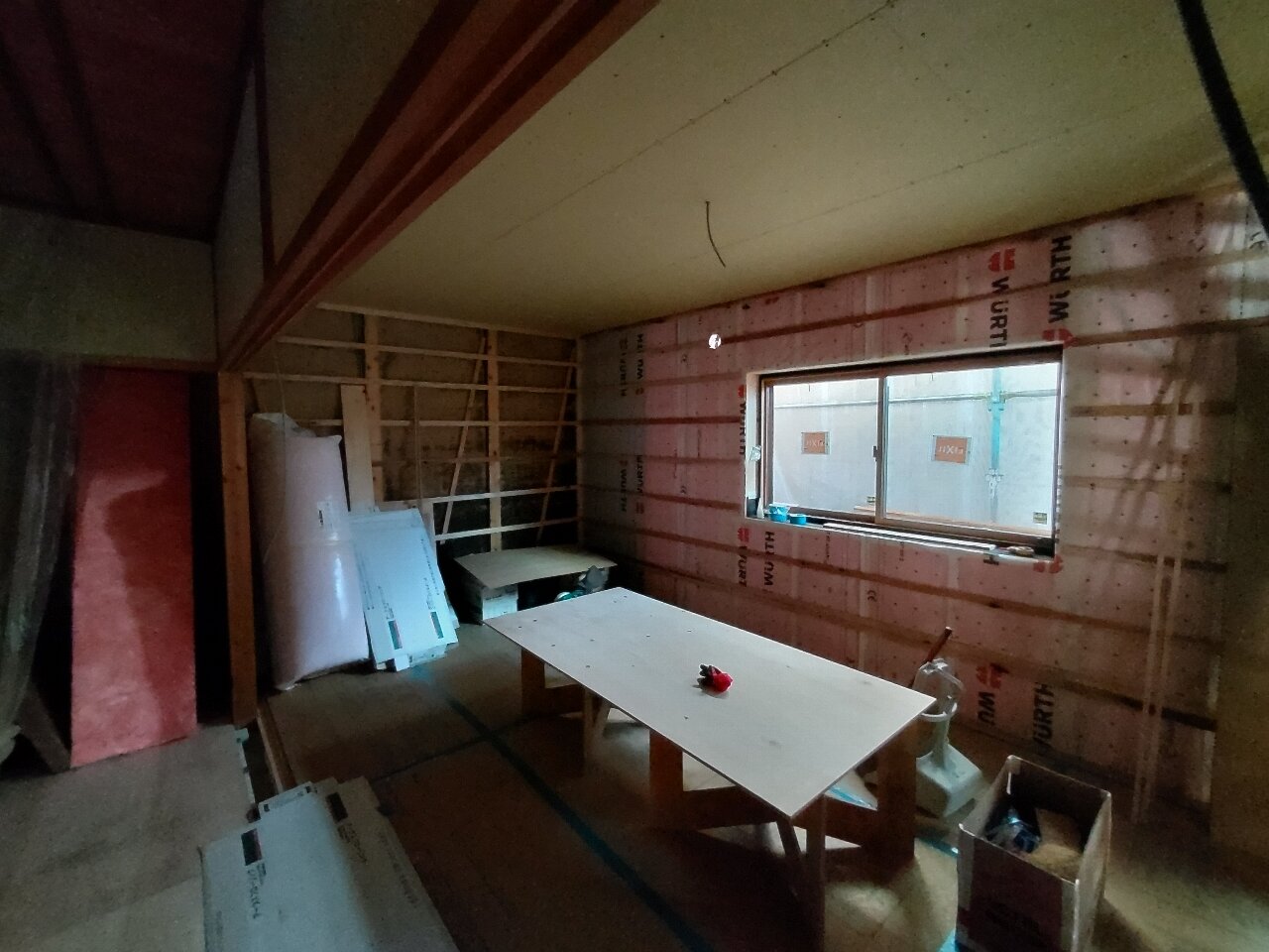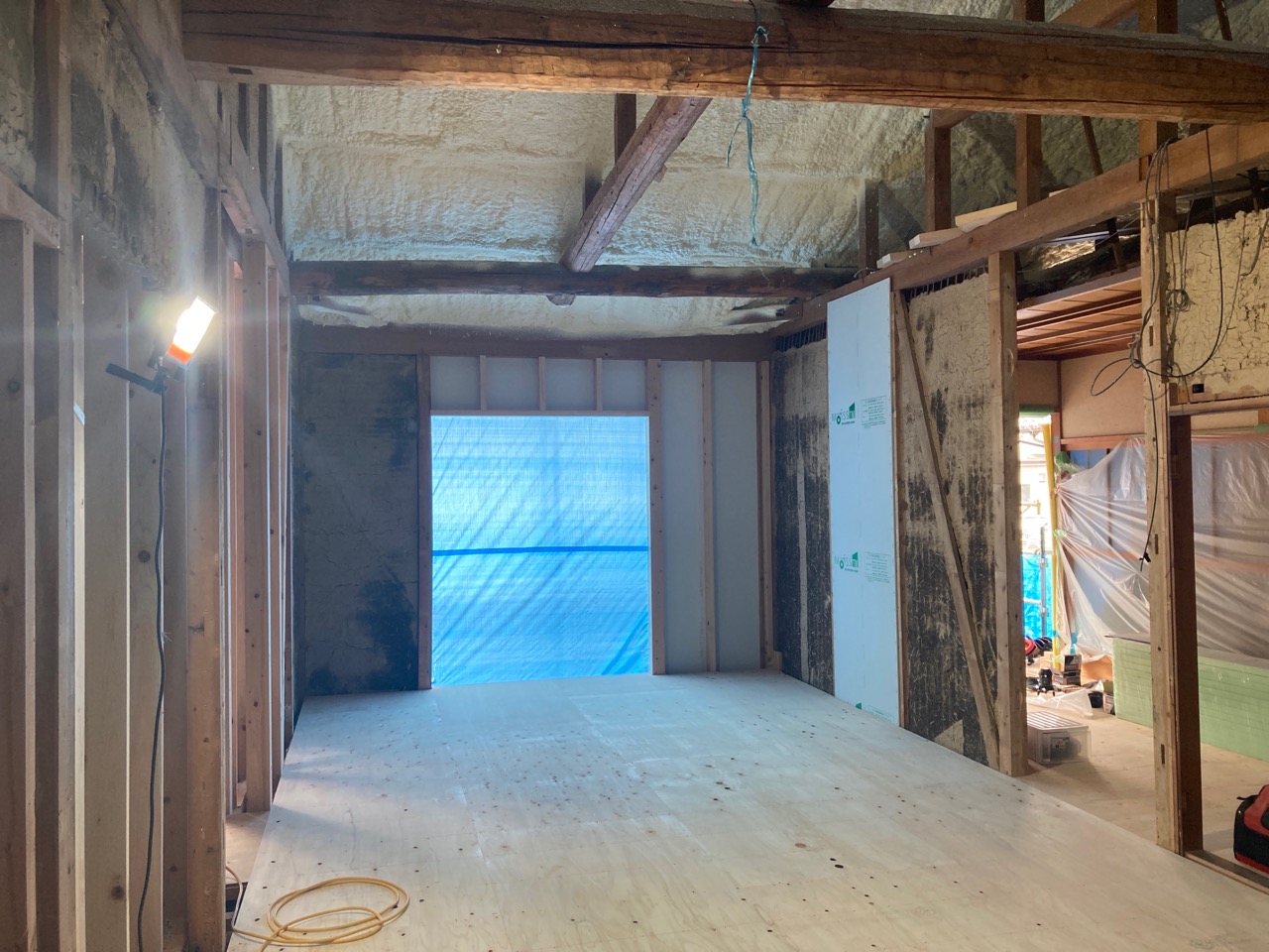 既に敷設が終了している断熱材の効果も表れているのかもしれません。これまでの旧構造は全く断熱材が入っていなかったので夏は暑く冬は底冷えがする場所だったそうです。これで快適に生活していただければと思います。