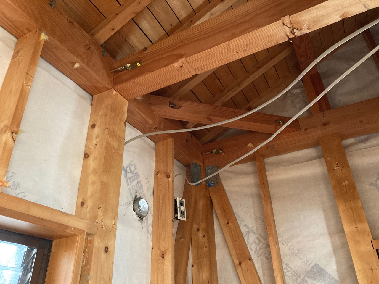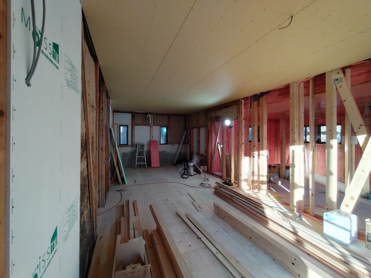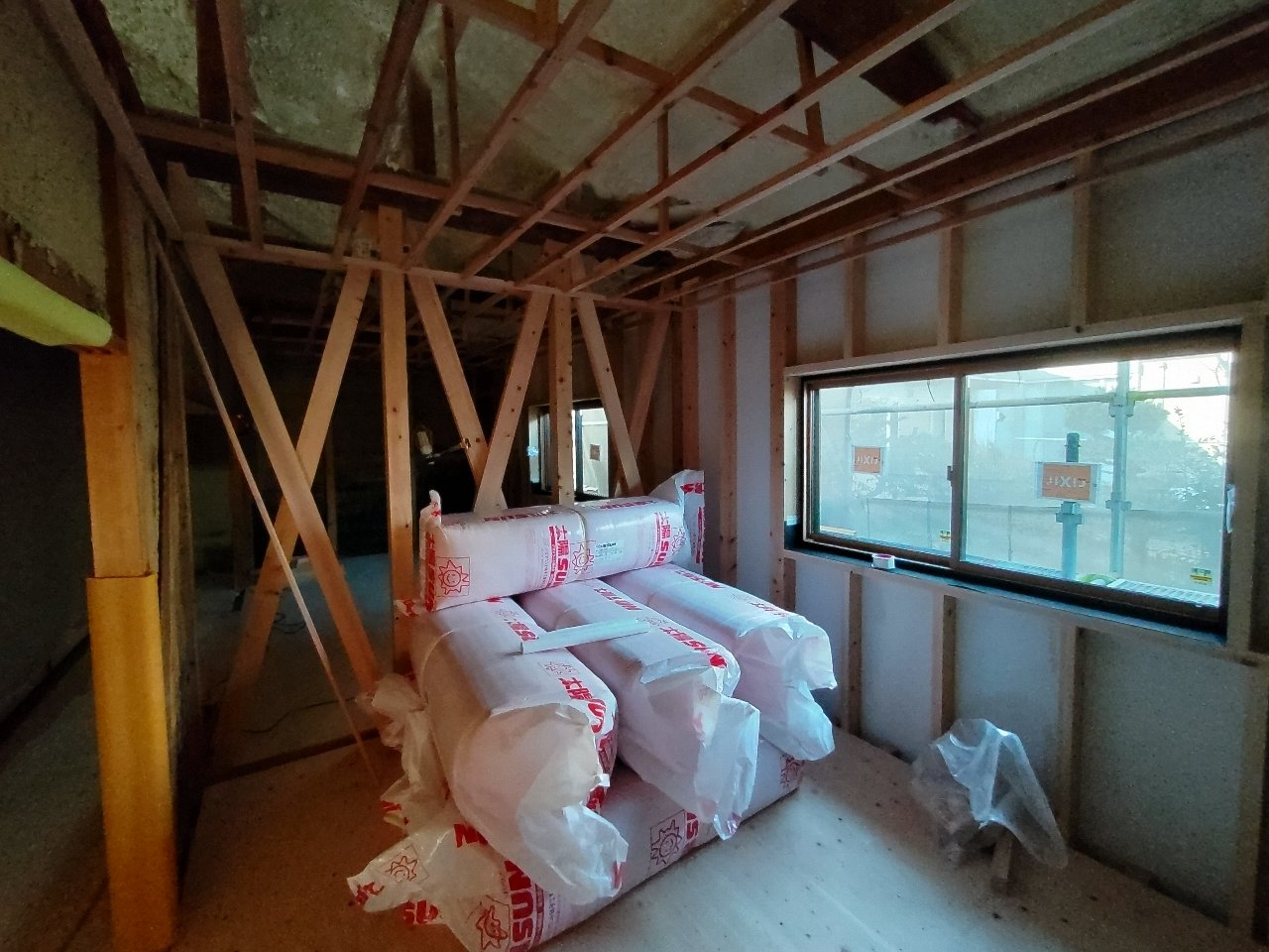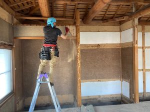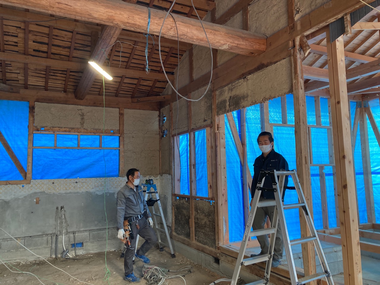 既に敷設が終了している断熱材の効果も表れているのかもしれません。これまでの旧構造は全く断熱材が入っていなかったので夏は暑く冬は底冷えがする場所だったそうです。これで快適に生活していただければと思います。