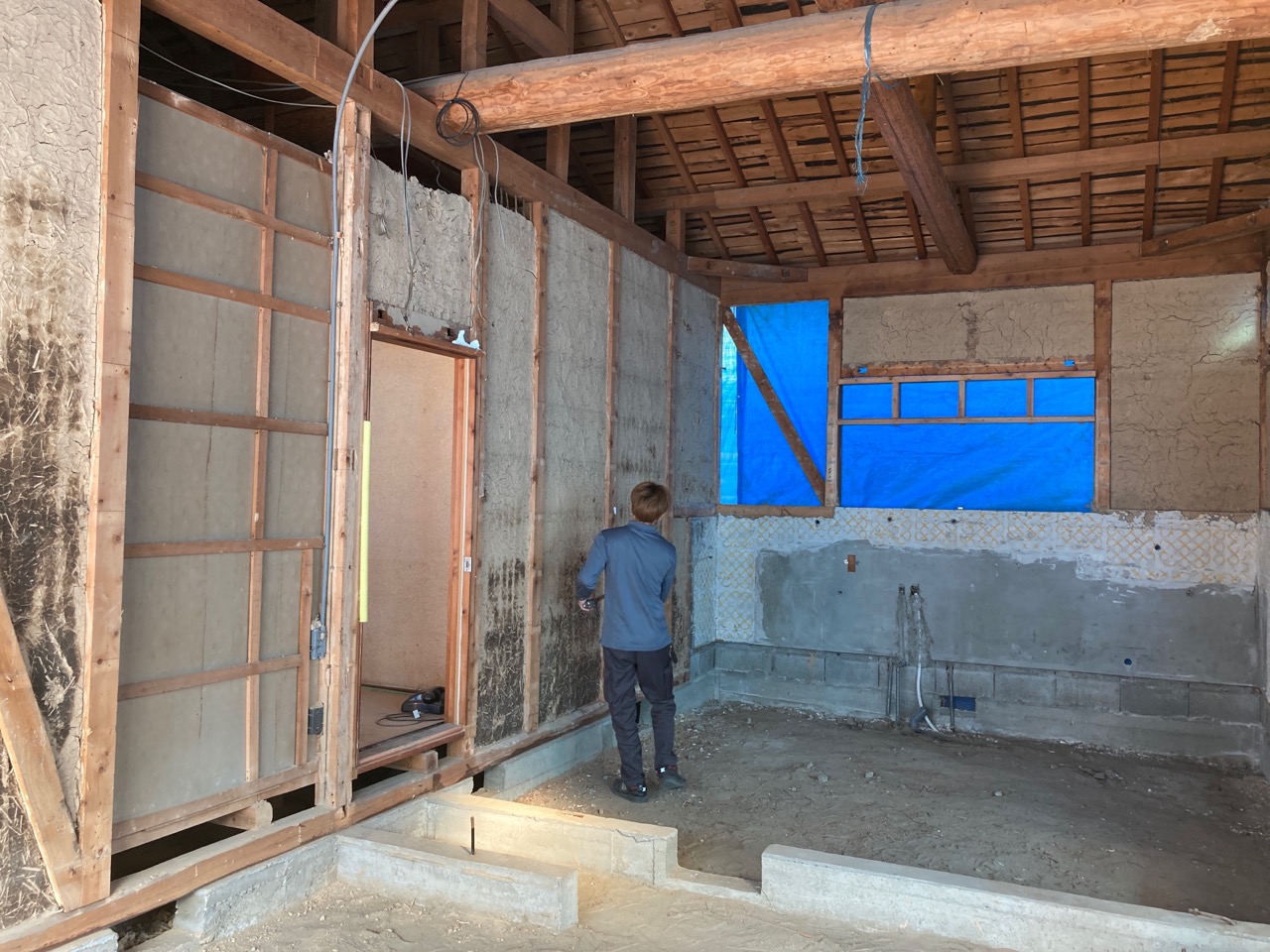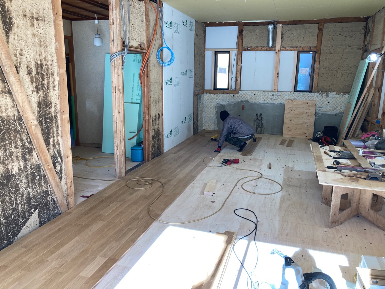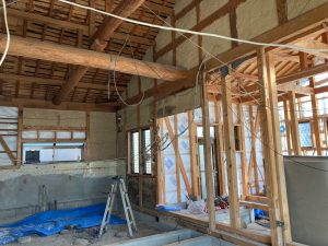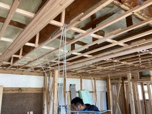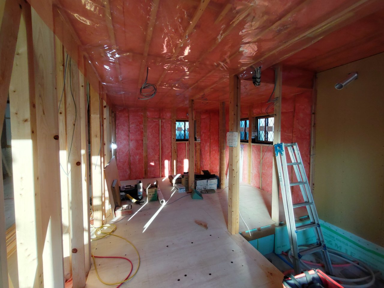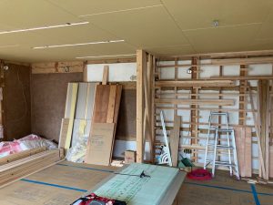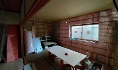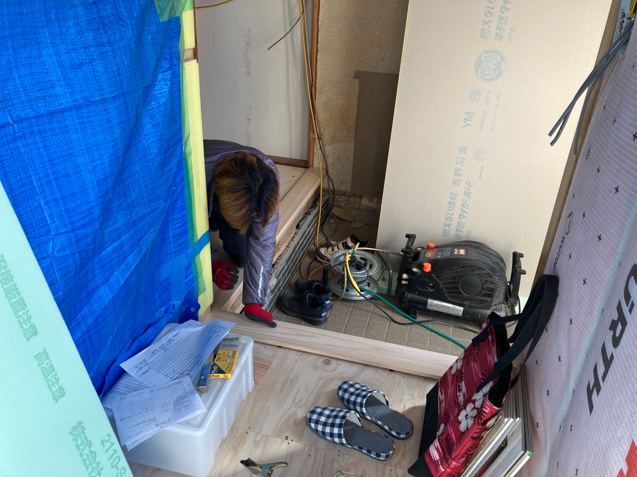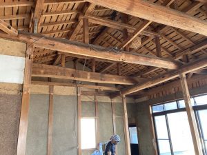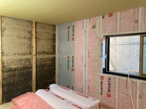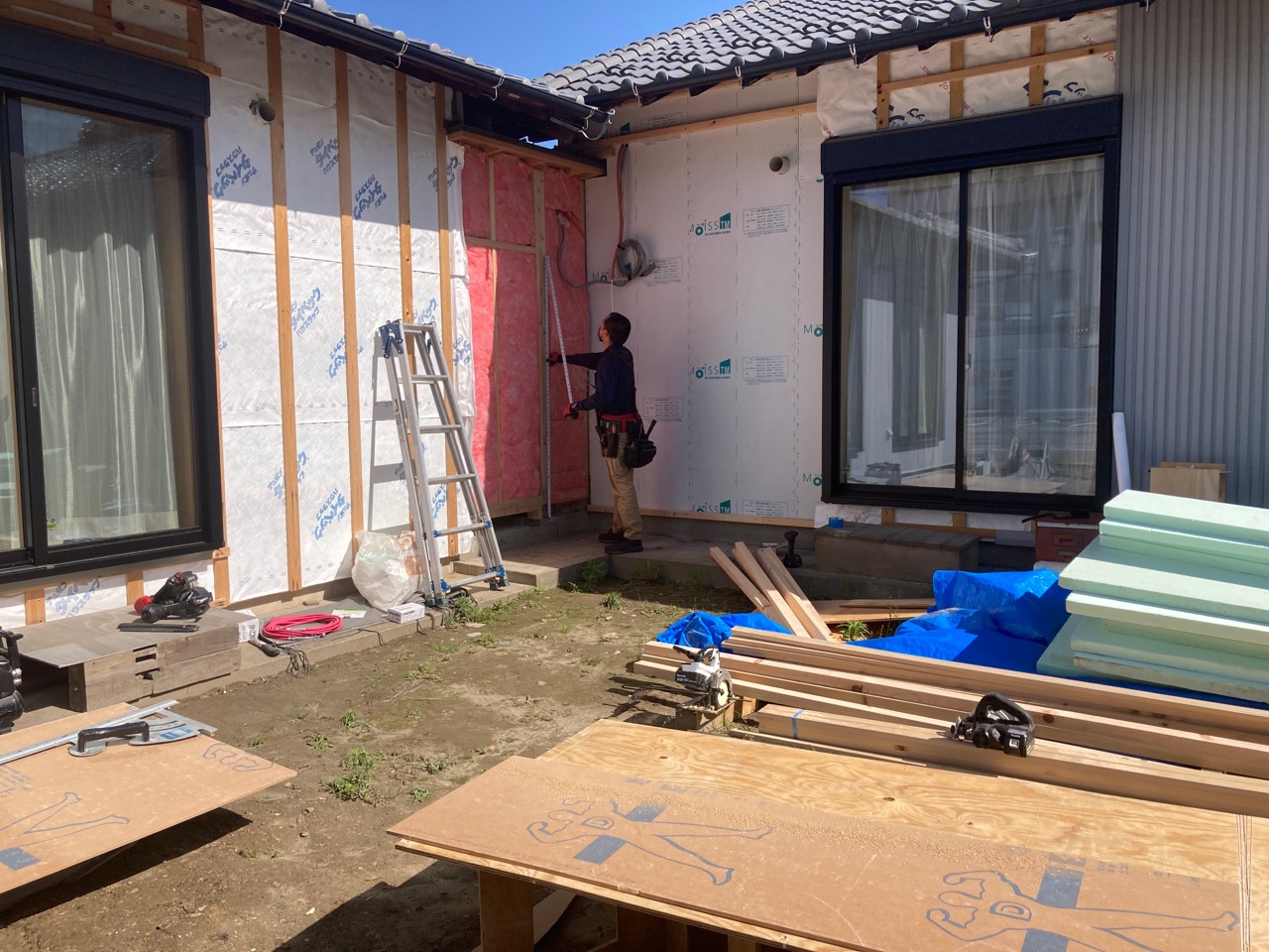 既に敷設が終了している断熱材の効果も表れているのかもしれません。これまでの旧構造は全く断熱材が入っていなかったので夏は暑く冬は底冷えがする場所だったそうです。これで快適に生活していただければと思います。