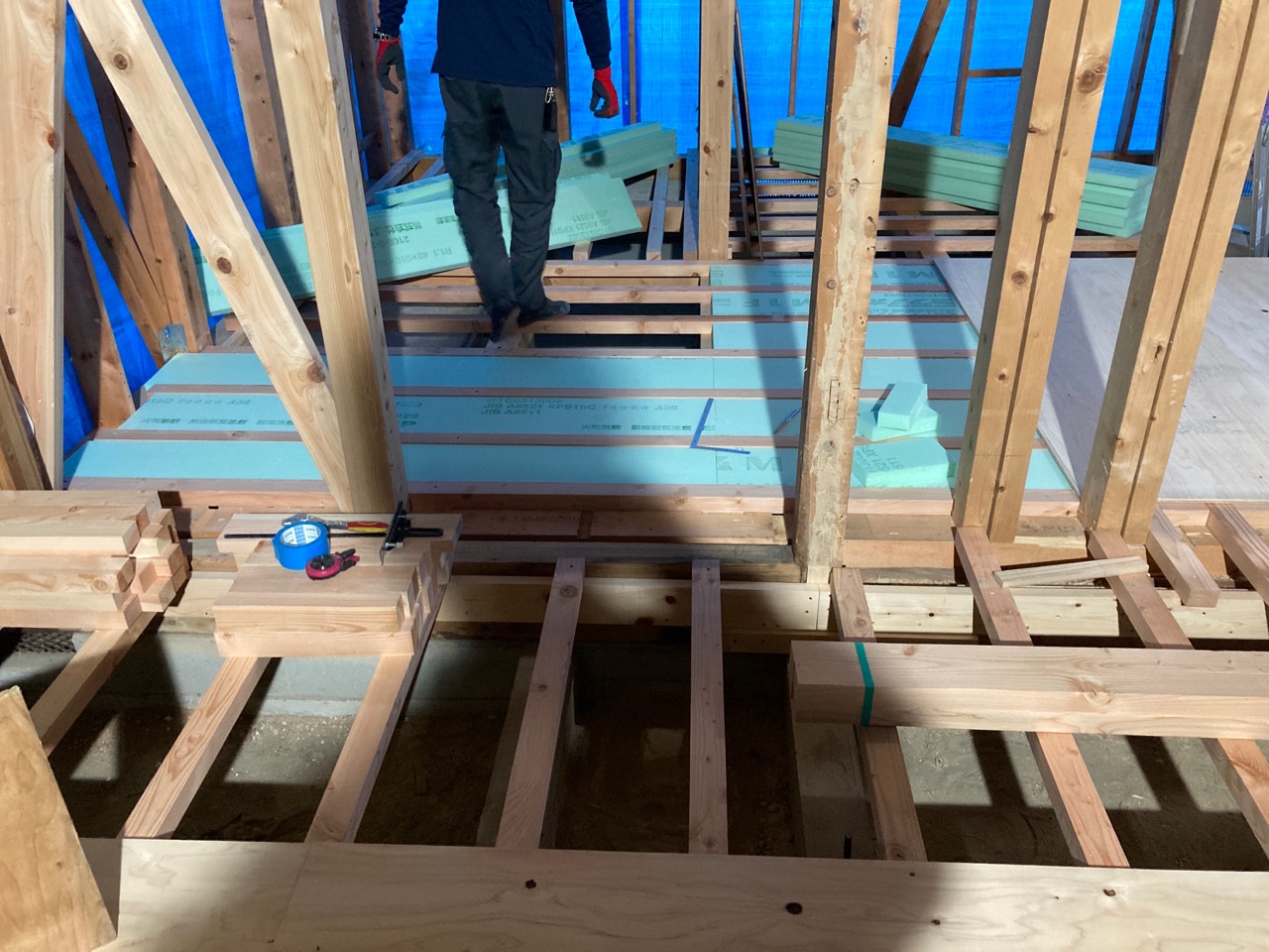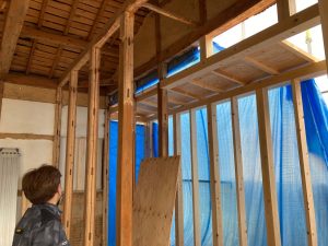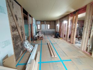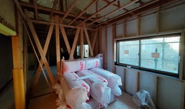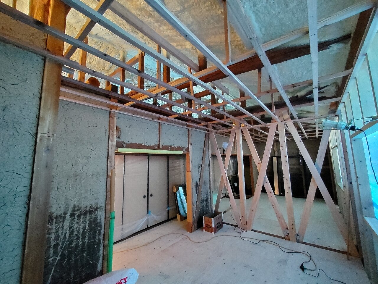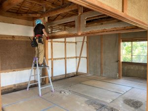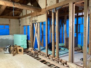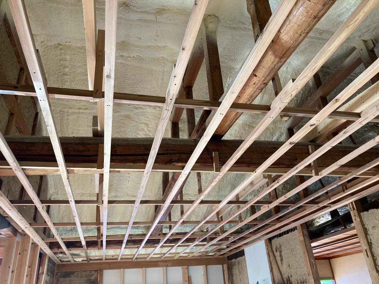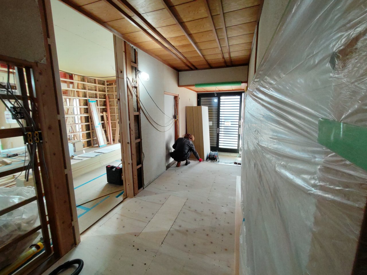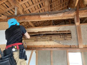 既に敷設が終了している断熱材の効果も表れているのかもしれません。これまでの旧構造は全く断熱材が入っていなかったので夏は暑く冬は底冷えがする場所だったそうです。これで快適に生活していただければと思います。