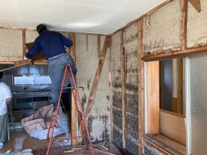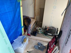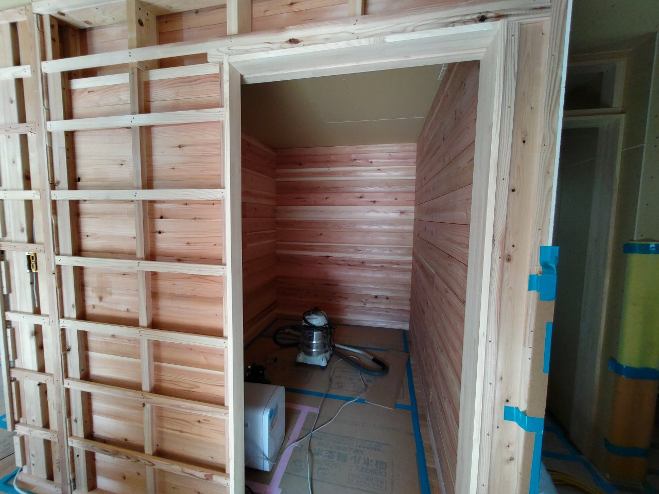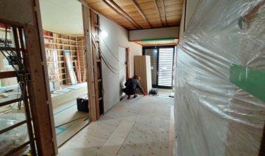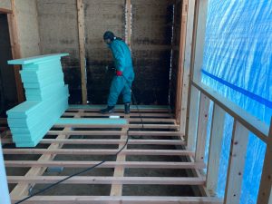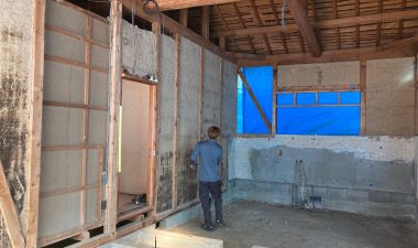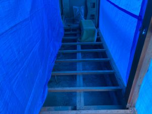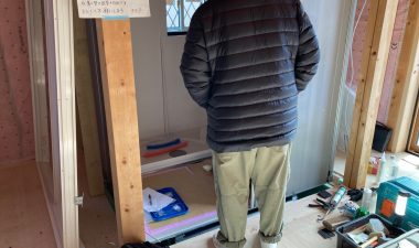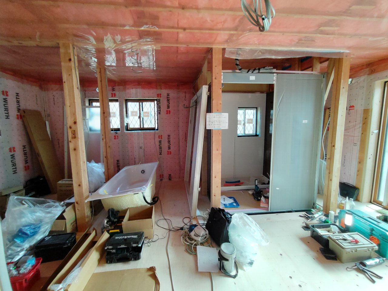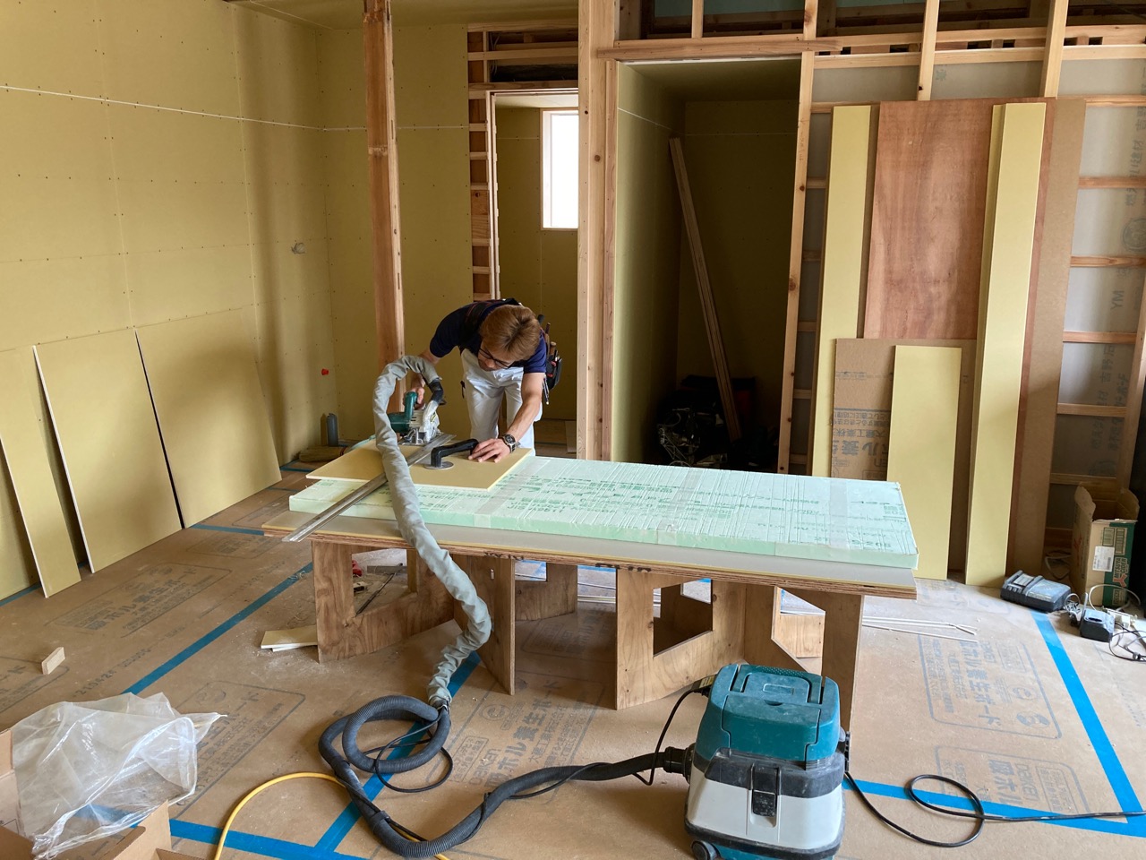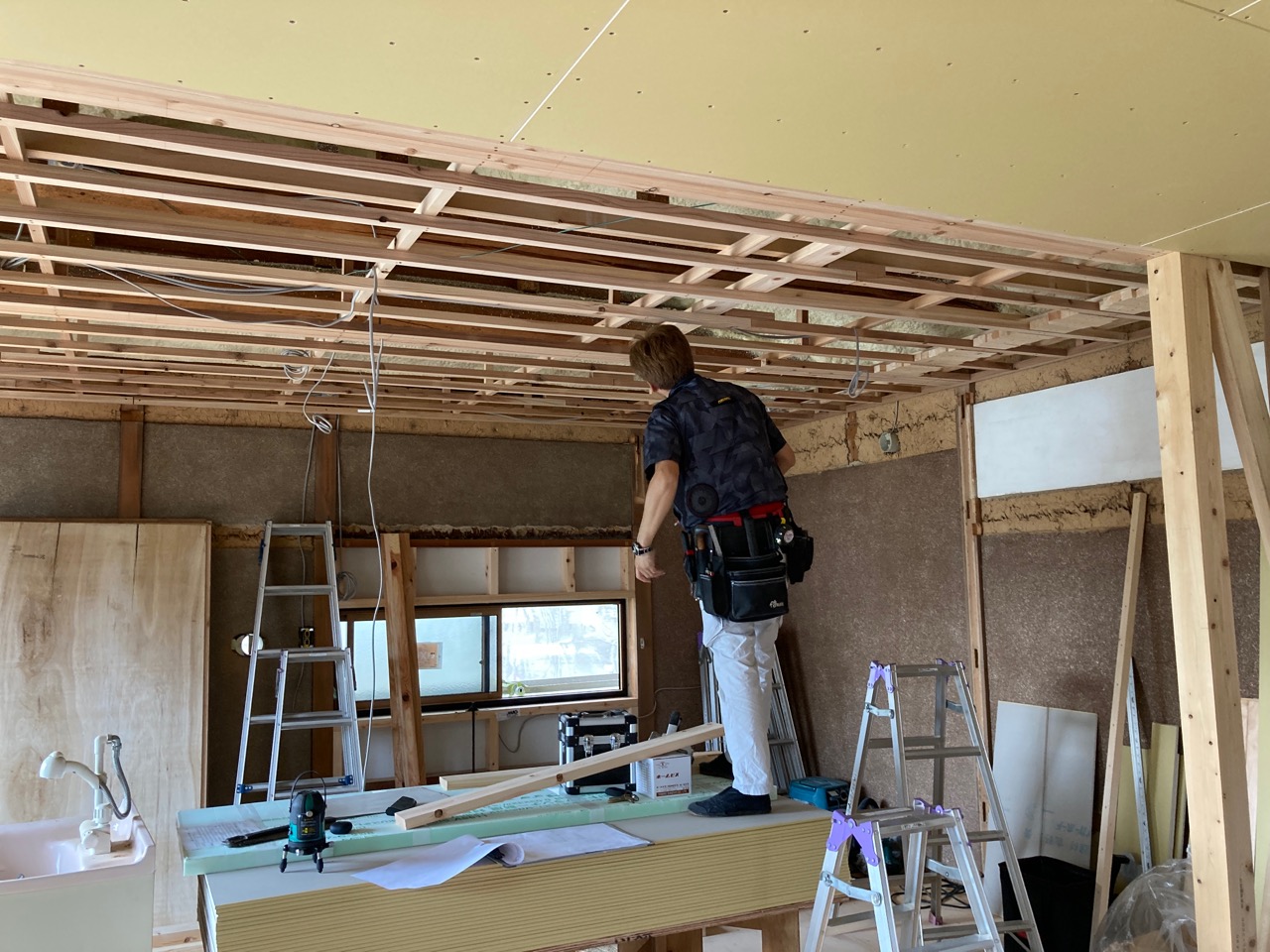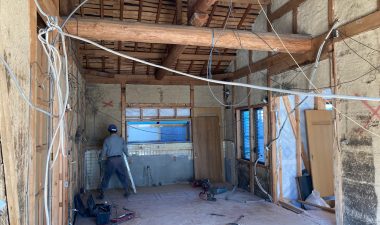 既に敷設が終了している断熱材の効果も表れているのかもしれません。これまでの旧構造は全く断熱材が入っていなかったので夏は暑く冬は底冷えがする場所だったそうです。これで快適に生活していただければと思います。
