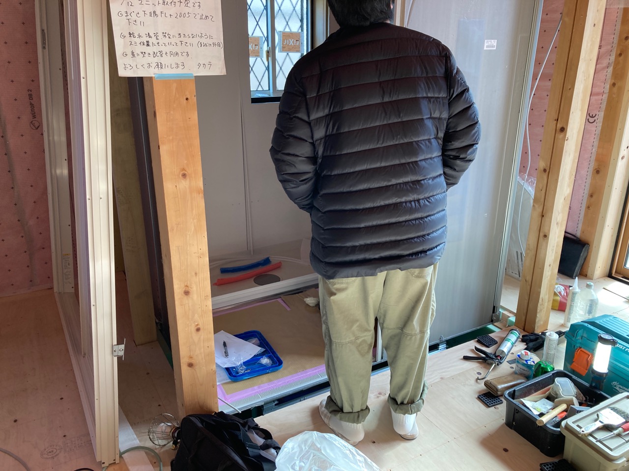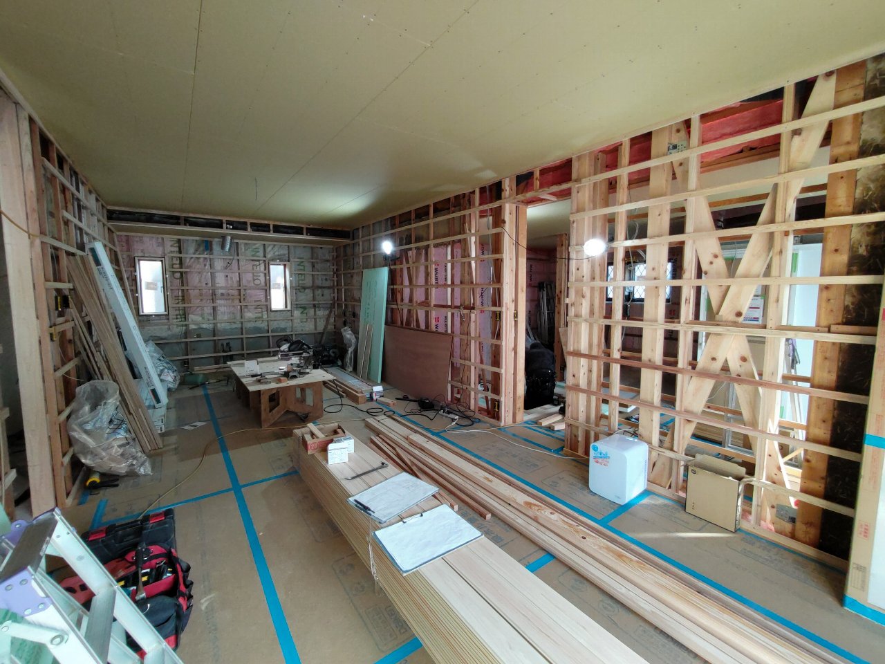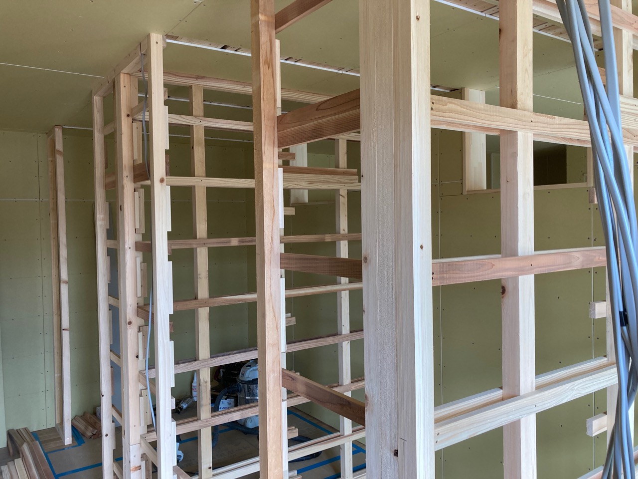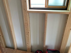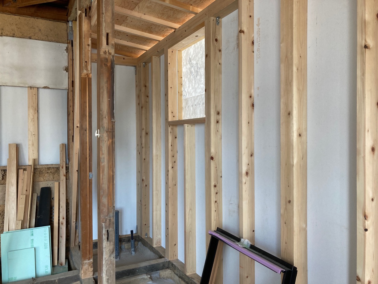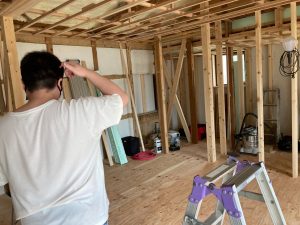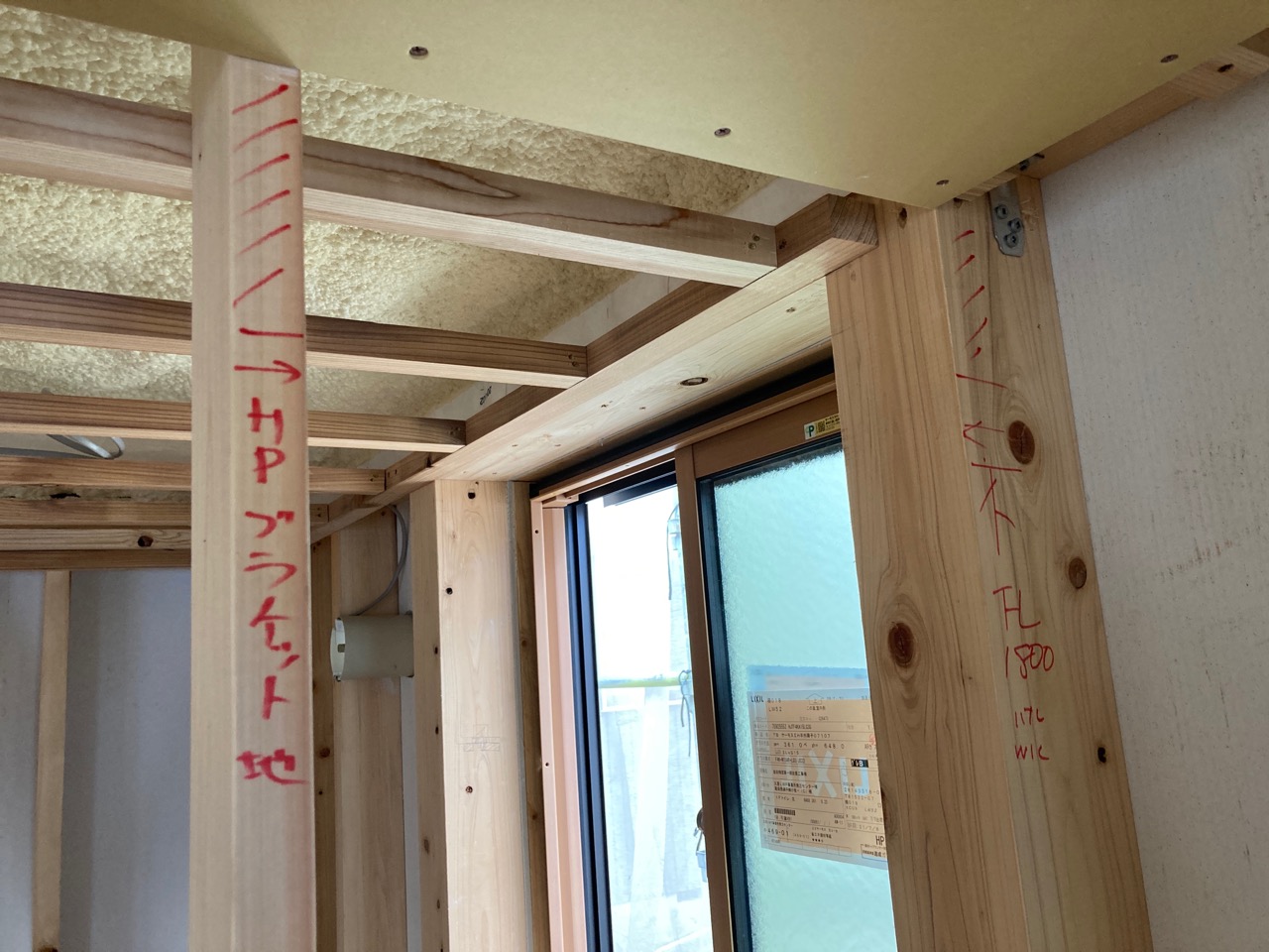 新築と同様、後で取り付けたい部品がある部分には事前に下地を入れておいてもらいます。入れたい部分にマジックで記入をしておきます。