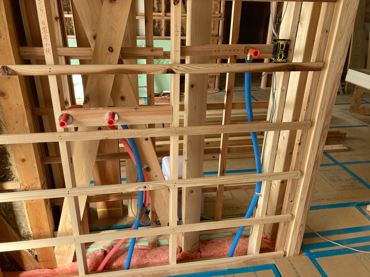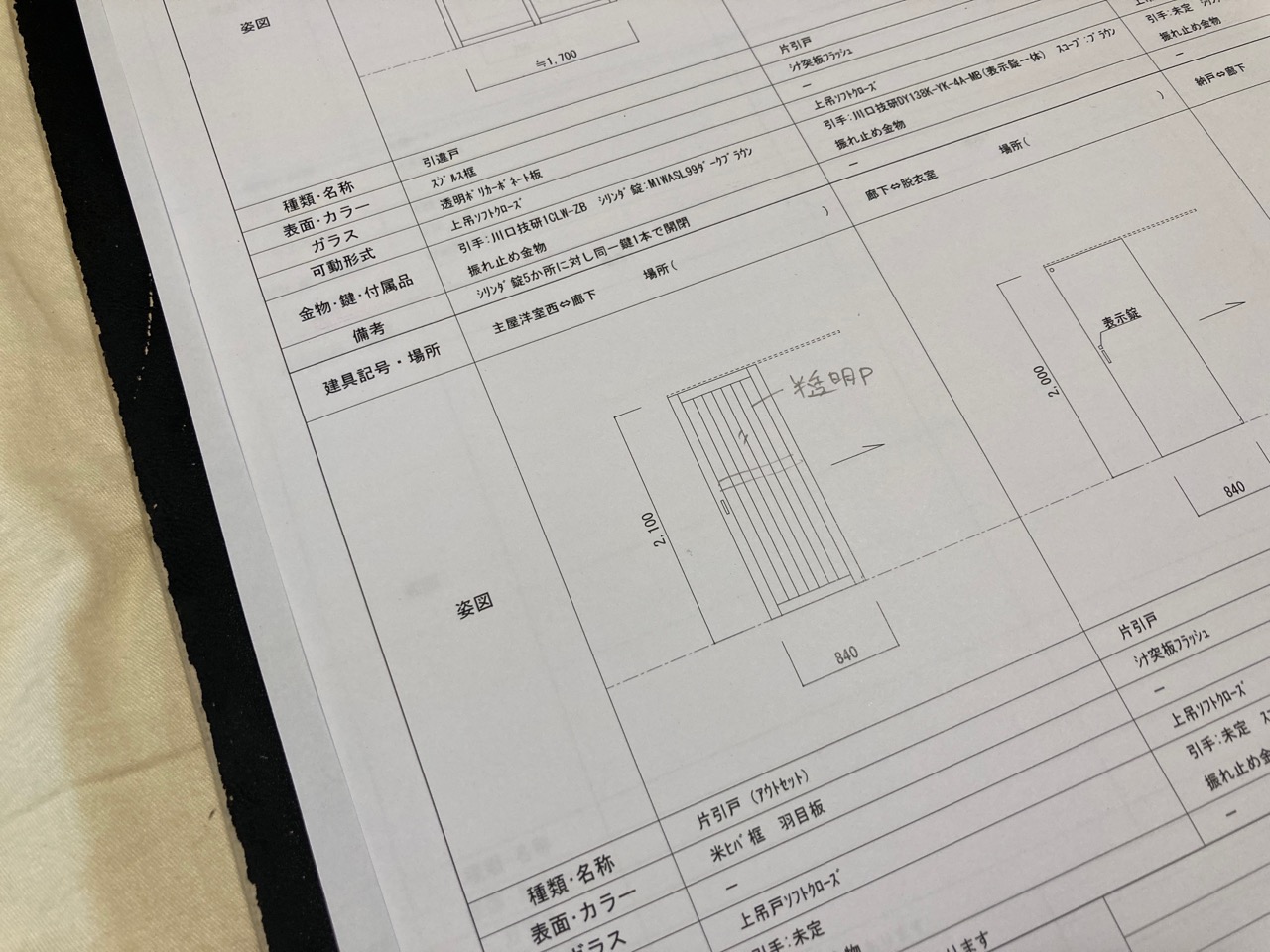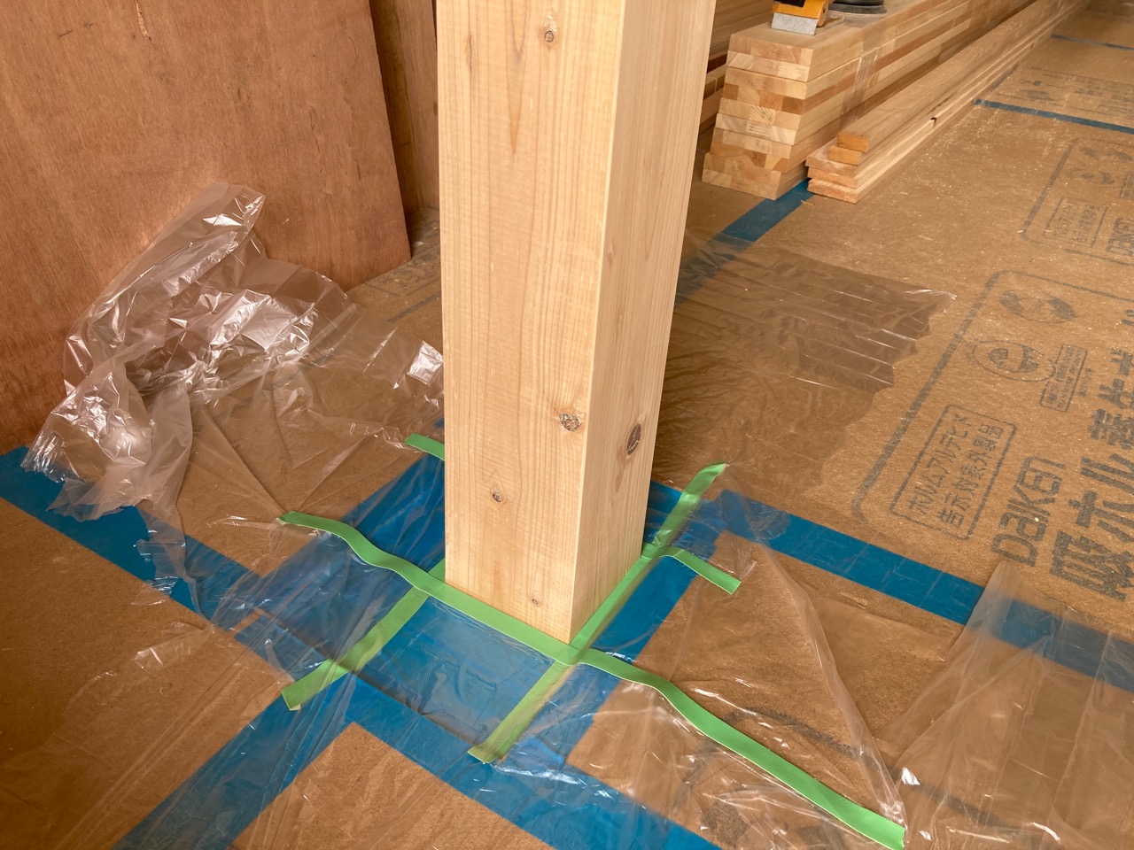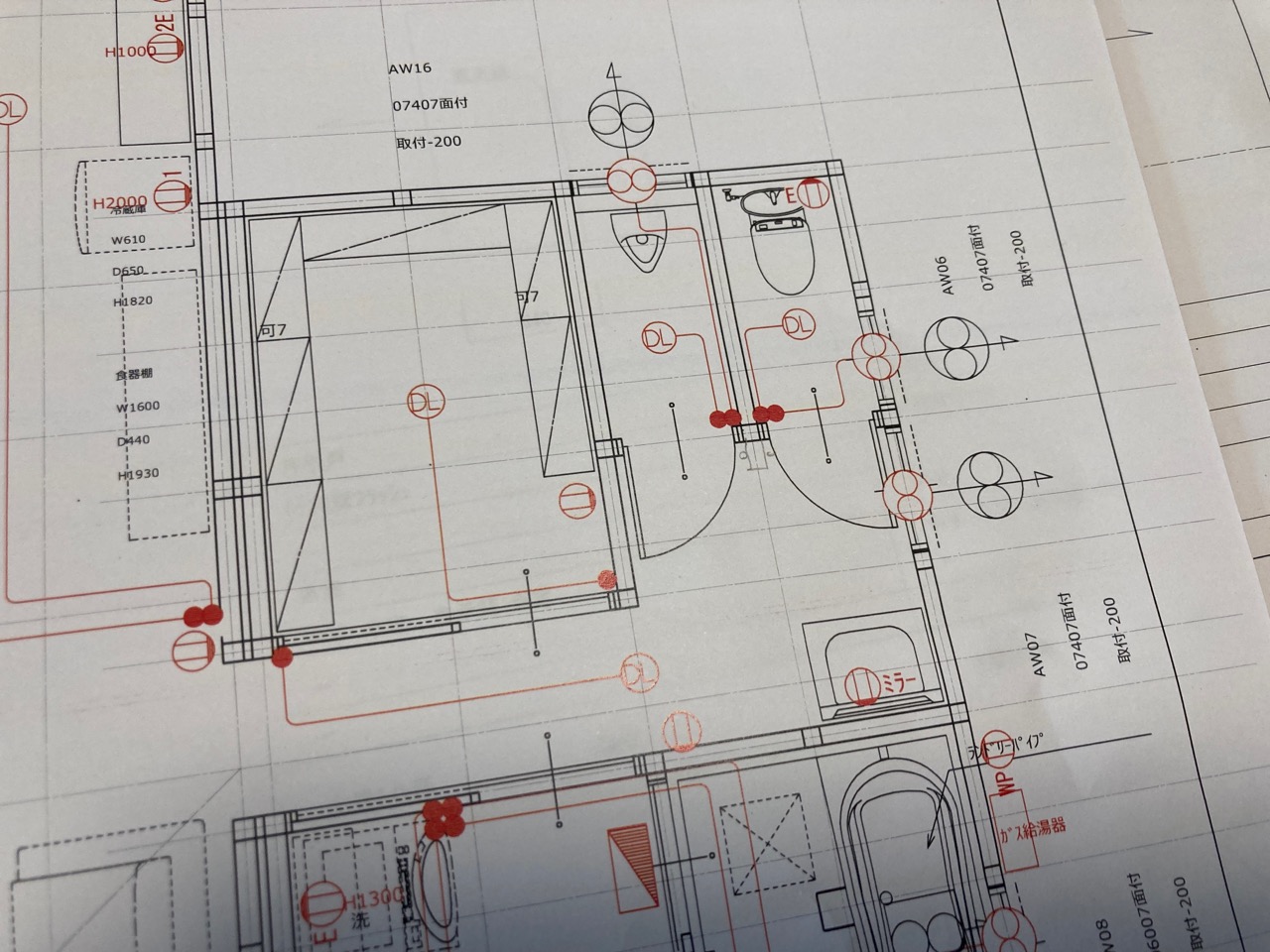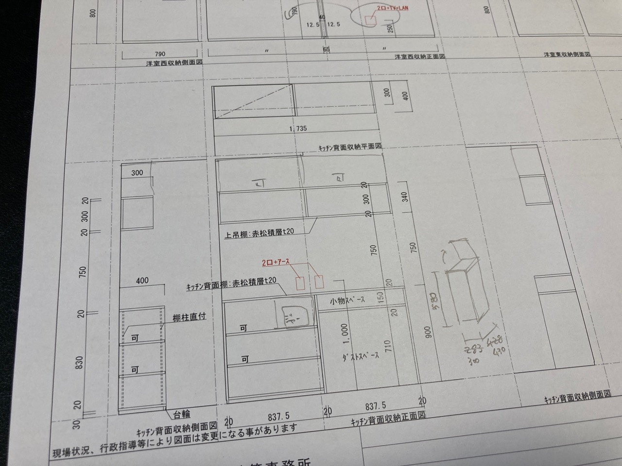 新築と同様、後で取り付けたい部品がある部分には事前に下地を入れておいてもらいます。入れたい部分にマジックで記入をしておきます。