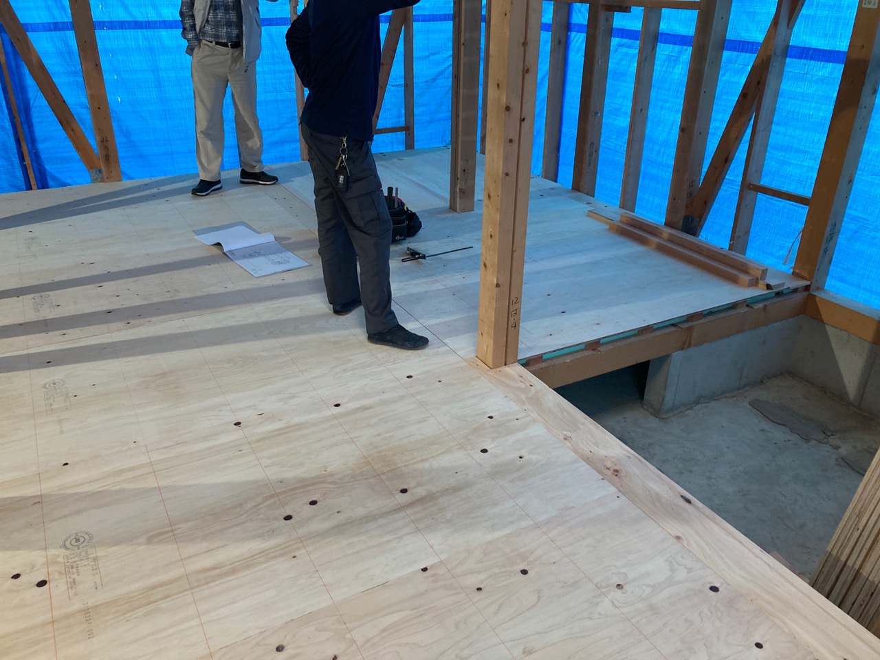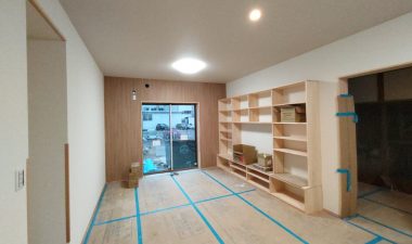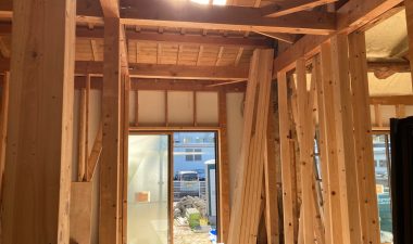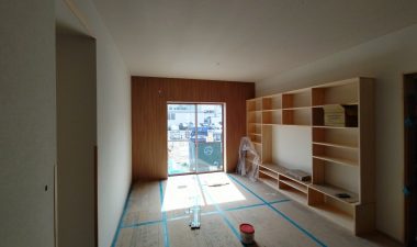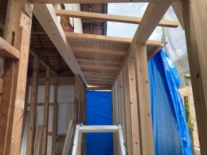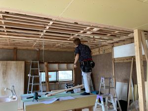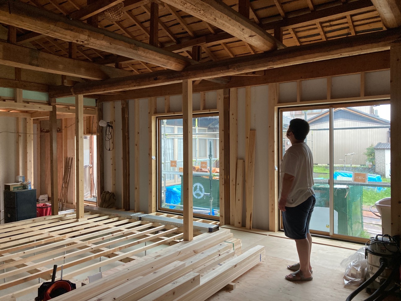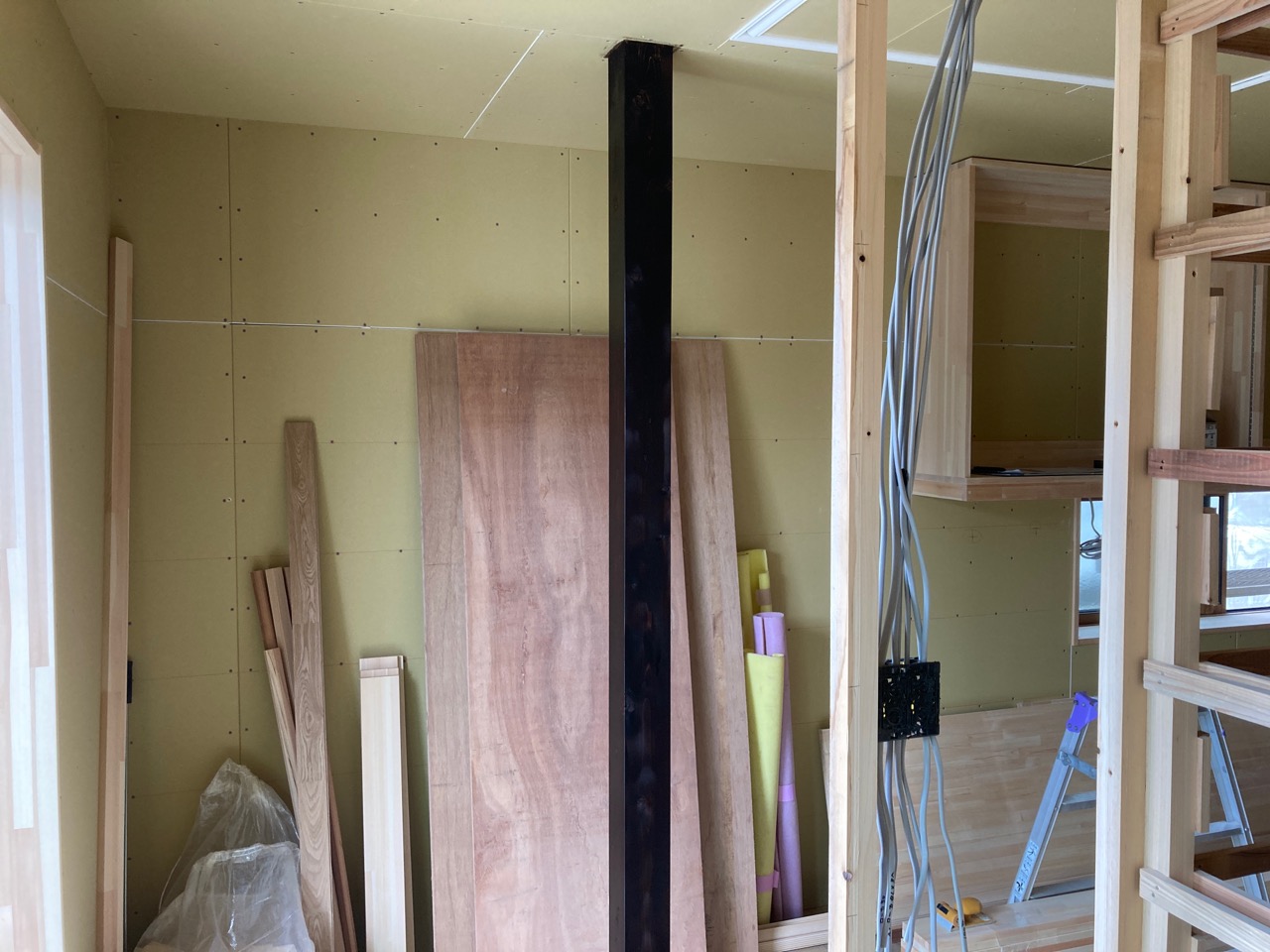 すっかり床下地、天井下地の終わっている現場で電気配線と収納棚のお打合せを行いました。先日までの長雨の名残か、お彼岸を過ぎたためか8月末といえど現場の中は思いの外暑くなく(それでも少し汗ばみますが)お打合せもスムーズに行われました。