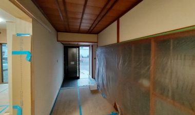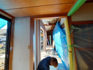 改修工事がいよいよ着工、と言っても形式上の着工です。実際に工事が始まる日は少しお日柄が悪いので、それよりは暦の良い日でi様もお仕事がお休みだという本日、形式的ではありますが着工しました。形式とは言え何か工事をしなければならないので、まずはお仏壇に着工のご報告をし、『和室の障子を取り外す工事』をしました。来週から本格的に工事スタートです。リフォーム工事はお住まいになりながら進めますので、生活空間と工事現場との区切りを明確にしておくことが必要です。