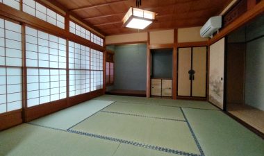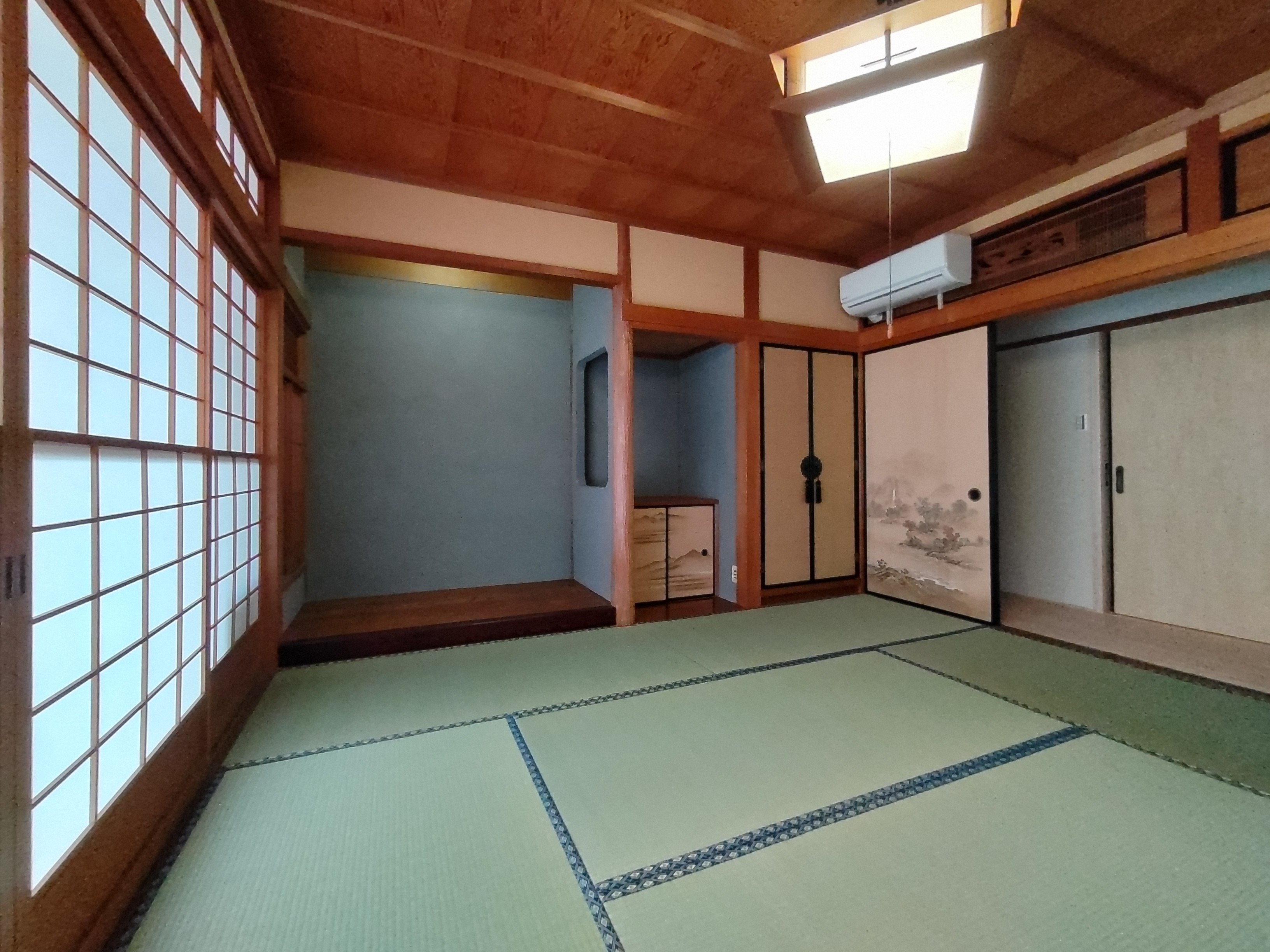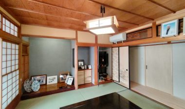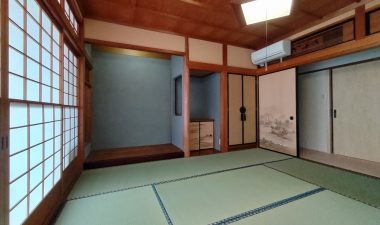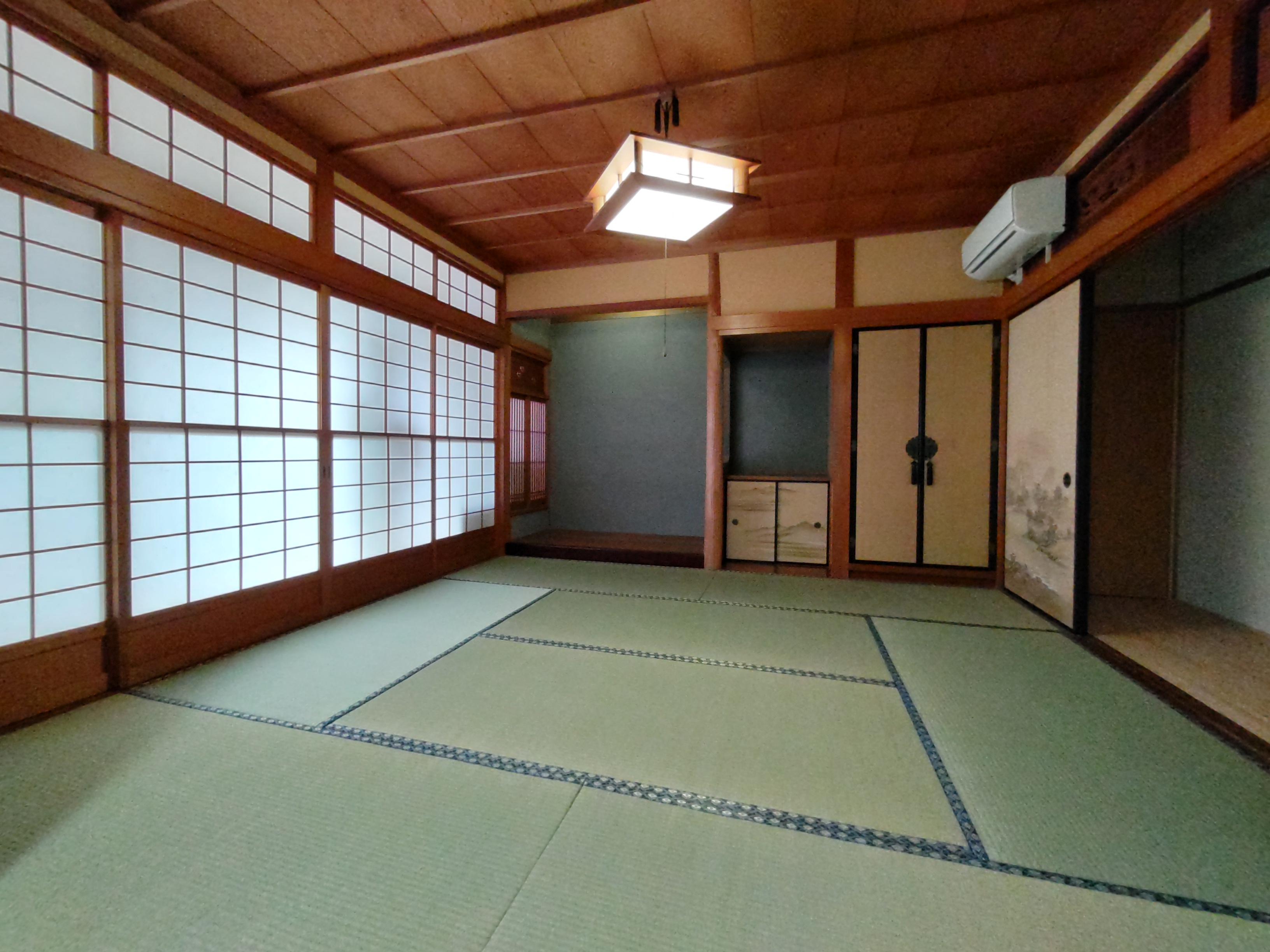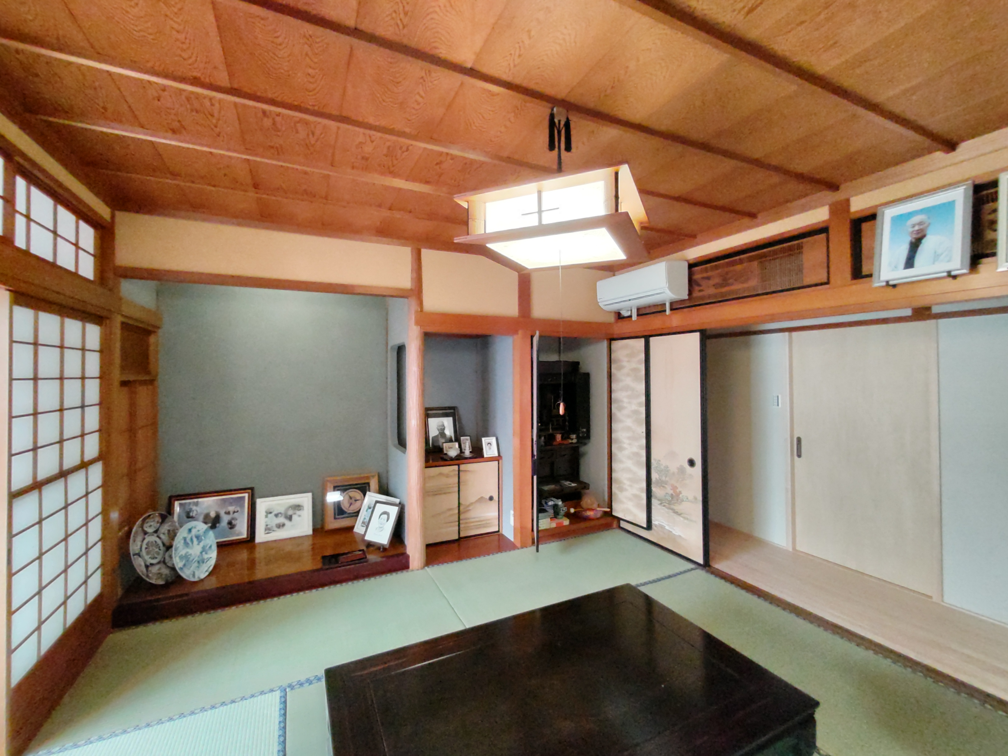 二間ある内、六帖の前の間は照明器具も旧かったのでLEDのライトに交換されました。(LEDにも和室用のひもスイッチ照明があるのは少し驚きましたが)