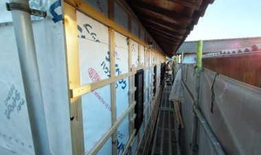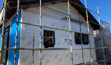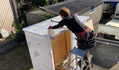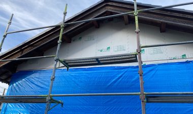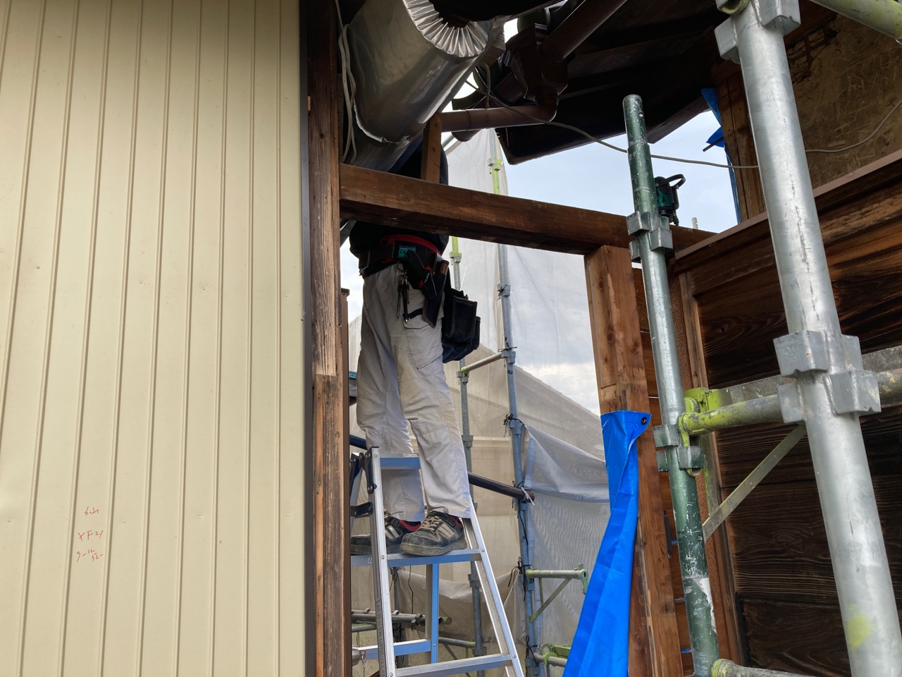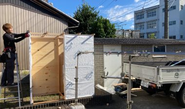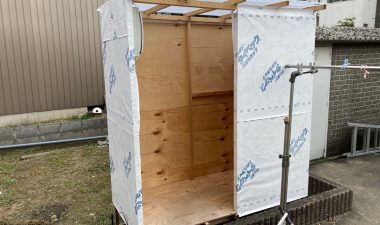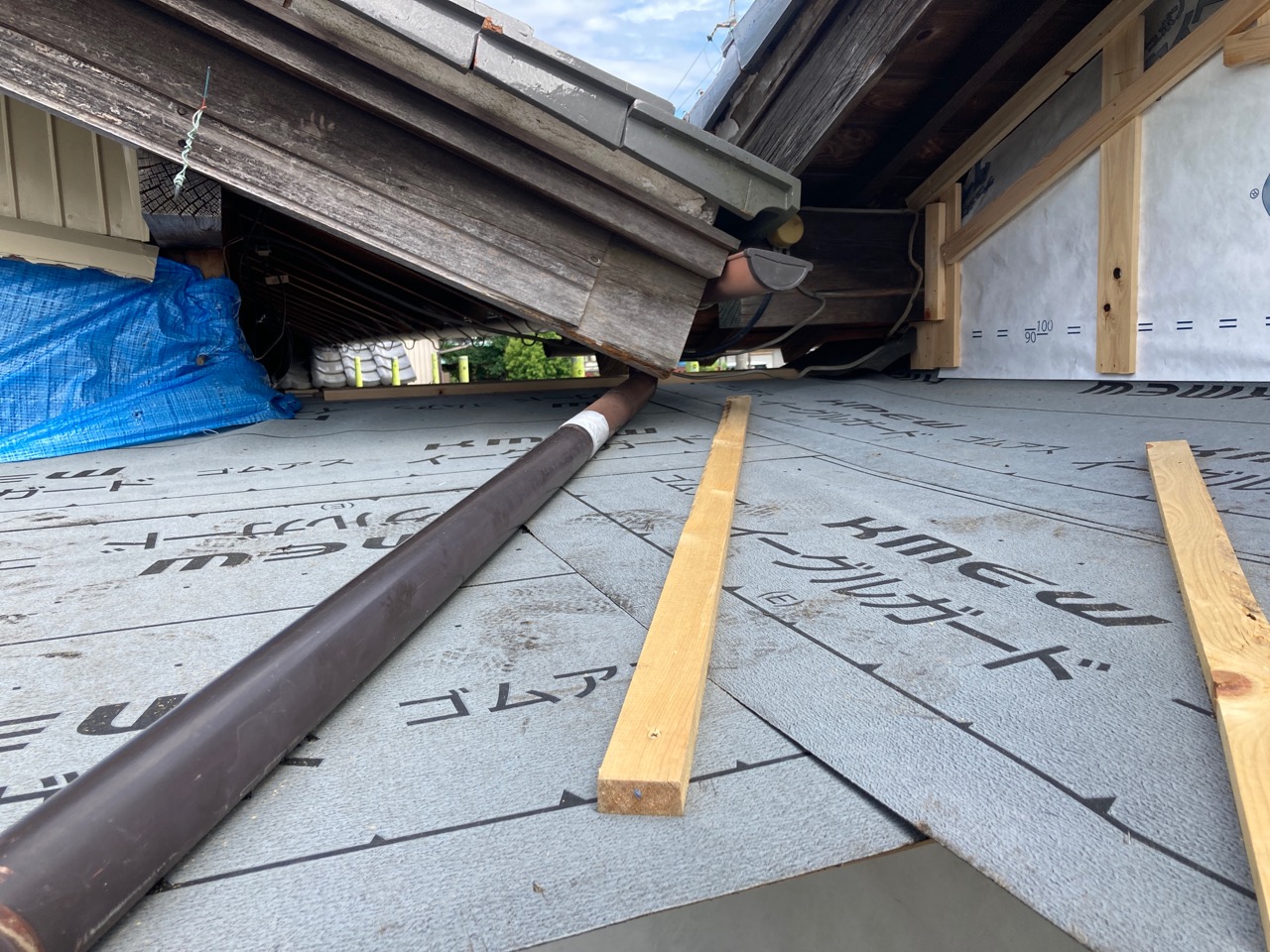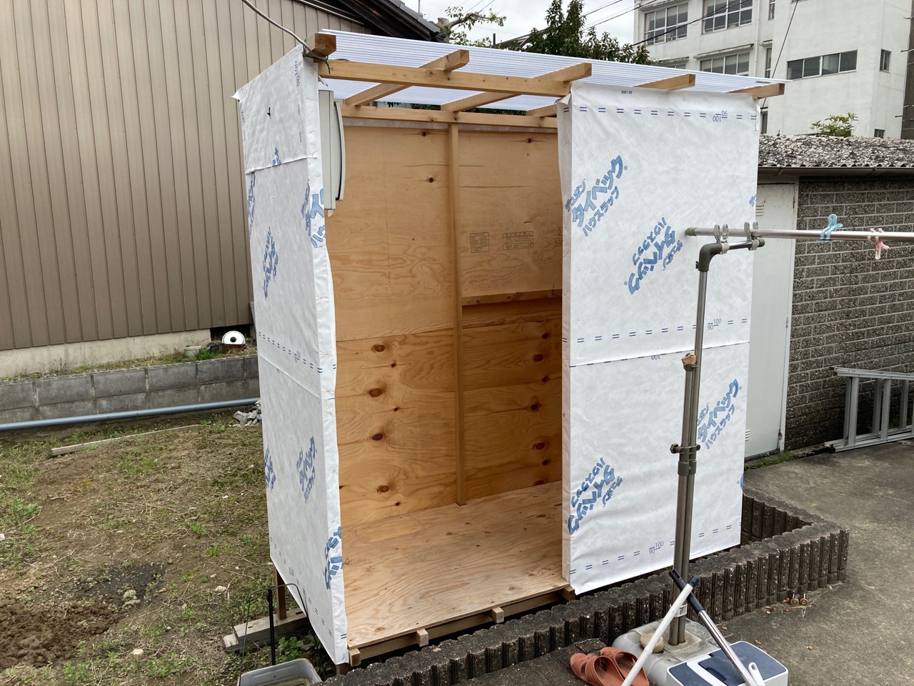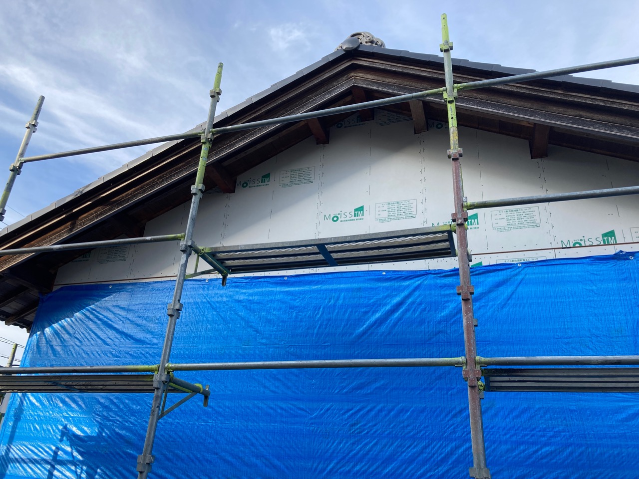 下地が完了しました。本日は初夏の日差しが照り付け、だいぶ日に焼けてきました。 これで後は外壁ガルバリウム鋼板を敷設すれば住宅のリフォーム工事も完成です。