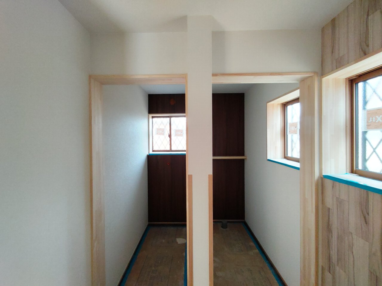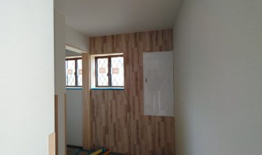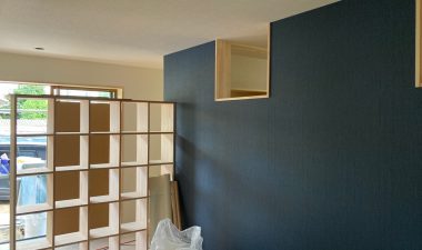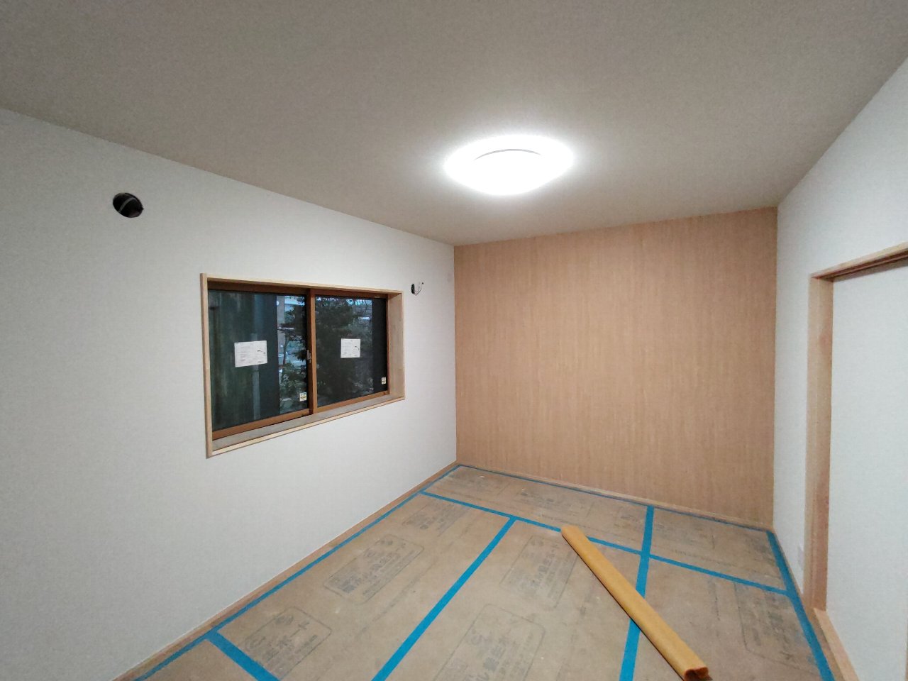 部屋数としては2室、面積的にはそこまで多くないので意外に素早くクロス工事が終わりました。メインのホワイトに各アクセントクロスが映えています。