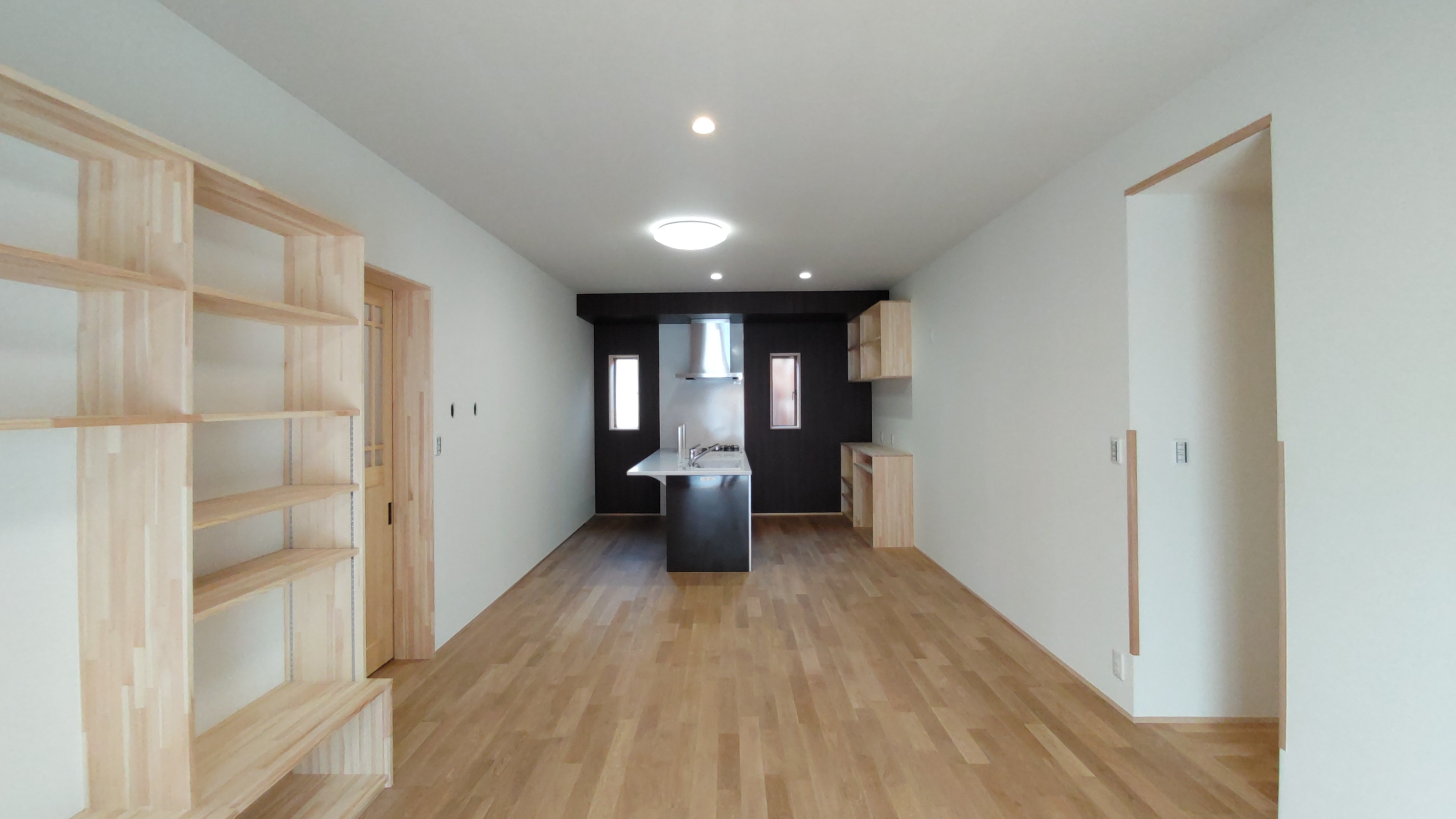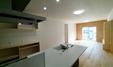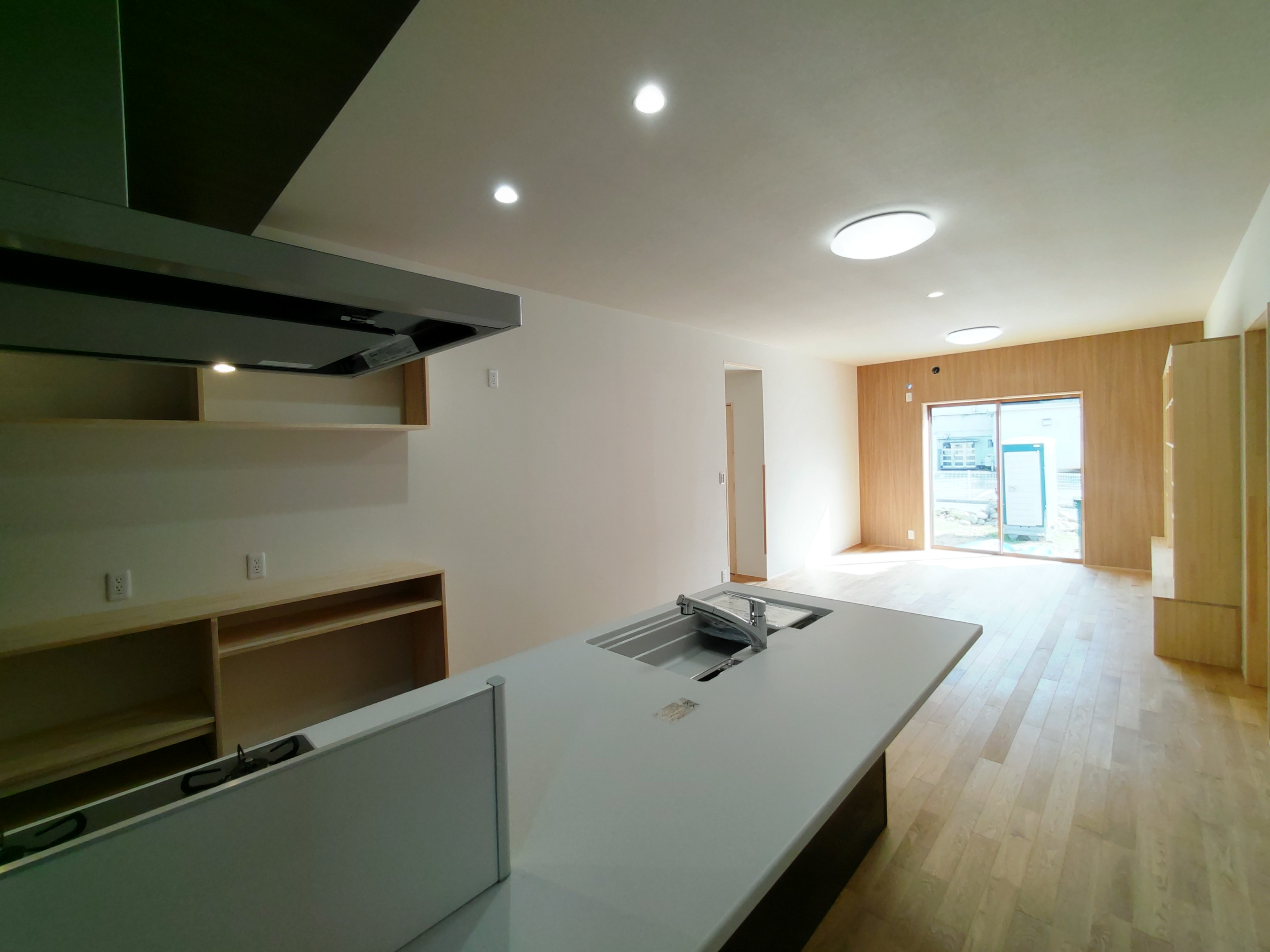 住みながらリフォームのLDKを解体から引っ越しまで約4か月間にわたって定点撮影を行ってみました。構造、設備、造作工事の様子が良くわかります。解体前から始めていればリフォーム前後の比較も良く分かったのですが、元々はほぼ中央で奥が台所食堂、手前が居間と分かれていました。各々非常に閉塞感を感じる部屋でしたが、構造上問題ない間仕切壁を取り払い、天井高をいっぱいまで上げる事で、非常に広々とした開放的なLDK空間になりました。