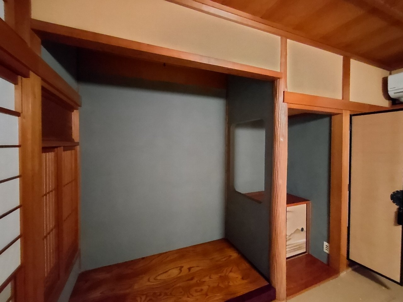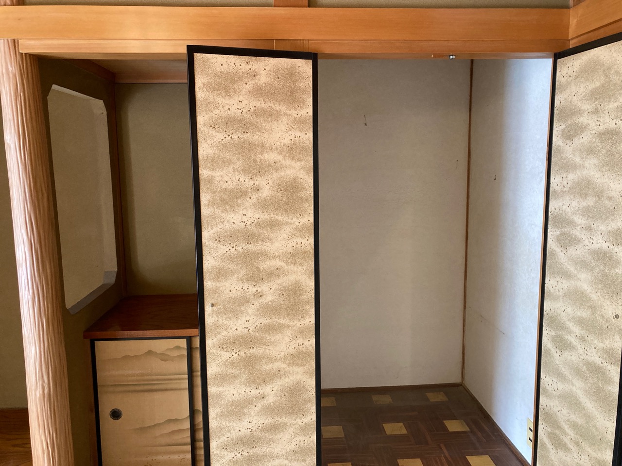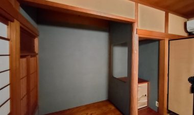 座敷二間の壁塗工事が終了しました。特に床の間などは施工前とガラリと色を変えられ、シックな色合いになりました。