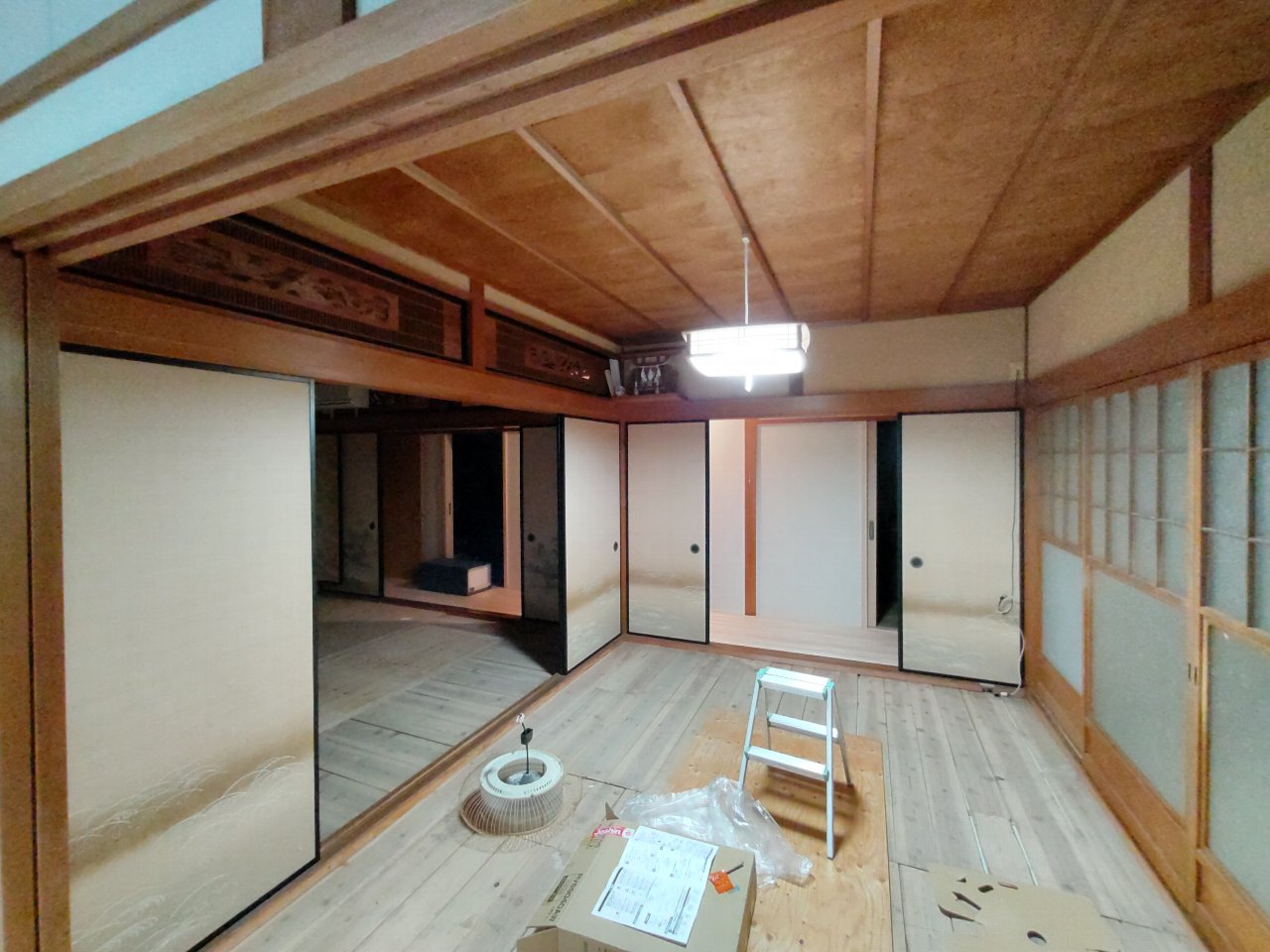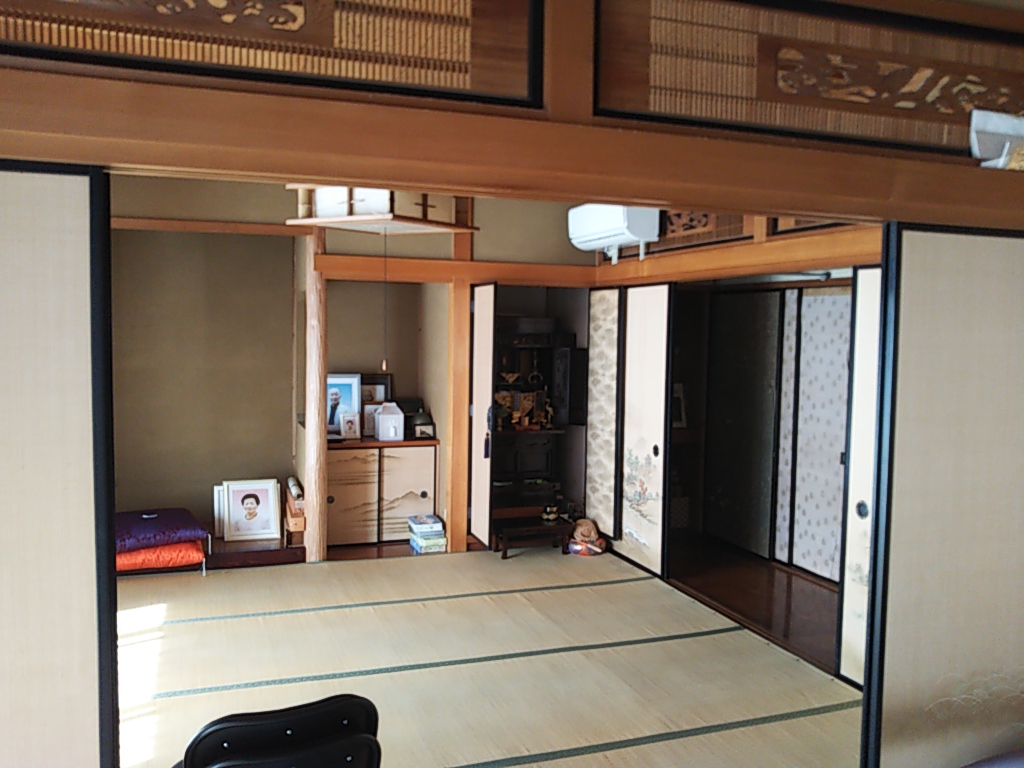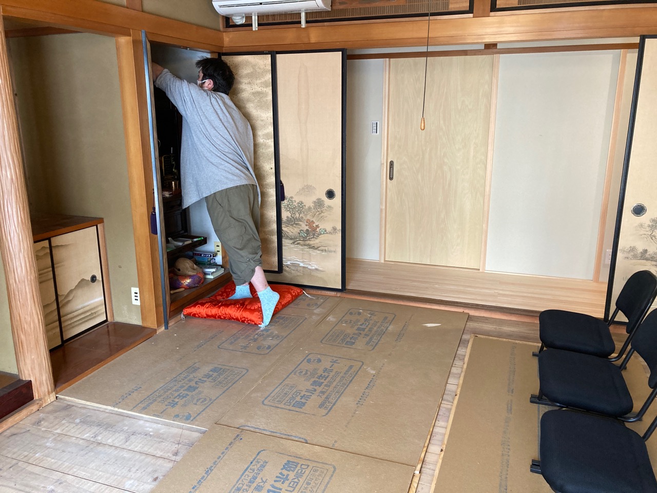 せっかくですので家財道具移動の様子を定点撮影。ほぼ4か月間目いっぱいに家財道具を押し込んでおいた8帖6帖続きの座敷が久しぶりにすっきりと開放されました。