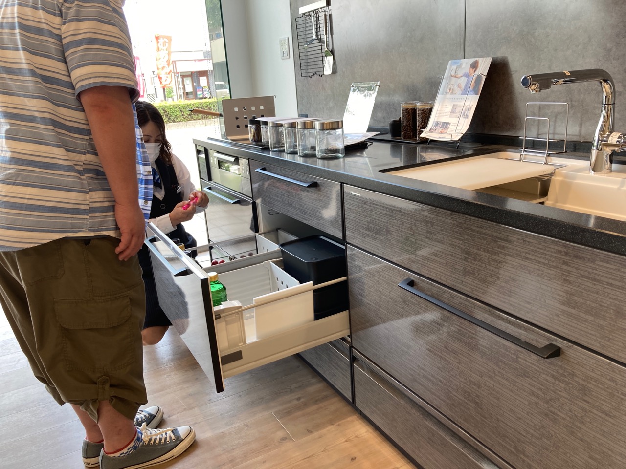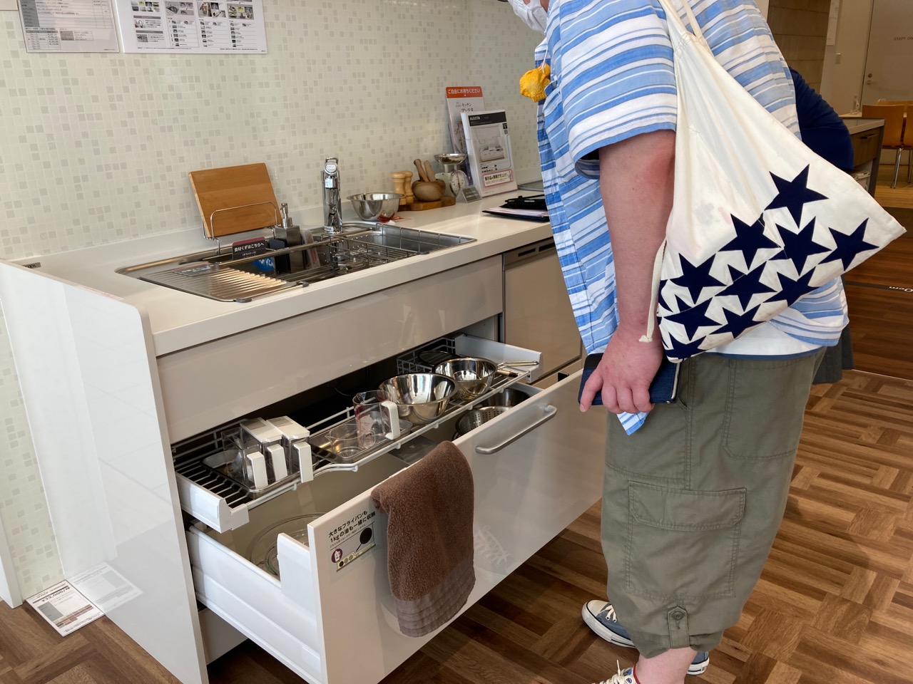 一緒にL社の洗面台やキッチンも確認。ショールームに展示されているものは演出するための小物の効果もあって、非常にキレイに説得力を持って見えます。