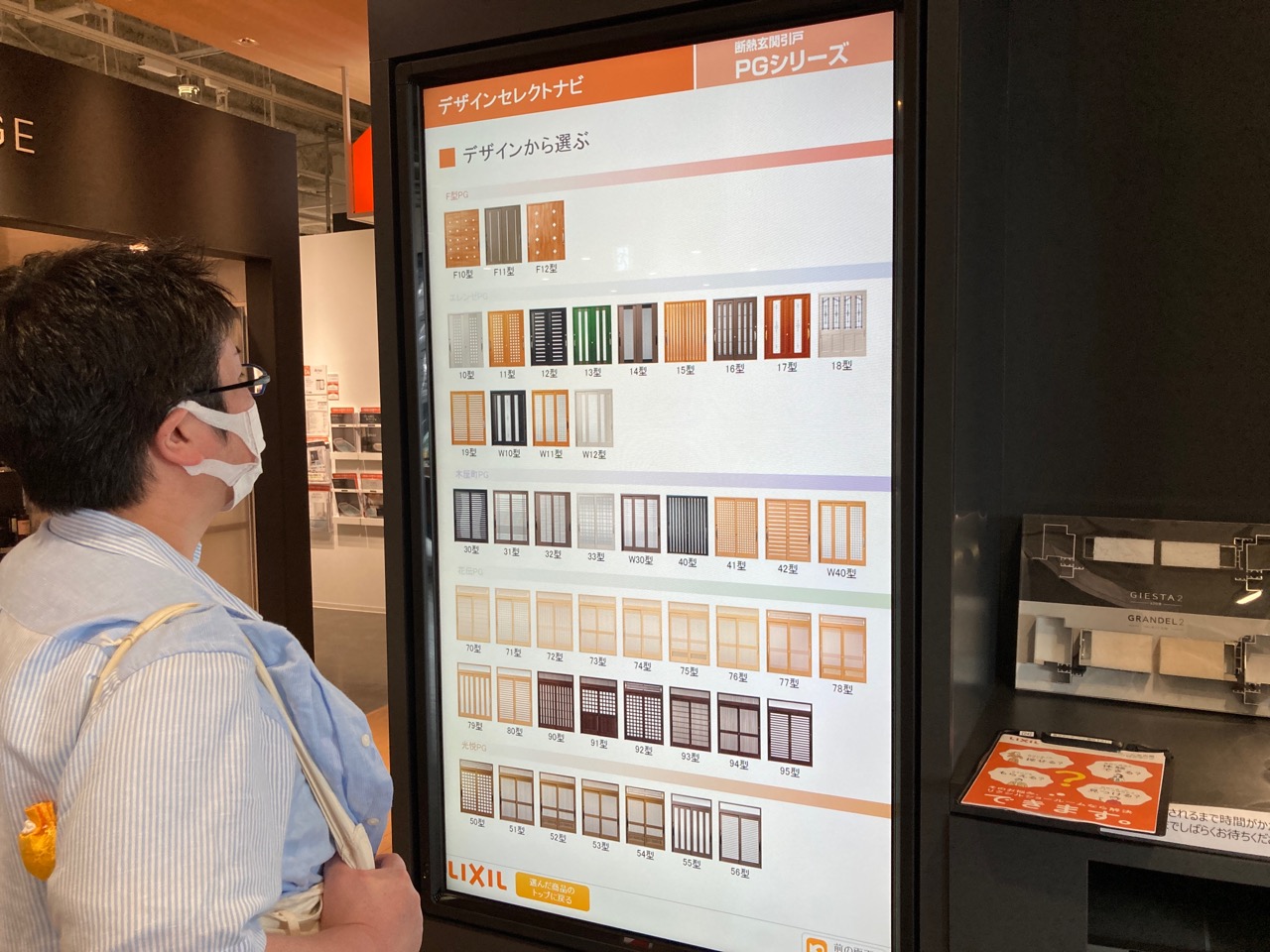 予定にはありませんでしたが、すぐ近くにある某L社のショールームもハシゴしました。玄関引戸の検討をするために訪れましたが、巨大なタッチパネルでシミュレーションしながら検討できるのはショールームならではです。