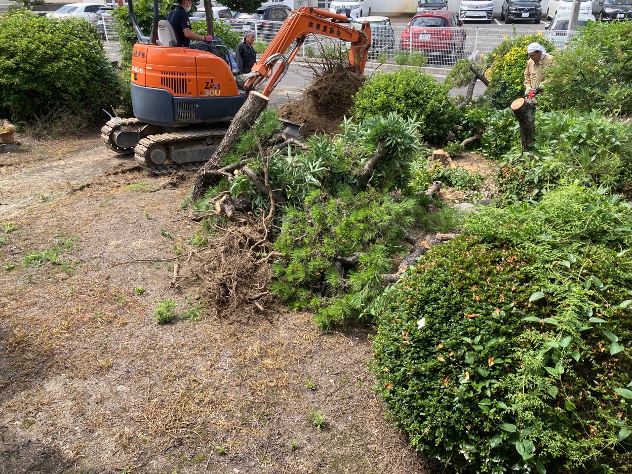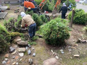さすが重機の力。午前中だけで庭木と玉石がキレイに撤去されました。