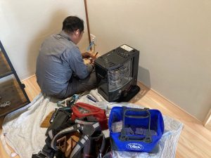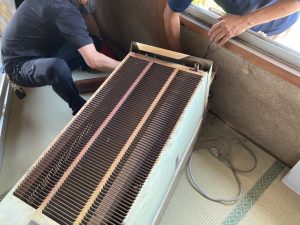 我々が子供のころからよく目にした窓の一部に取付けるタイプのエアコン。随分と使用していなかったものを撤去しました。かなりの重量があり、三人がかりで取外しました。