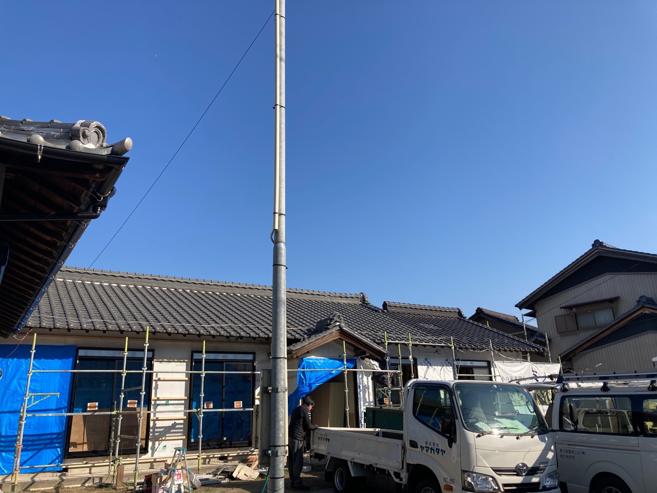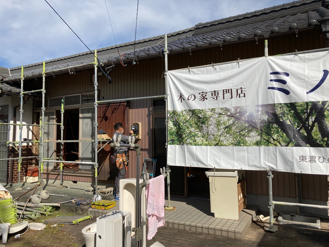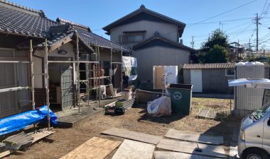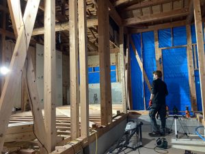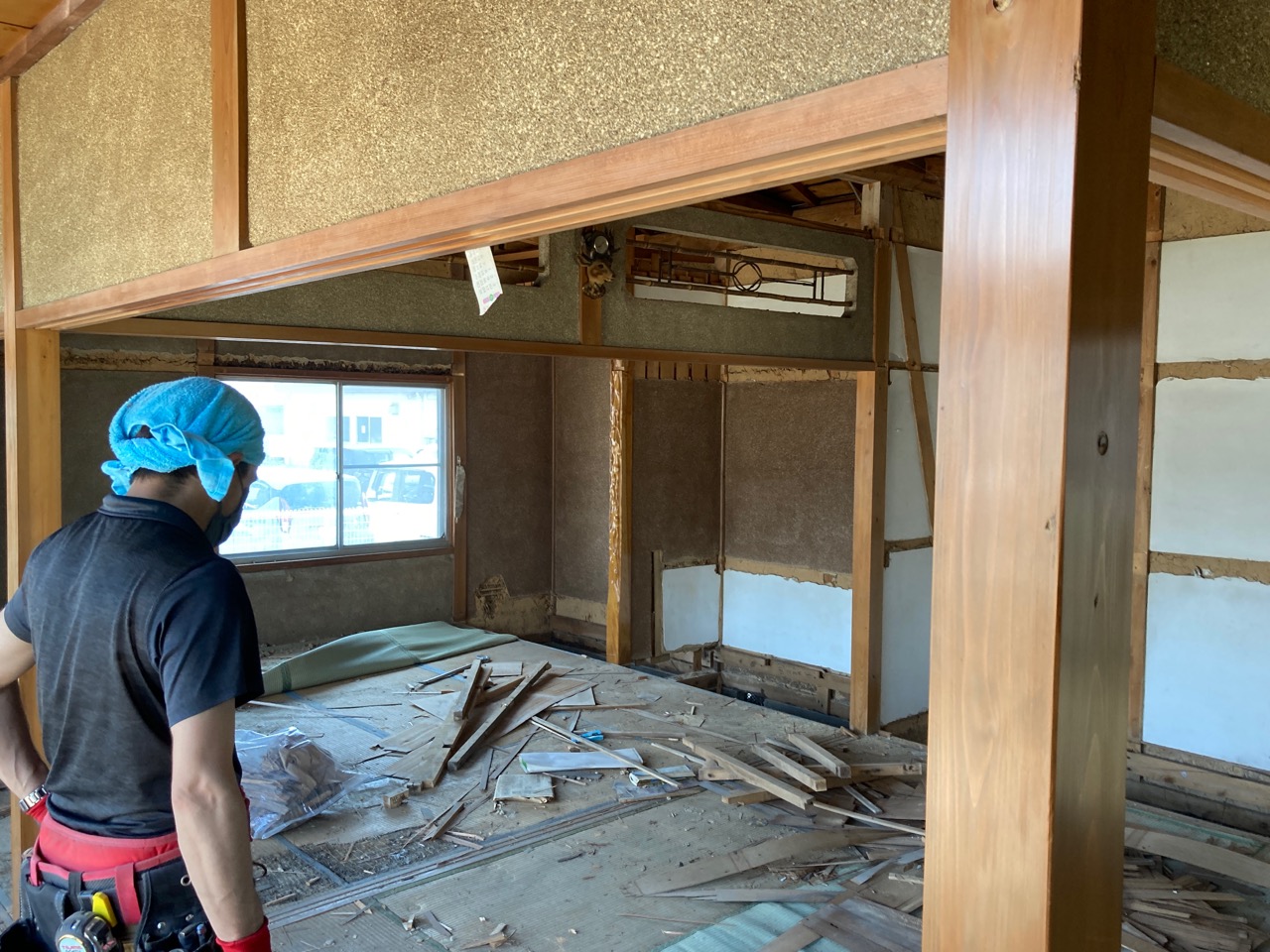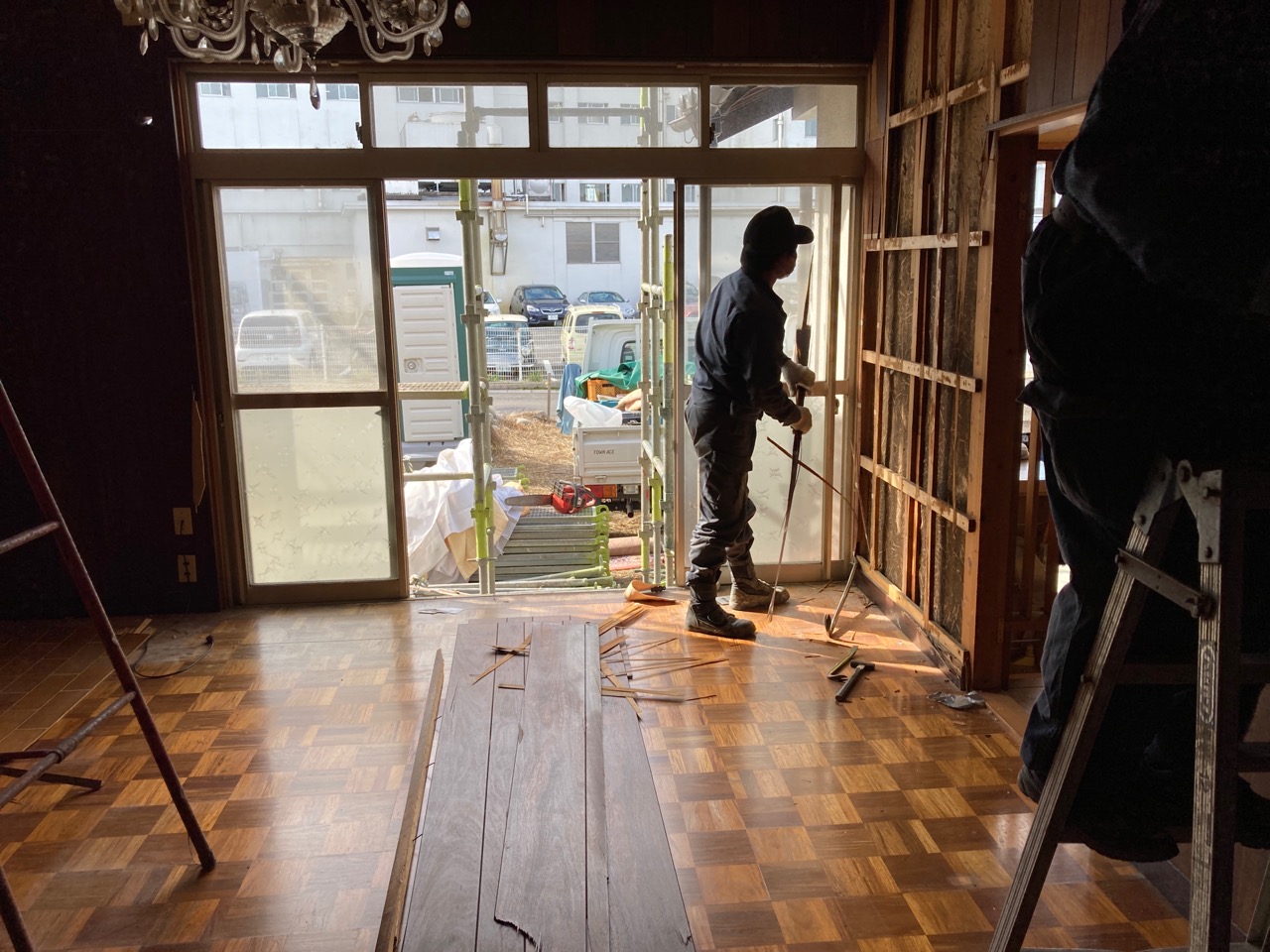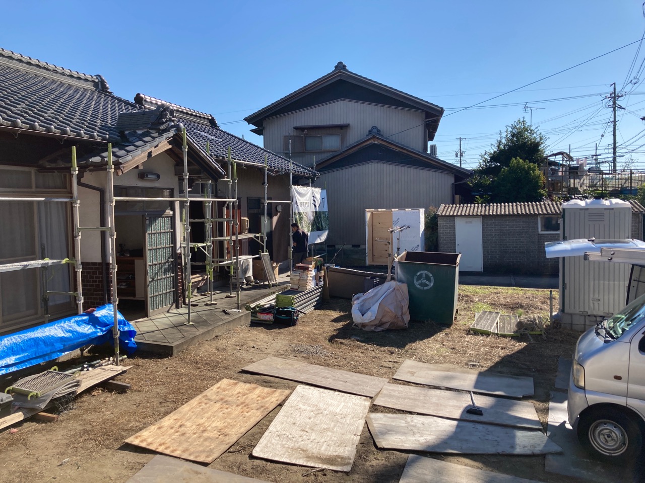 続々と解体工事が進んでいます。土壁は温熱環境上できるだけ残したいので、解体する部分は必要最小限としています。解体をした際に構造的、間取り的に変更したい柱や、傷んでいる柱などはこの際に取り替えていきます。