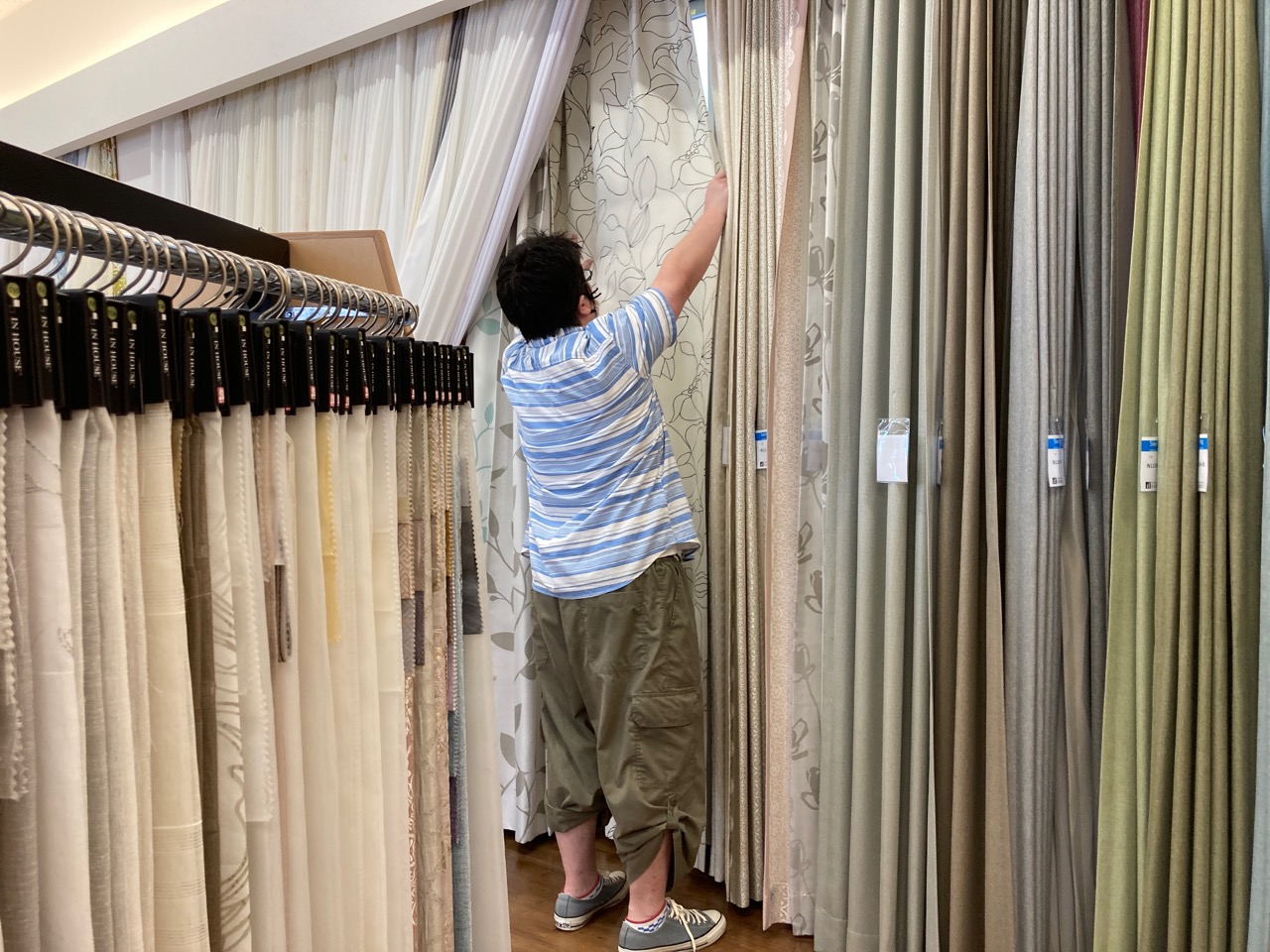 離れができあがったらそちらに生活圏を移し、その後主屋のリフォームに取り掛かりますので、離れの窓のためのカーテンを探しに来ました。壁紙クロスと同様星の数ほどのバリエーションがありますのでどのようなものが良いか非常に迷います。