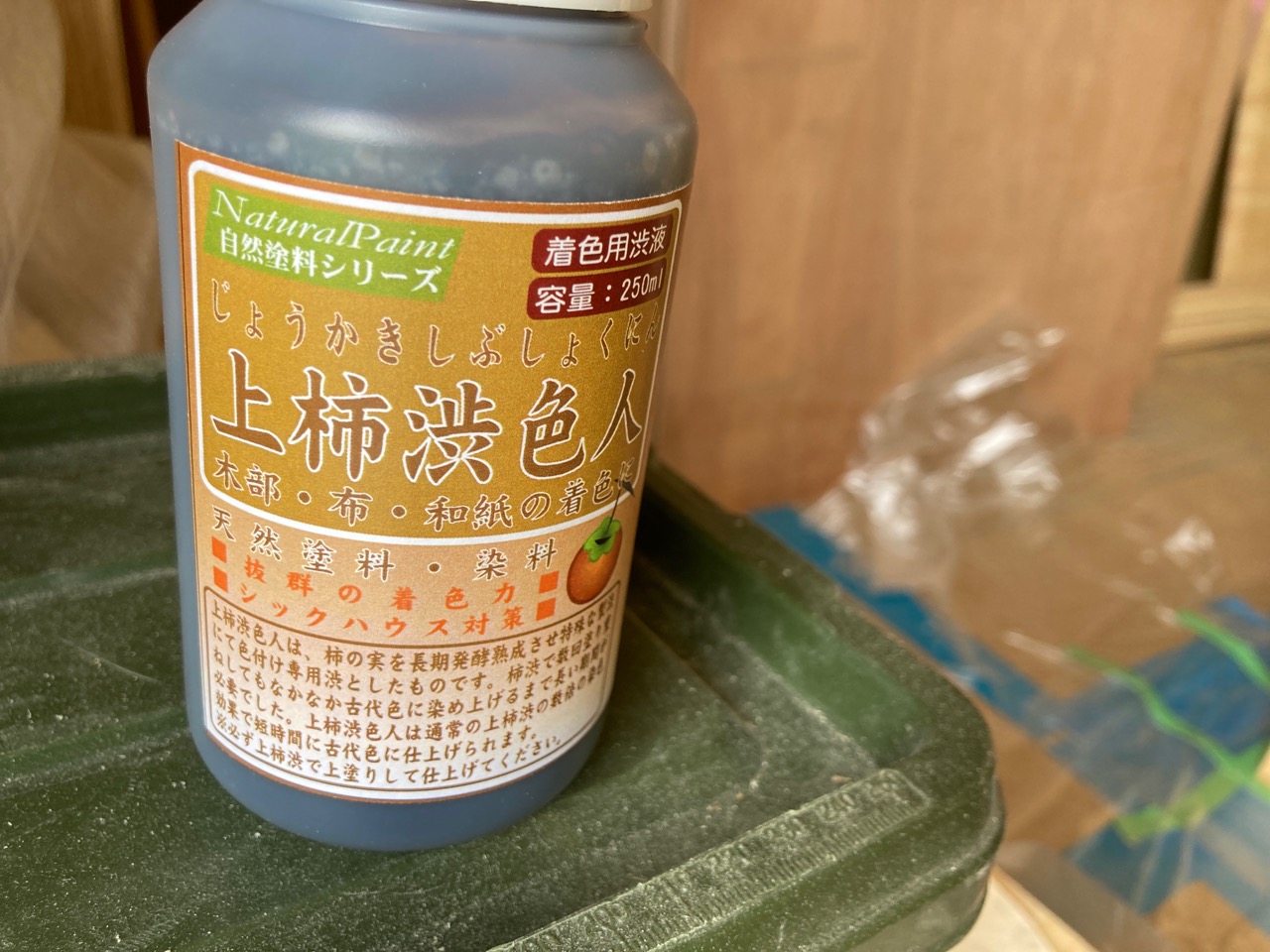 こういう部位でない棚などはオイルステインなどを使用するところですが、今回は油性の内装塗料ではなく柿渋塗装に挑戦してみます。