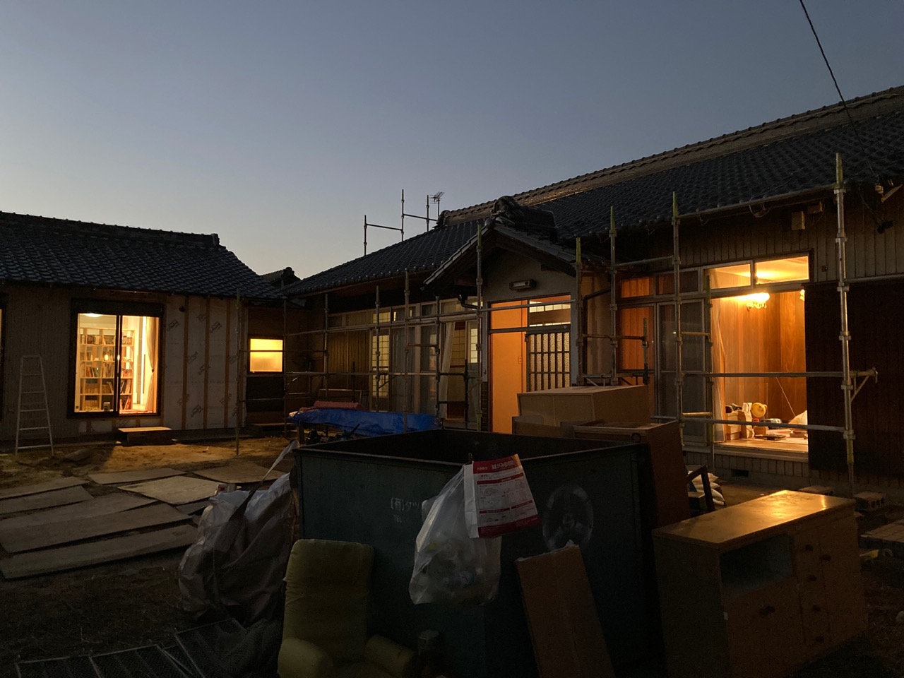 内装のリノベーション、構造の補強、断熱の強化を主屋、離れ、増築部分一体として工事していきたいと思います。