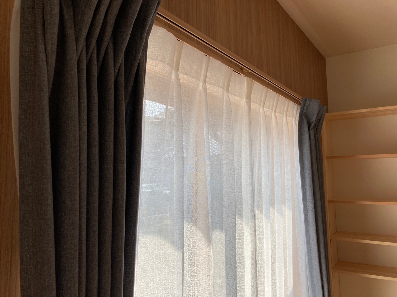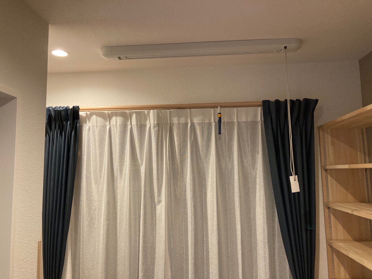 カーテン取付工事完了です。これでだいたい生活に必要なものが出揃いました。