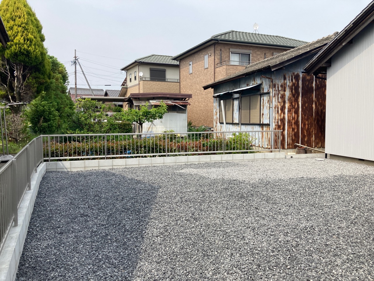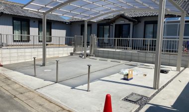 駐車場の工事がほとんど終わりました。駐車場の前にはカーゲートを付けるべきか?という事で迷っていたi様ですが、ゲートを付けても左右から入れるという点を考慮してコスト削減のため『リフター』を建てるにとどめました。(リフター:公園の入り口などにある上下式のポール)