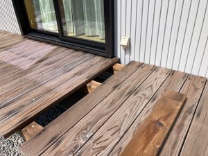 使用する材料は『エステックウッド』という外構用の木材です。杉材を高温の窯で燻し、樹液を蒸発させてしまう事で腐朽や虫害に強く、メンテナンスフリーな状態になっている材料です。
