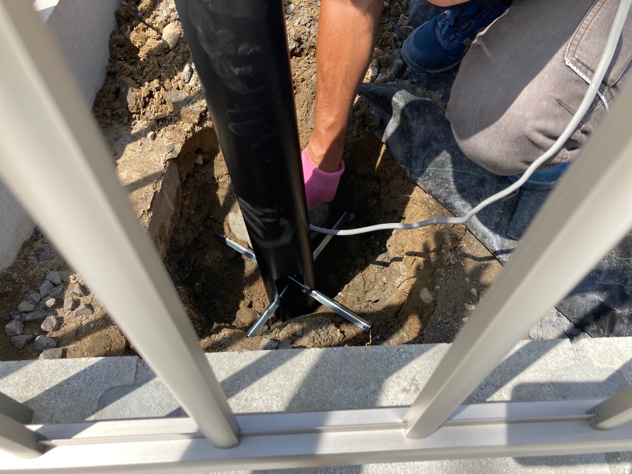 後はただひたすらポールの埋まる穴を掘っていくのみ。少しは秋の風を感じる時期になったとはいえ炎天下の中汗だくの作業です。