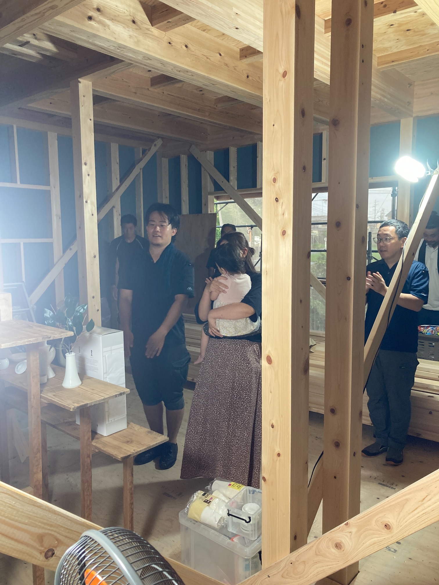 o本(監督)様はじめご家族の皆様おめでとうございます。奥様と愛娘mちゃんもご参加いただき、無事上棟式まで終えることができました。