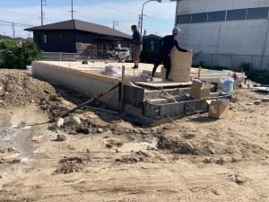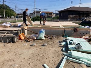 棟梁w邉大工さんと、k保木大工さんで先週土台伏せを行いました。