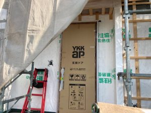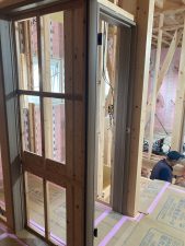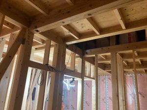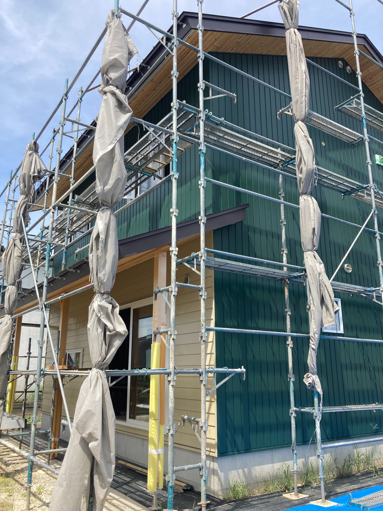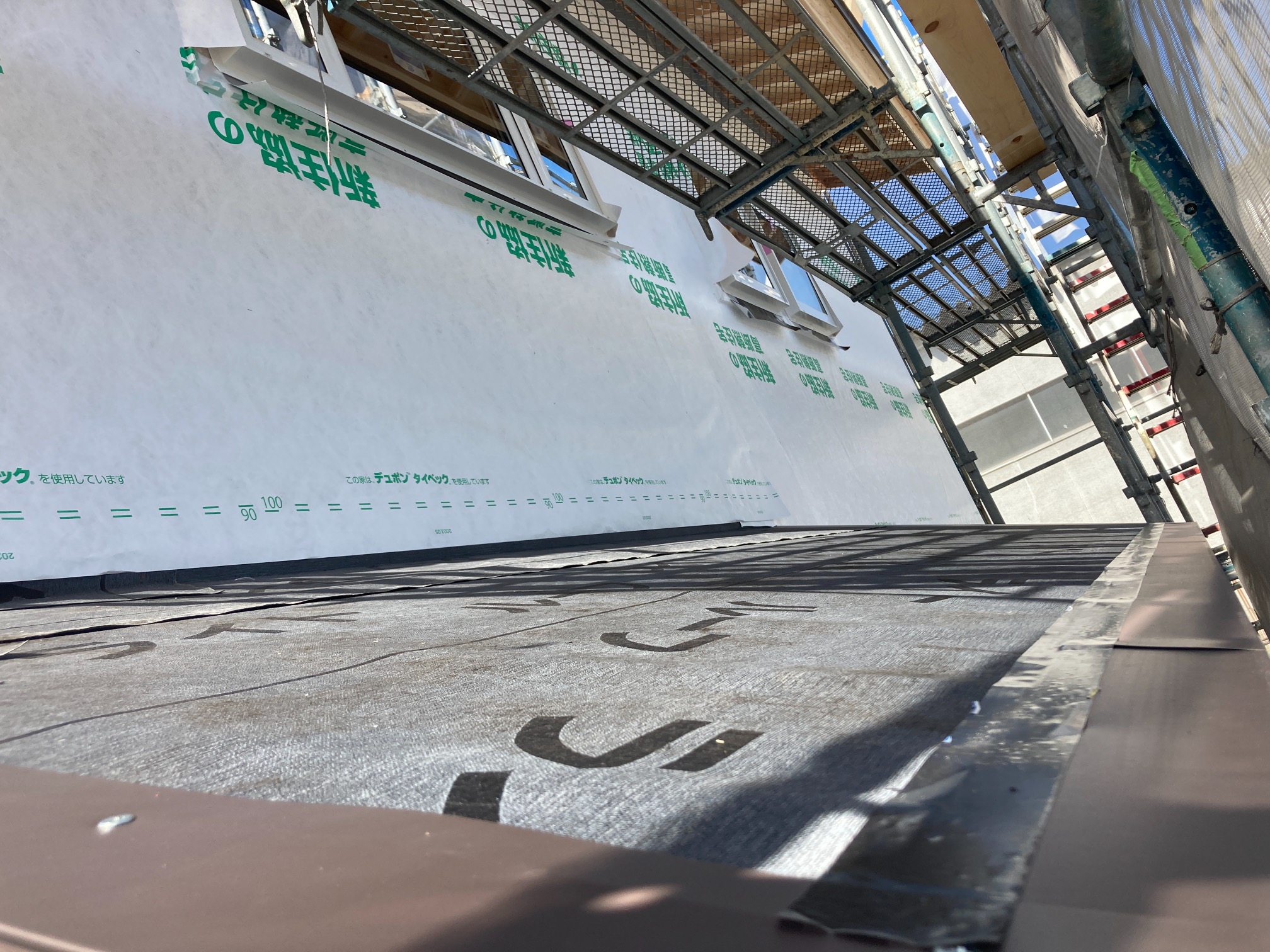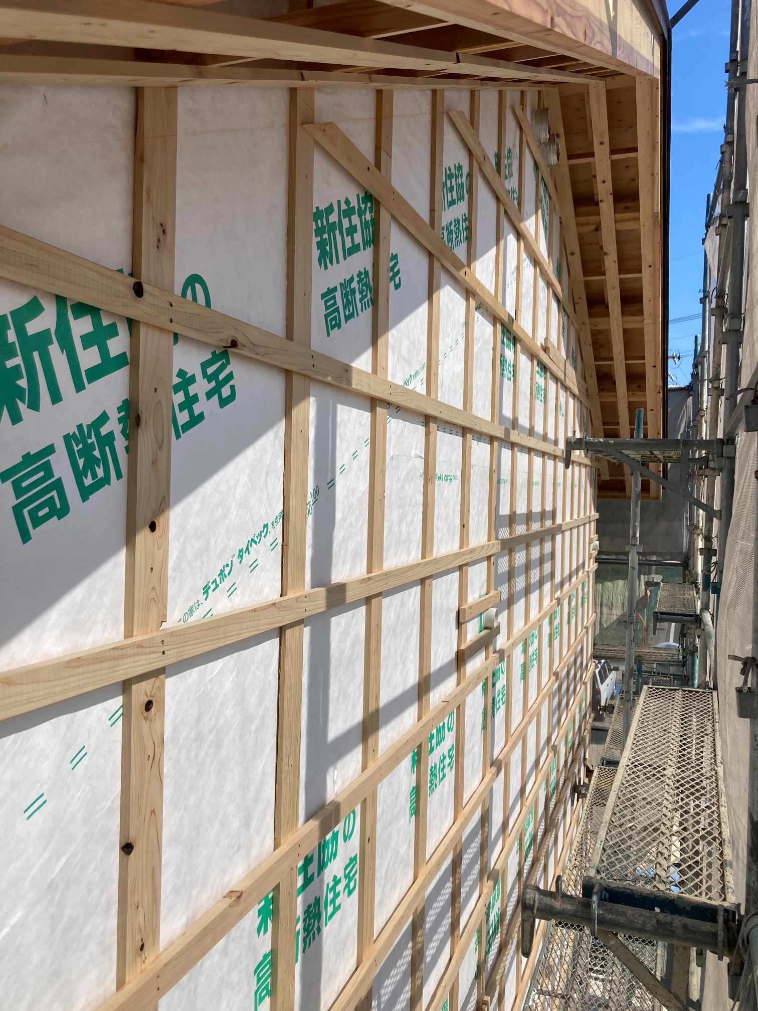 中間検査も無事に終わり、外部は体力面材の上から透湿防水シートが貼られました。