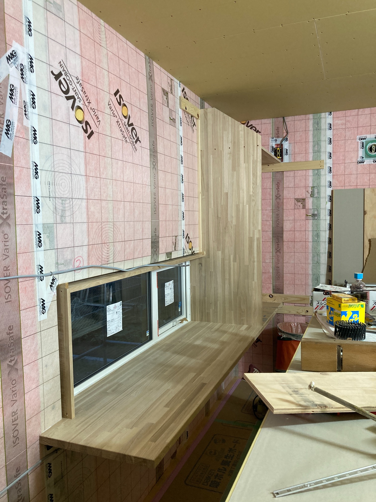 勉強熱心なo本君、今回お施主様兼、現場監督を務めることで、今までと違った目線で工事の流れを見ることができます。w棟梁からも造作の収め方やミノワの家の住み心地など、いろいろ家づくりのヒントがもらえそうですね。