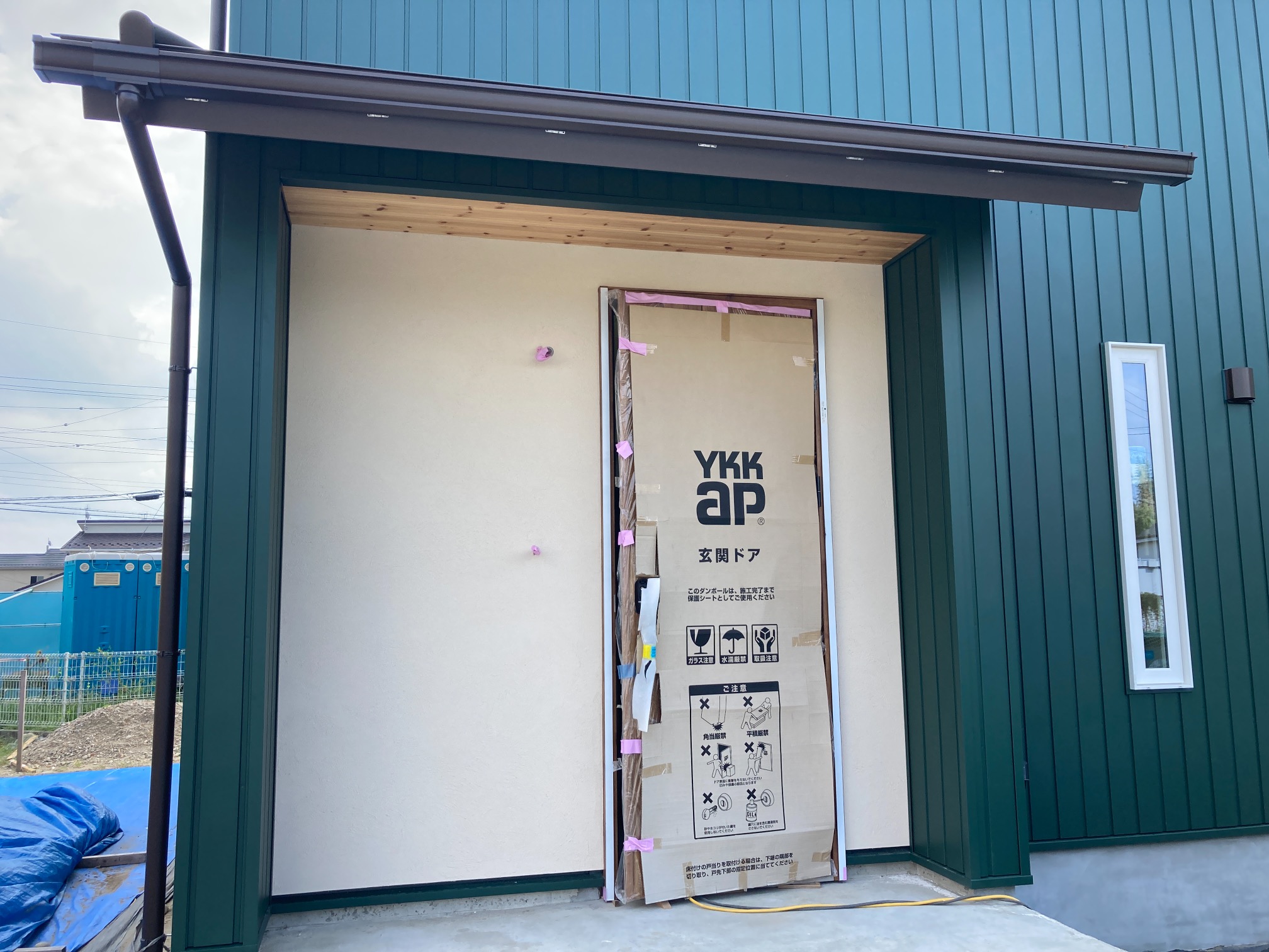 外部は玄関壁のジョリパッドは左官屋さんによりコテで乱流仕上げが施されました。