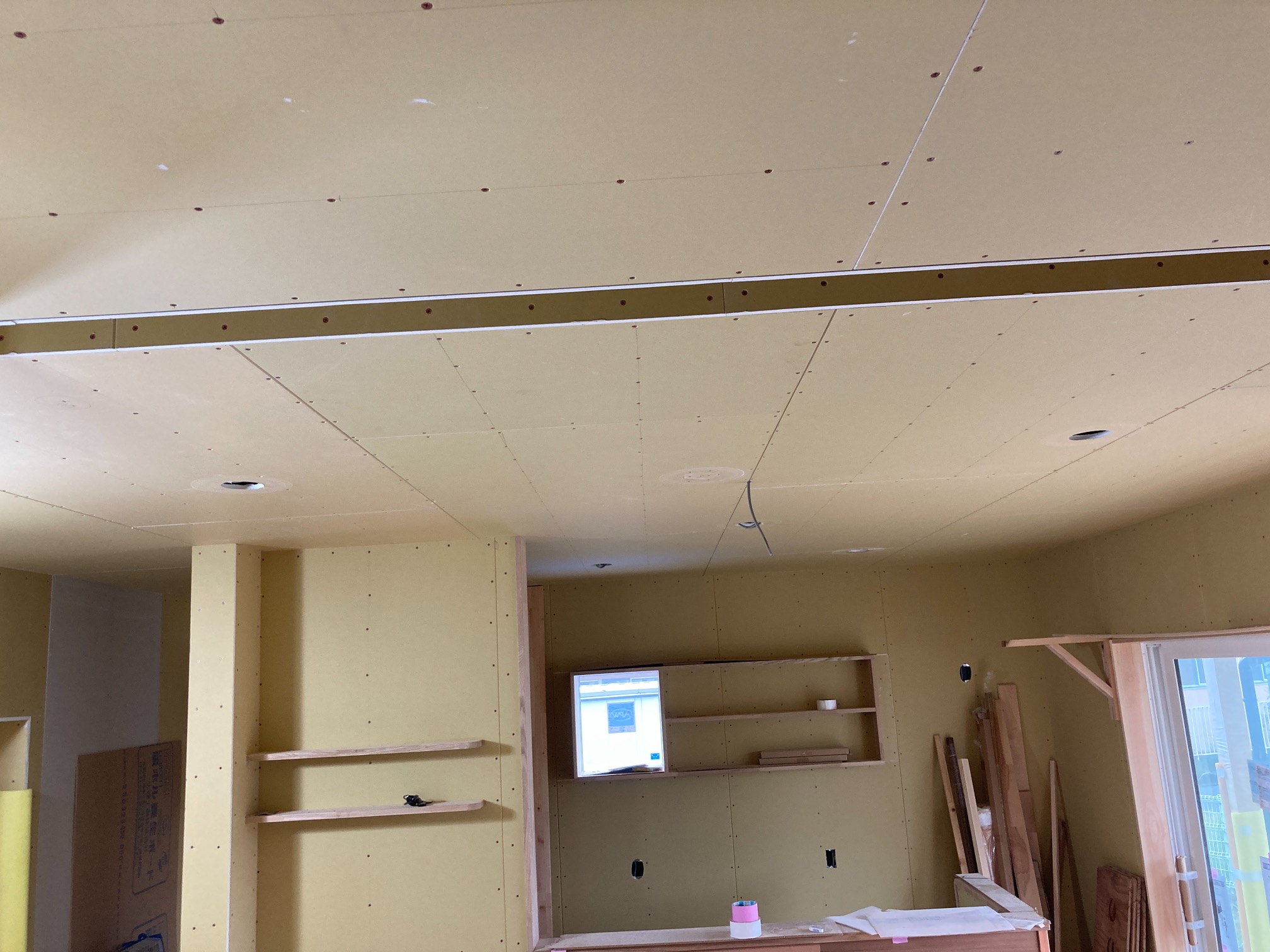 室内の天井下地が取り付けられました。この後、天井はプラスターボード→クロス貼りへと進んでいきます。