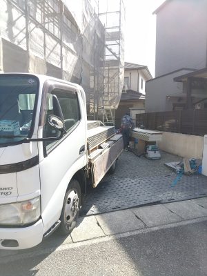 昼過ぎにはこんな状態だったのが、3時間半で先ほどの状態です。「kさんに、次の現場はもう基礎できてる?って言っといて~」なんて、営業のkさんにプレッシャーをかけようとしています(笑)