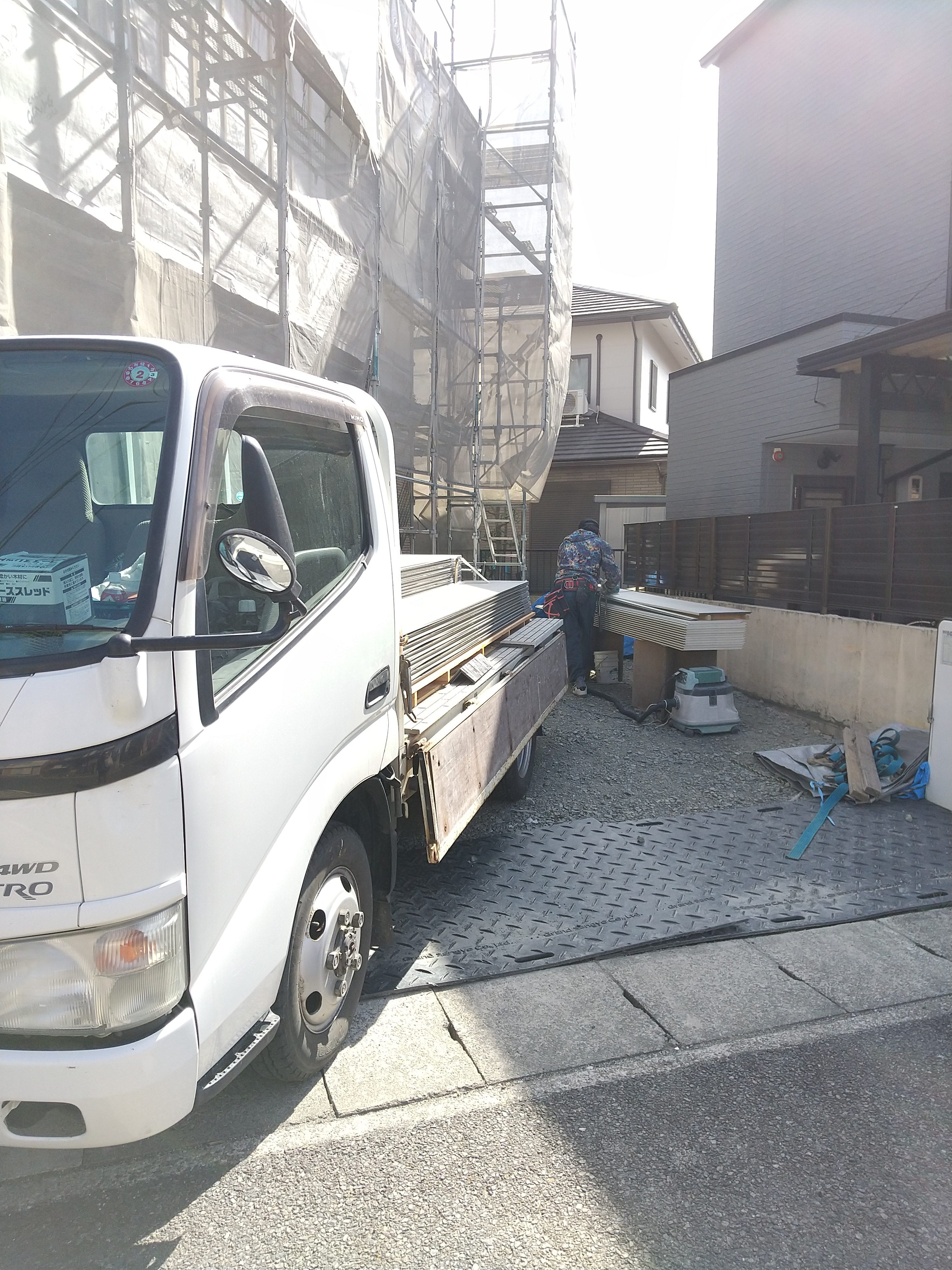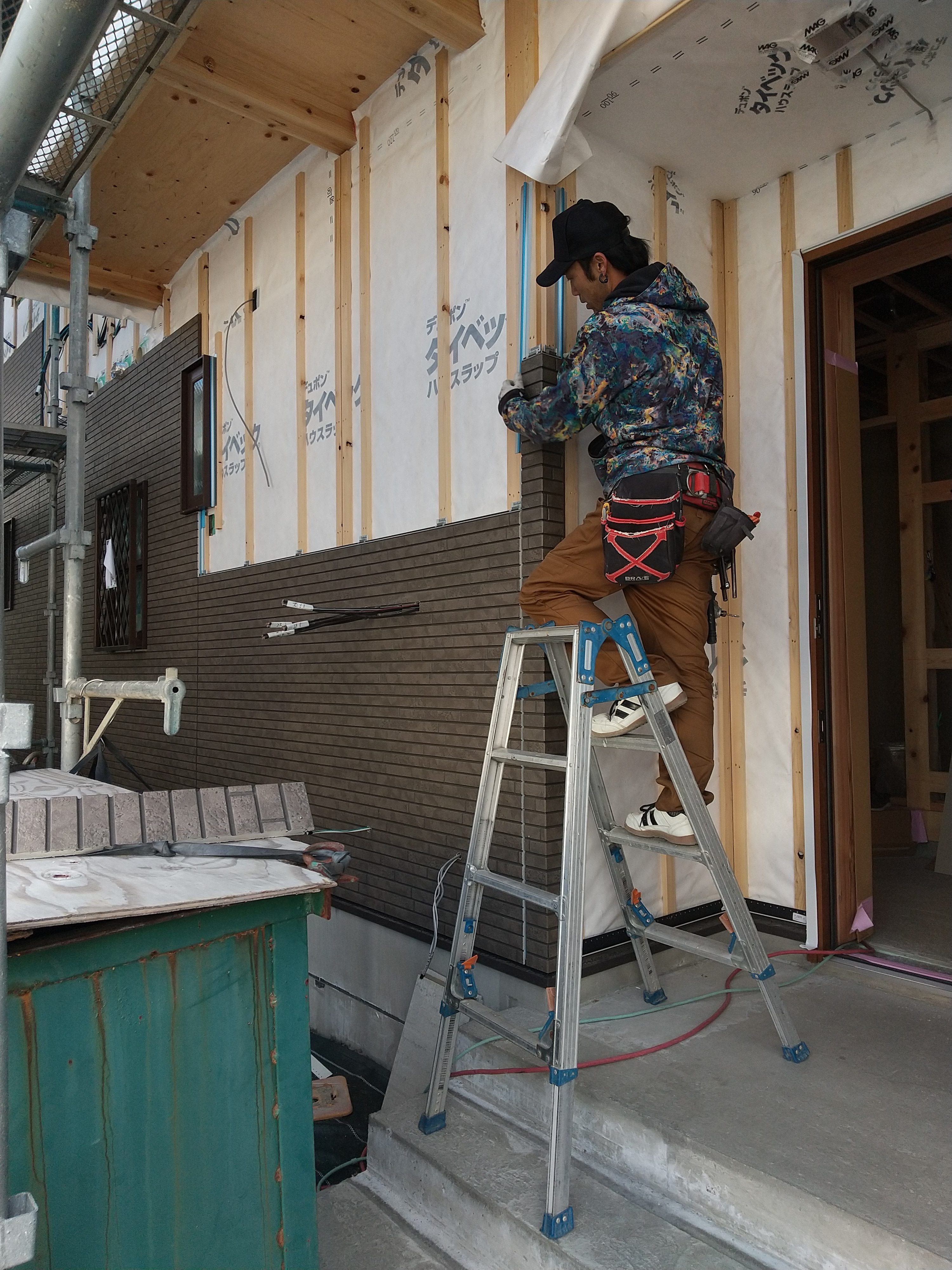 外部は、サイディング張りの工事が始まっています。今朝、お母様から一部色が間違っているよ~とご指摘を受け、慌てて現場に駆け付けました。ギリギリセーフ。職人さんに珈琲とエクレアを持って謝罪。痛恨のミスです💦私の指示書の書き方がマズかったです。本当にごめんなさい。そして、お母様ありがとうございます。