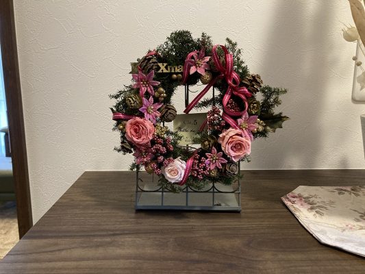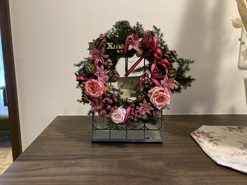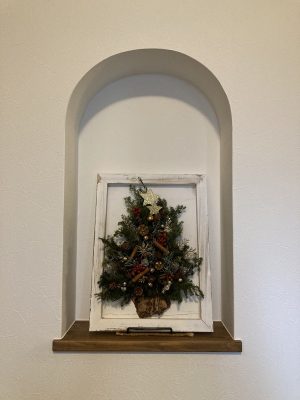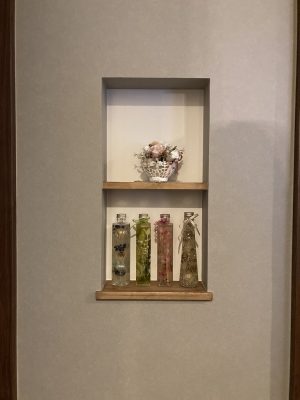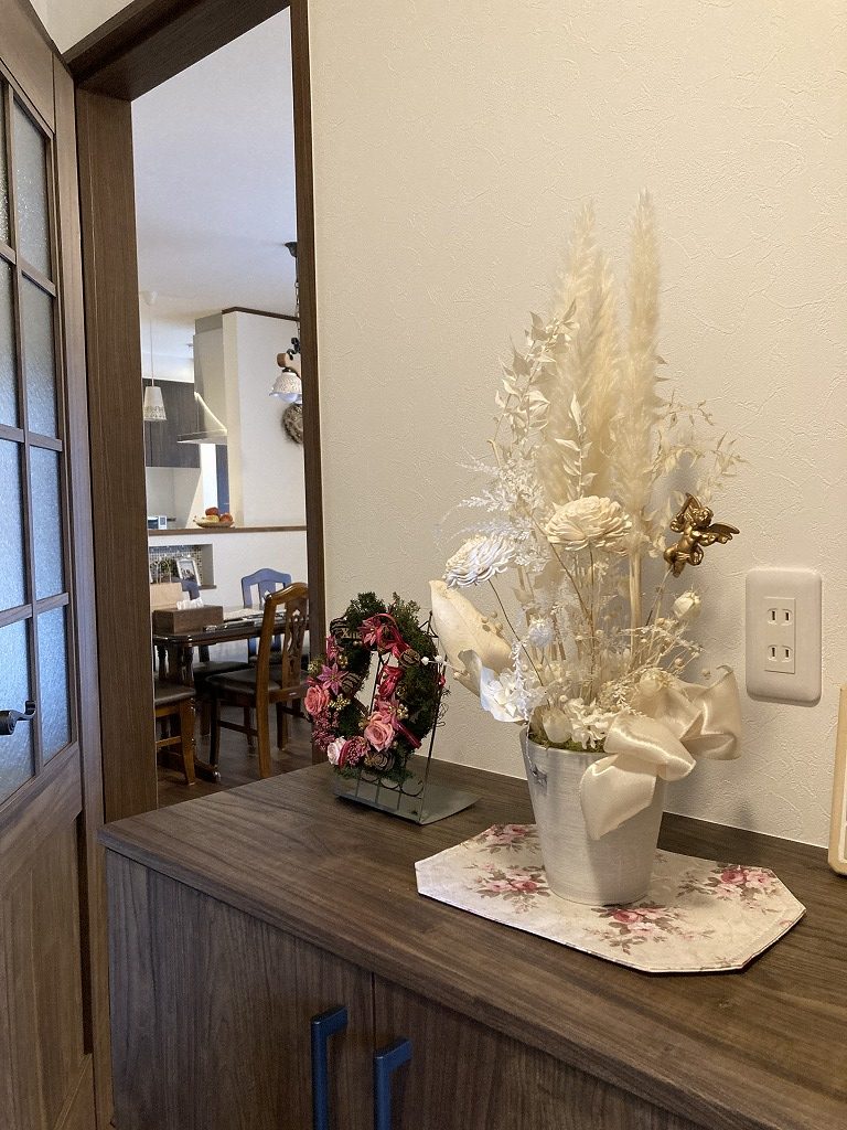 ニッチには、奥様が月一度通われているアレンジメント教室の作品が飾れています👍