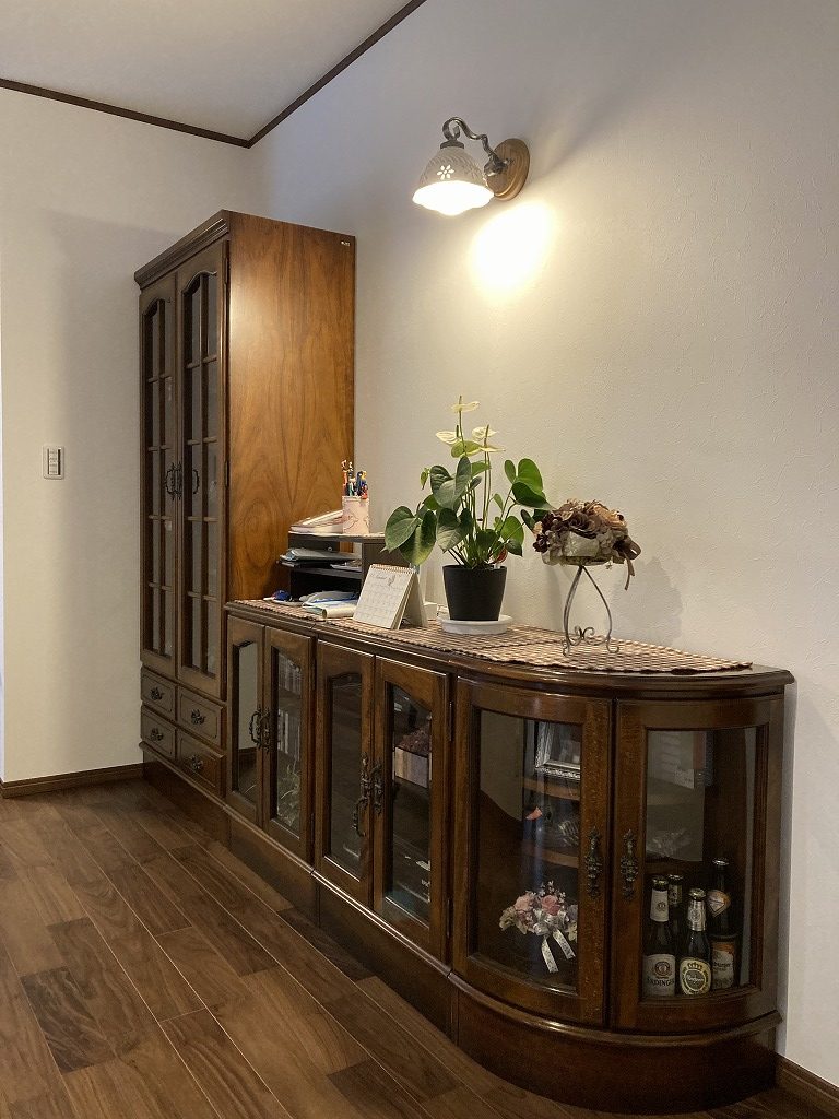 LDKには以前から大切にされていたキャビネットが計画通りの位置に置かれ、インテリアと調和していてとてもいい感じでした。