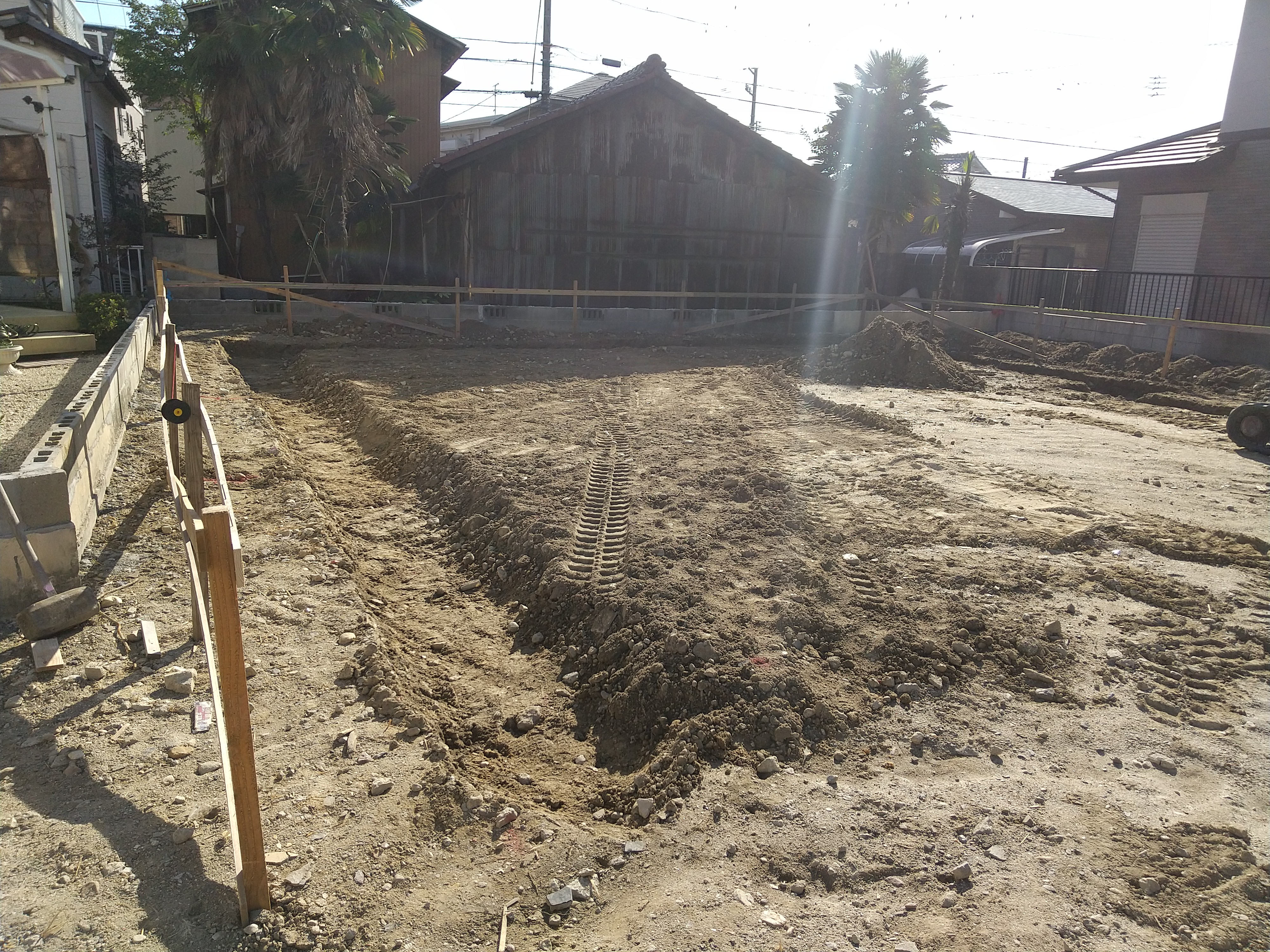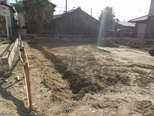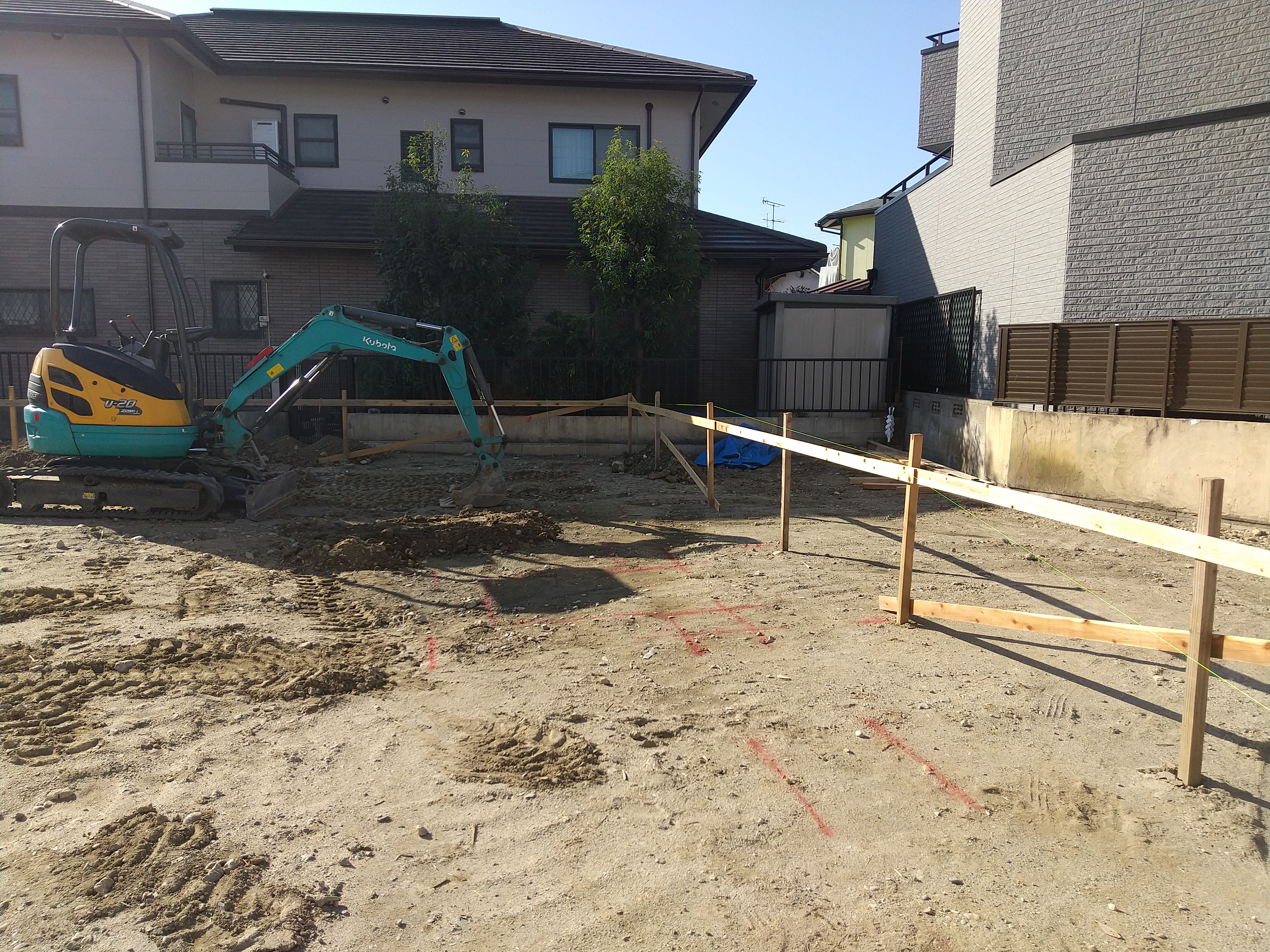 地盤調査の結果、改良の必要無しとの判定が出ましたので、昨日から基礎工事が始まりました。昨日は、若手監督のk谷君も丁張を手伝い、事務所でt様の家は地盤が固いので大変だと話していました。それほど良い地盤の様なので、安心です。