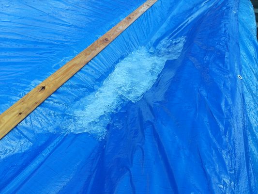 昨日の寒さに負けないくらい寒い日。土台の養生シートには氷が張っていました。a監督は建前用の金物をこのシート下の玄関ポーチの部分にうまい具合に入れ込んでいました。今年の12月は雪が降るとの天気予報通りになってきましたので、建前がちょっと心配です。