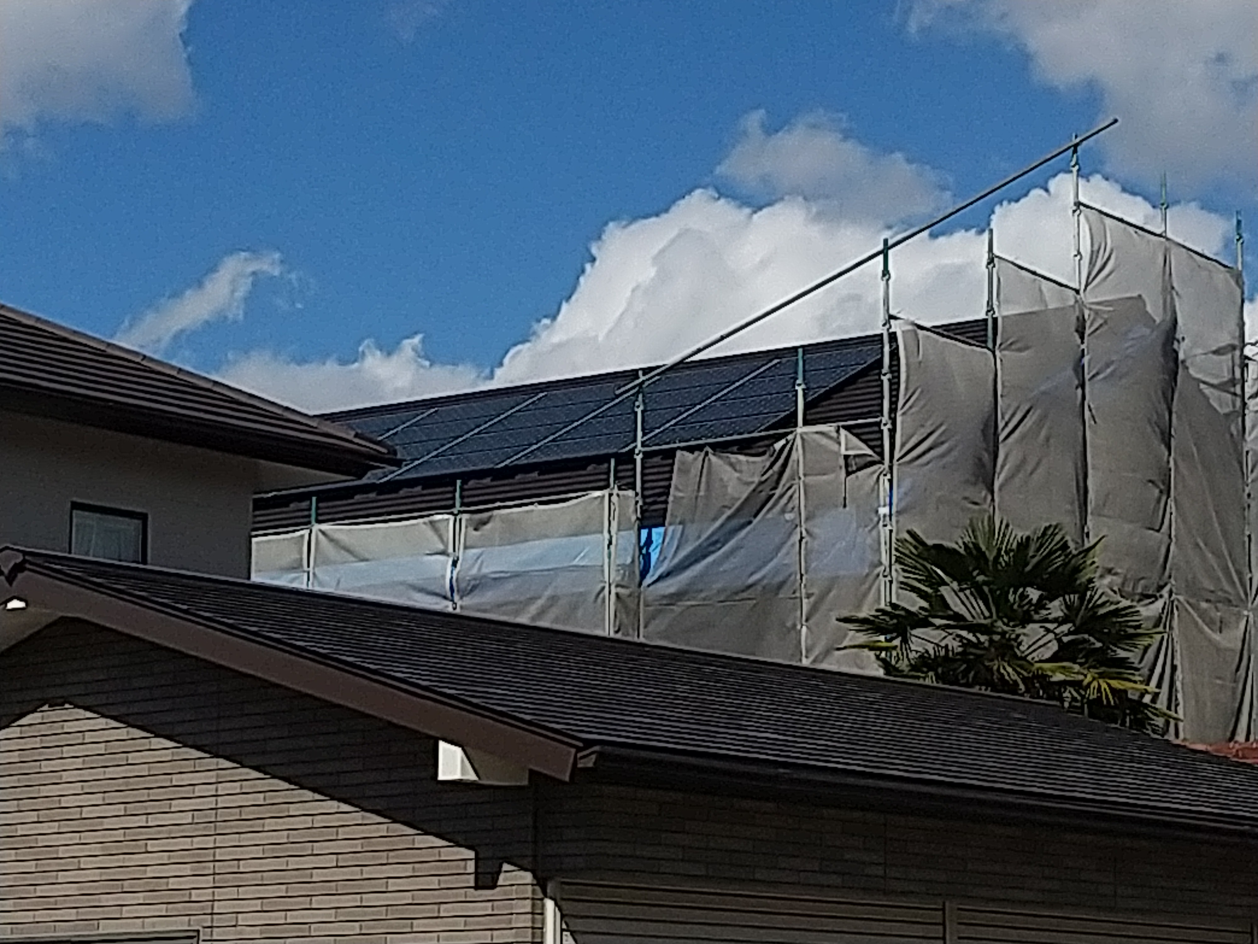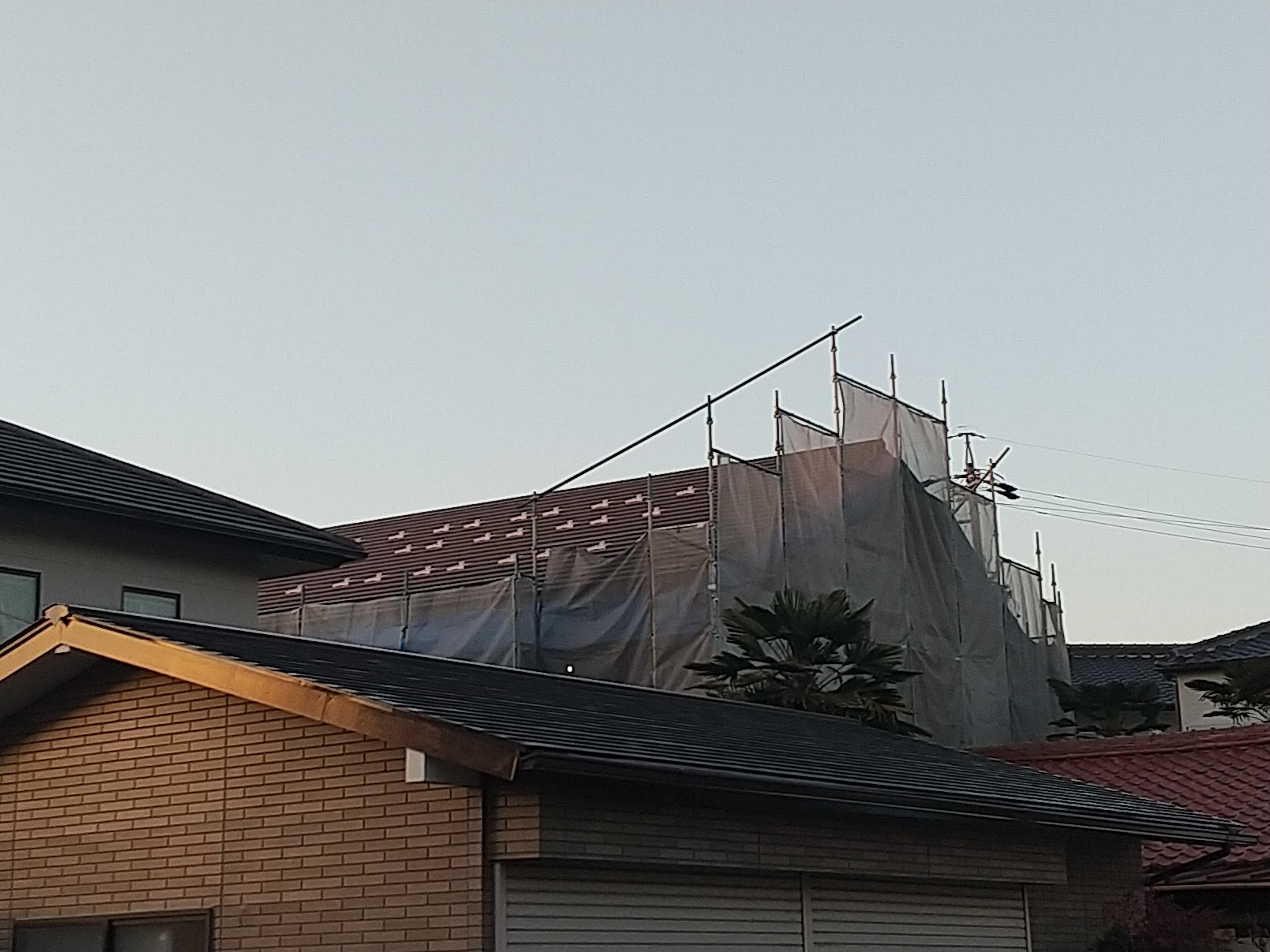 目を離した空きに、年明け前には瓦工事が完了し、太陽光パネル用の支持瓦も設置され、瓦達がパネルの設置を待ちわびています。