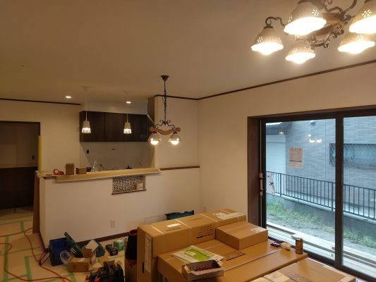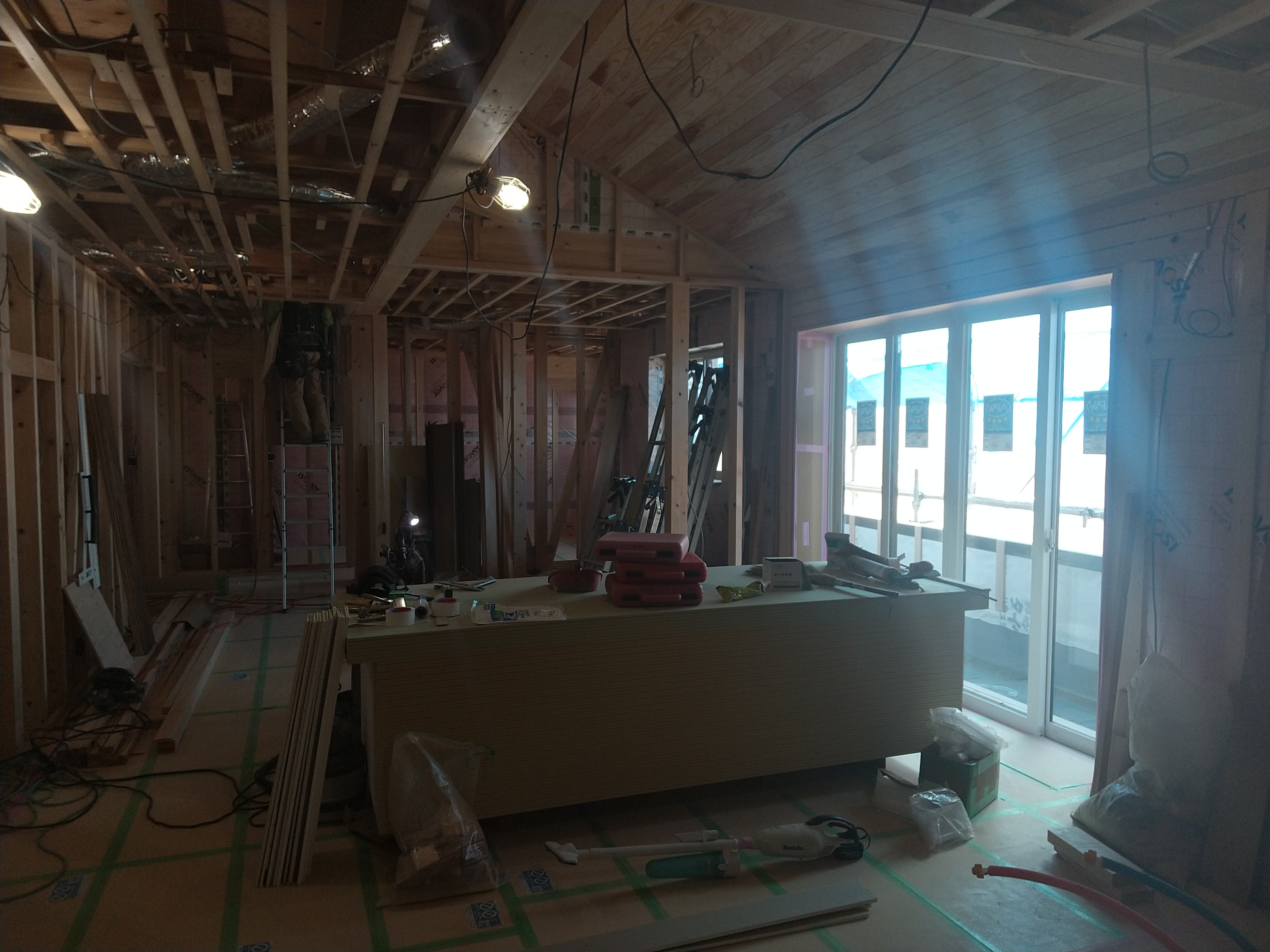そしてクロス屋さんが、まだ居ました。やっと今日で終了。広いので大変でしたね、お疲れ様でした。明日と明後日は、いよいよキッチンの取付です。