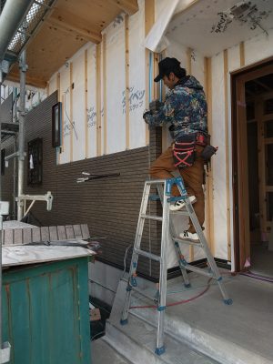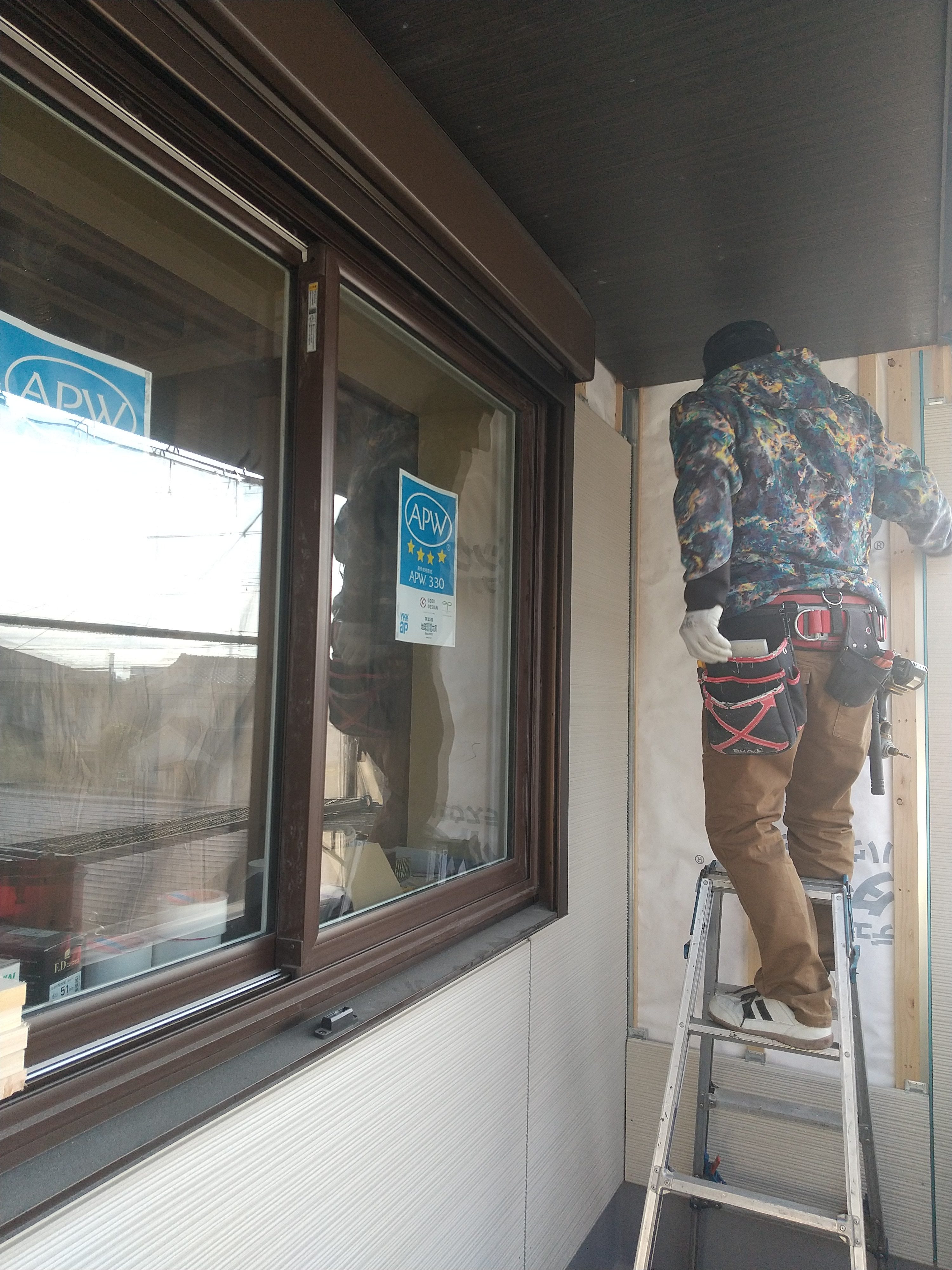 外部は、サイディング工事が終盤です。サイディングを張る傍らで、コーキング工事も進んでいます。来週初めにタッチアップを行い完了です。