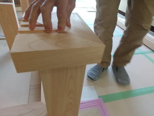 2週間前に工場で拝見しましたタモの材料も、框戸となって運ばれてきています。h美さんにも、気に入ってもらえてホッと一安心。
