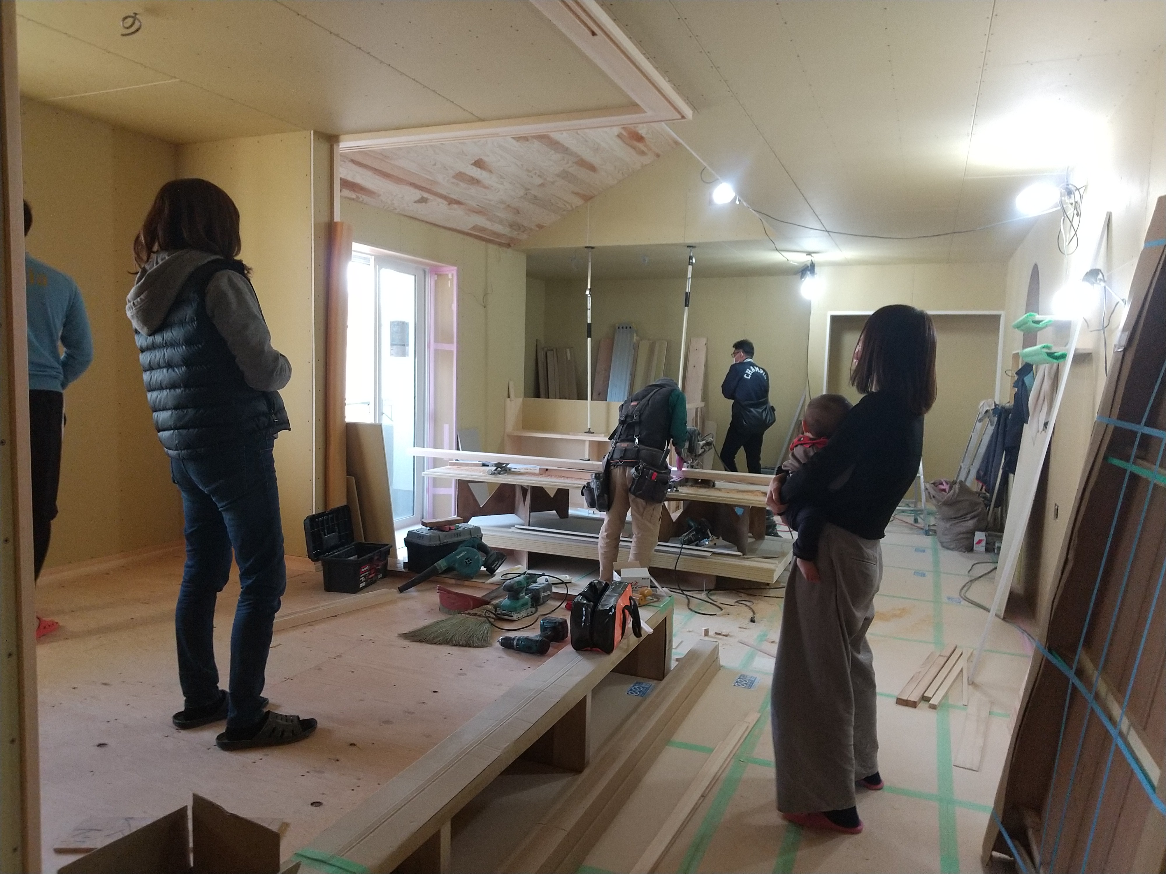 今日は、h典棟梁にも会えました。お母様が「玄関のニッチに飾りたい物ができて現場に持っていったら、ニッチに入らなかったので、棟梁が余分に材料があるしいいよとやり直してくれたの~」と嬉しそうでした。ありがとうございます。