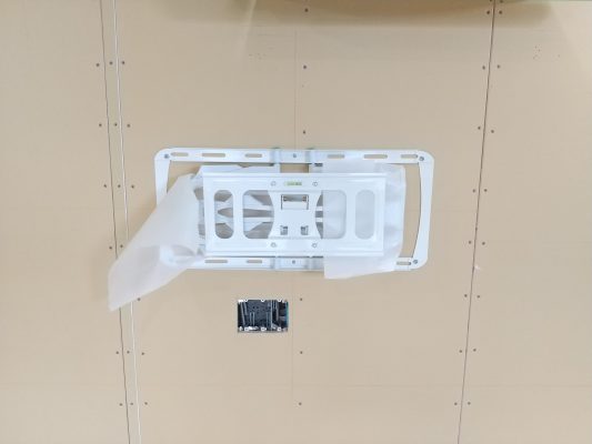 2階の壁掛けテレビの金物を取り付けてもらいました。TVが前に出て左右に首を振るタイプの金物ですので、後ろにしっかりとした下地の木が必要になります。取り付けたい方は、早めに教えていただけると助かります。