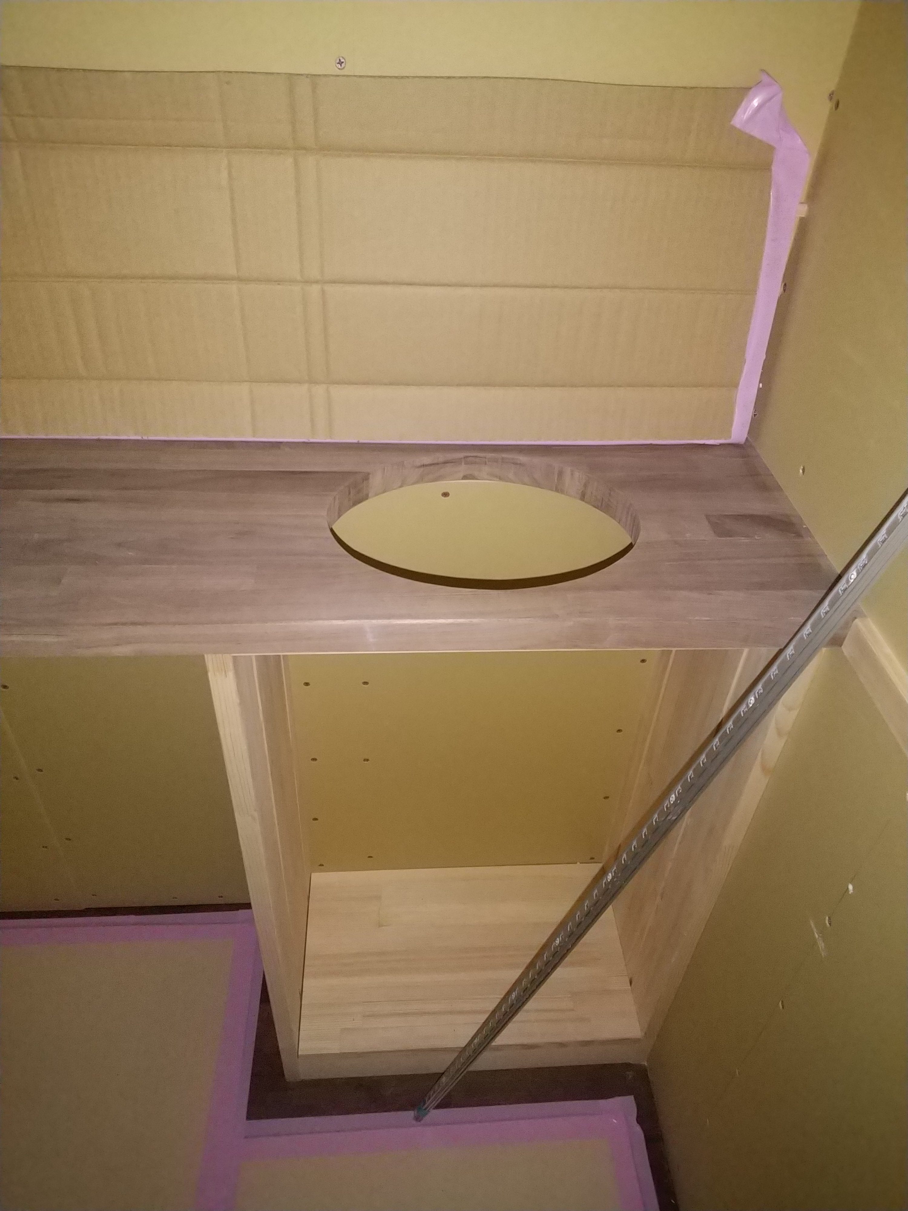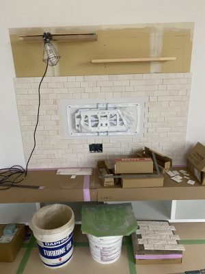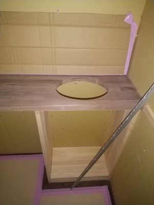 今回は、1階はトイレ手洗い部分、2階は洗面化粧台にも防水も兼ねてポイントでタイルを貼る予定です。出来上がりが楽しみです。