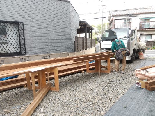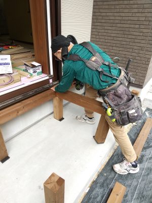 k池巨匠は、1階お母様世帯のウッドデッキを造っています。k池巨匠は、本日で終わりです。ありがとうございました。来週からは、仲の良いk棟梁の待つ犬山市ni・ki様邸に参戦します。またあっという間に終わらせてしまうんでしょうね。