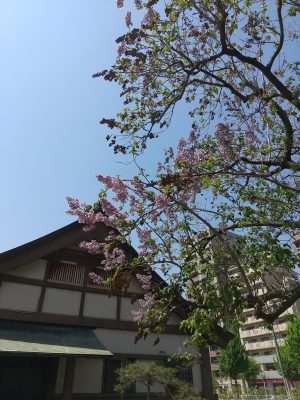 kt様邸に向かう途中、桐の花が咲いたお寺の横を通りました。満開から少し過ぎていましたが、大きな紫の花が上を向いていて、見ごたえがありました。